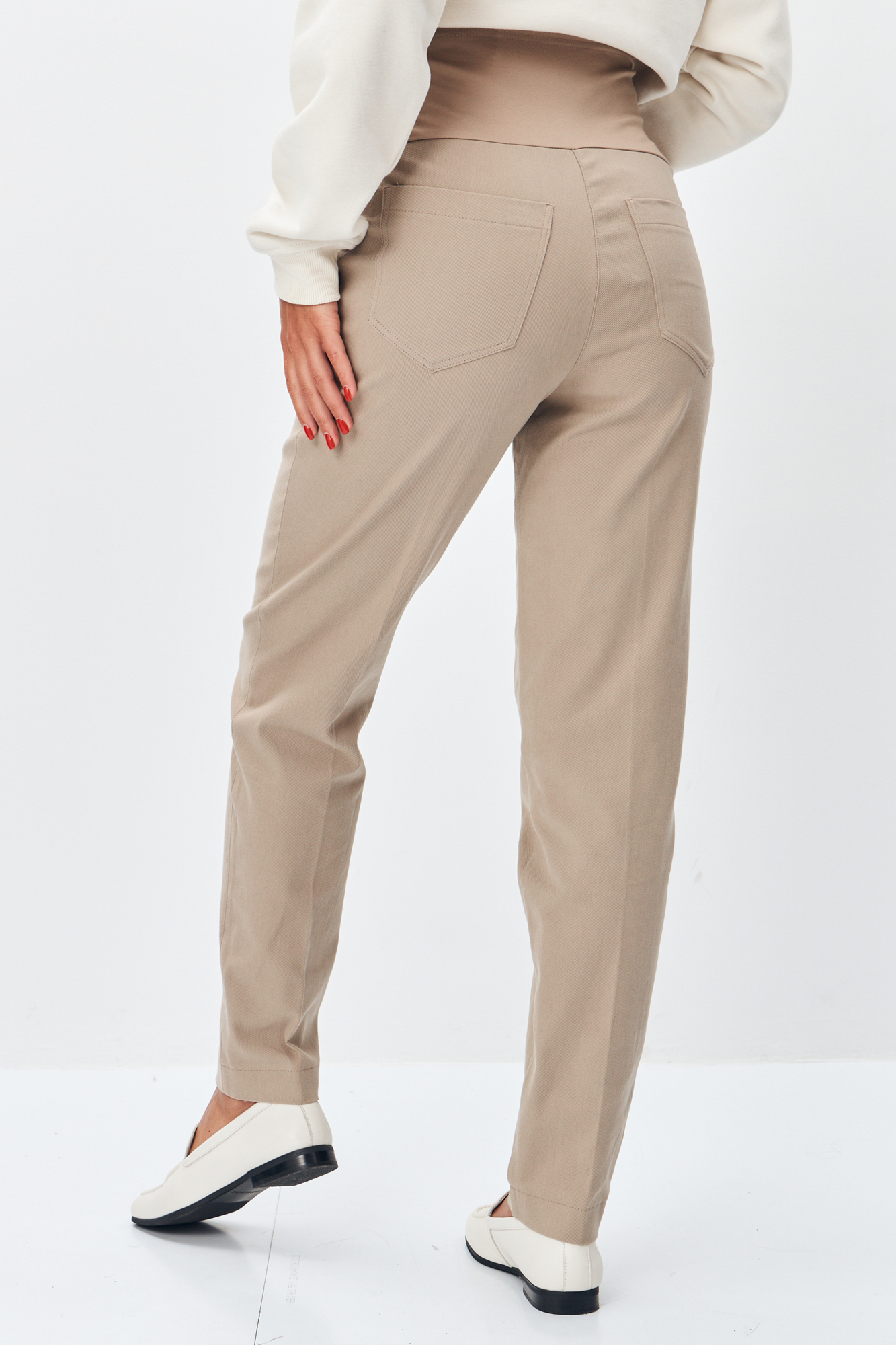 Брюки для беременных сшиты из премиальной плотной дышащей ткани на основе хлопка. В модели предусмотрен высокий эластичный пояс бандаж, обеспечивающий мягкую поддержку живота. Для регулировки объема добавлены потайные резинки на пуговице, поэтому штаны можно носить на любом месяце беременности и после нее. Вы сможете легко отрегулировать брюки по мере роста вашего животика, что делает их незаменимой вещью в вашем гардеробе. Универсальный всегда модный фасон и базовая расцветка брюк делают их удачным решением для повседневных прогулок или офиса. Так же с помощью дополнений и аксессуаров можно создать современный стильный повседневный образ. Брюки для будущих мам можно носить как прохладным летом, так и осенью.
