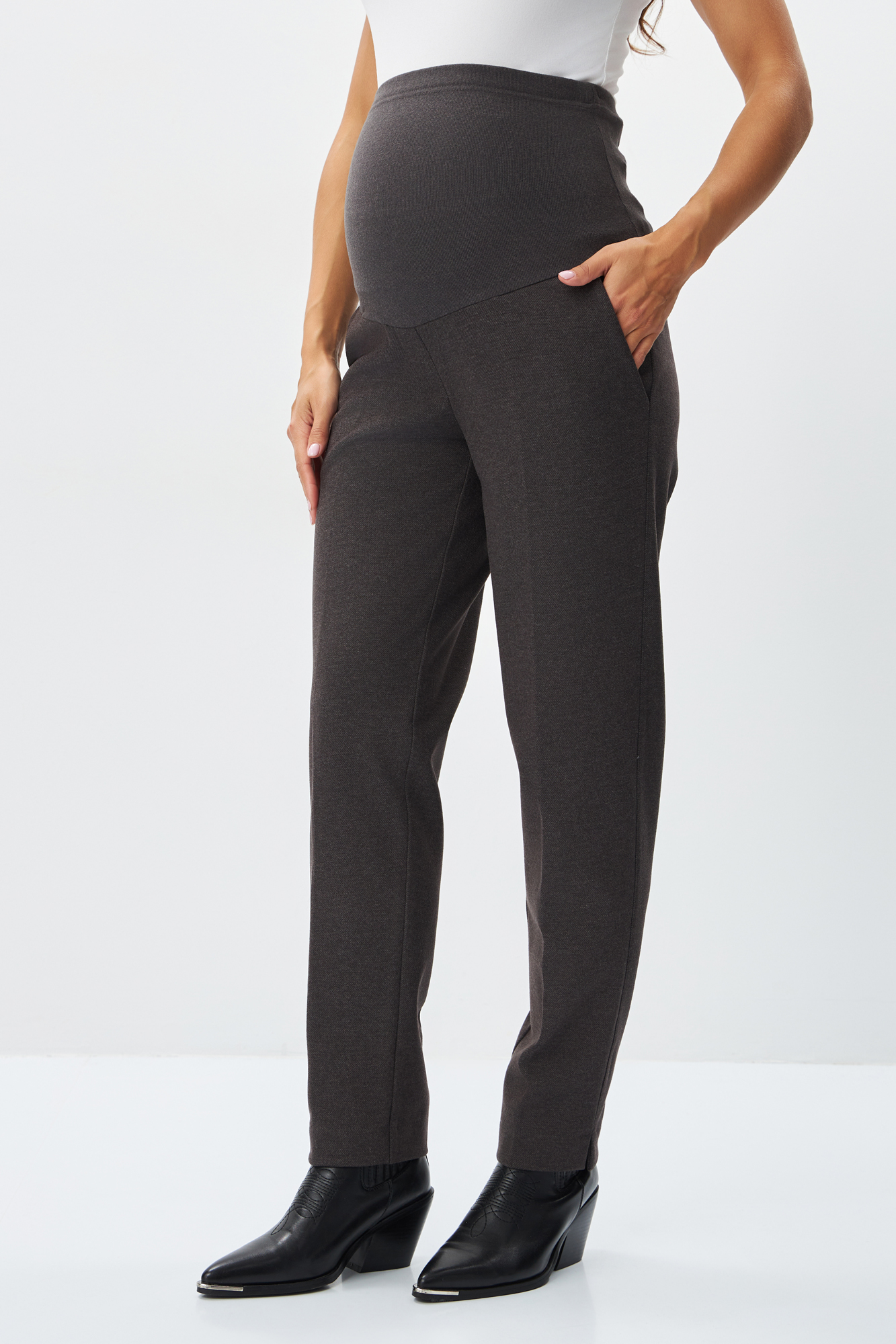 Брюки для беременных сшиты из теплой плотной ткани. Базовые штаны идеально впишутся в повседневный гардероб будущей мамы. Свободный крой брюк подарит максимум комфорта в носке. Офисная модель имеет высокий эластичный бандаж, оснащенный скрытой регулировкой объема, поэтому подходит для любого месяца беременности и после нее. Стильные удобные брюки подойдут на любой сезон, осень или зимний период. Их можно носить в офис или на встречу с подругами.