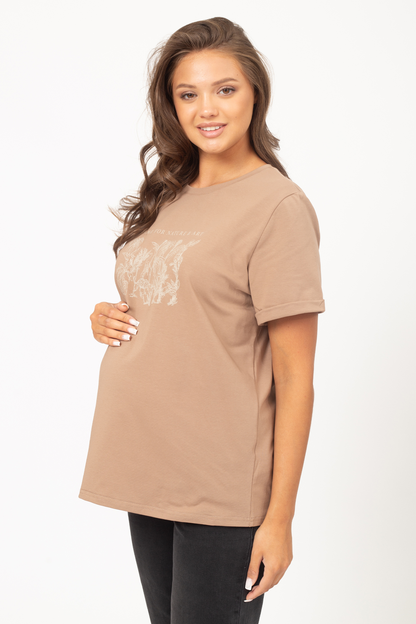 Футболка свободного кроя для беременных выполнена из хлопкового трикотажа. Благодаря фасону оверсайз футболку можно носить на любом сроке беременности и после нее. Однотонные базовые расцветки позволят создавать неограниченное число комбинаций с другой одеждой.