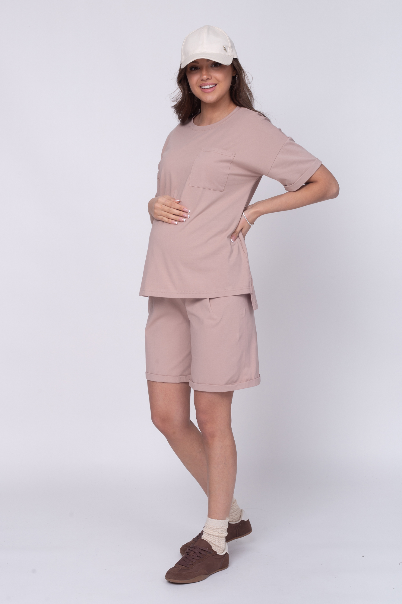 Летний костюм для беременных с шортами - идеальный выбор для будущих мам, которые ценят комфорт и стиль на любом сроке беременности. Этот комплект сочетает в себе удобный крой и модные детали.