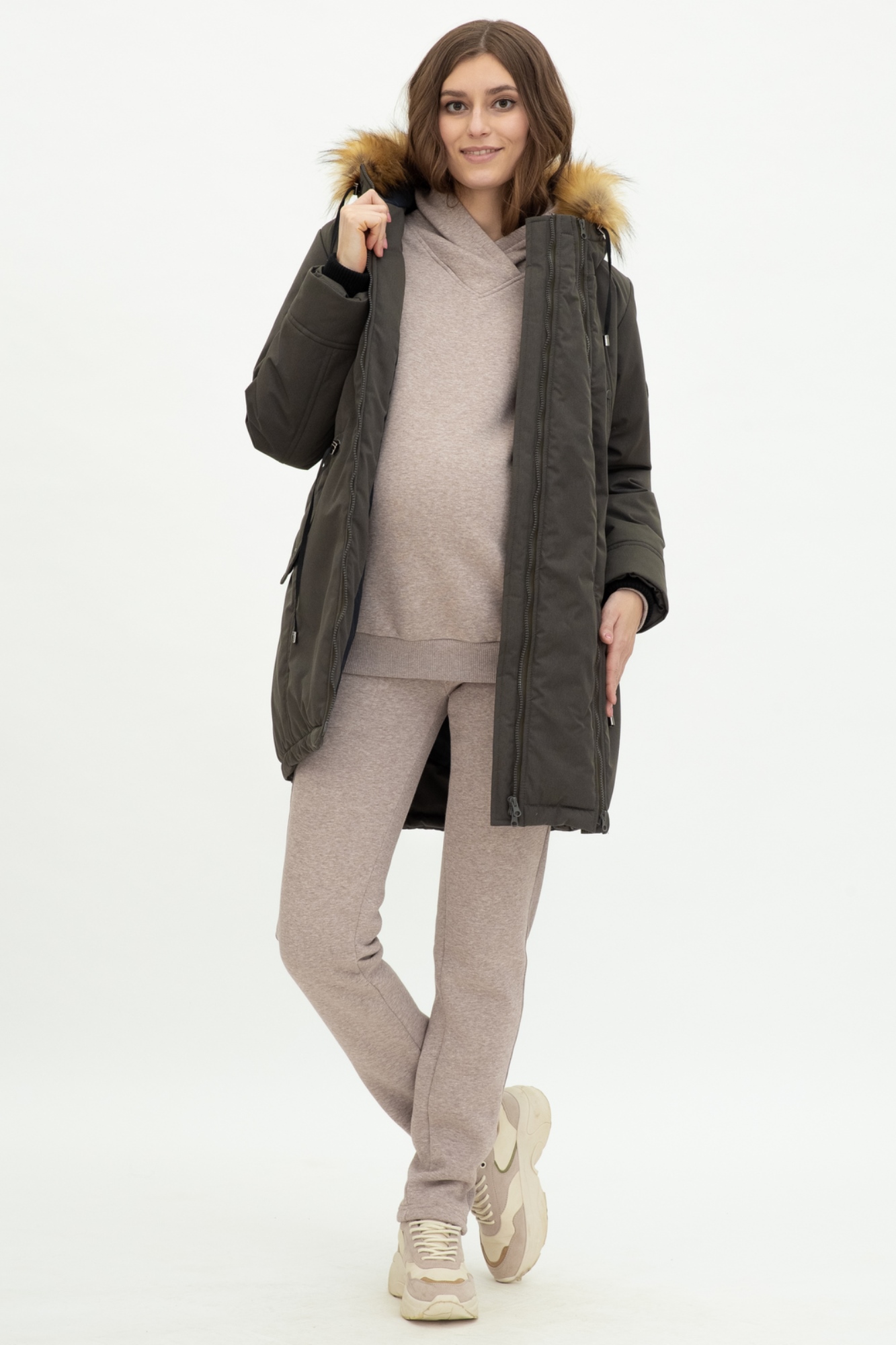 Зимняя куртка-парка для беременных 2 в 1. Модный силуэт и вместительная вставка позволяют носить эту куртку не только до последних сроков беременности, но и после родов. Силуэт можно сделать приталенным с помощью кулисок. Центральная застежка и карманы на молниях. Удобный капюшон с искусственным мехом защитит от любой ненастной погоды.