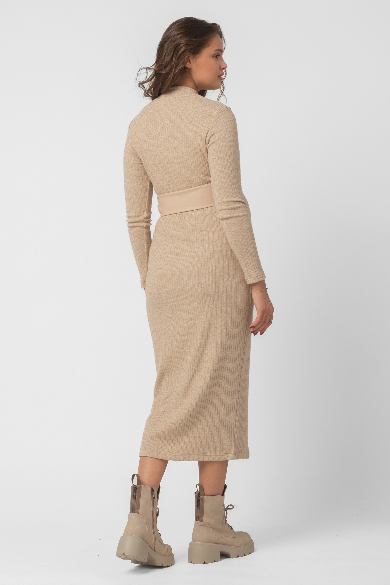 Красивое полуприлегающее платье из премиального трикотажа "лапша" создано специально для беременных женщин. Оно идеально вписывается в офисный стиль, подчеркивает силуэт и станет базой для создания стильных образов. Это нежное платье станет базовой вещью в гардеробе. Приталенная модель с завышенной талией и элегантным вырезом под горло идеально для прогулок, повседневной носки и праздника. Удобное платье прямого кроя с поясом из искусственной кожи станет любимой одеждой в столь важный жизненный период.