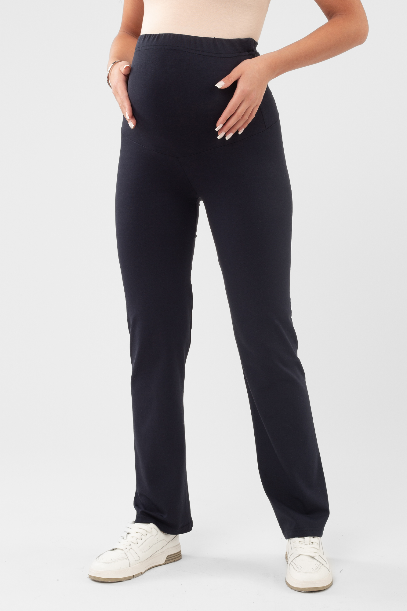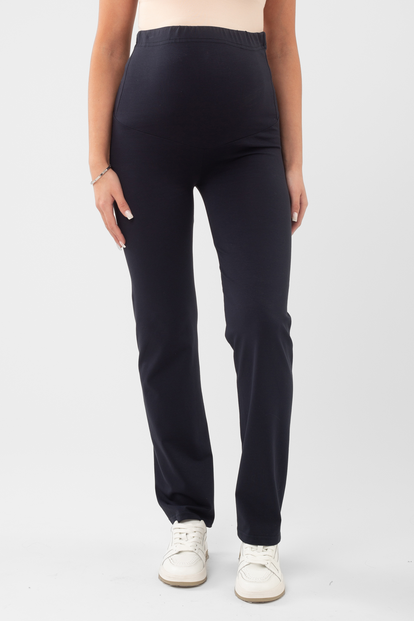 Спортивные брюки из трикотажного полотна для беременных. Благодаря крою не сковывают движений. Средняя посадка, эластичный бандаж из той же ткани позволяет носить брюки от начала до конца беременности. Объем регулируется с помощью перфорированной резинки, продетой в пояс изделия. Брюки можно носить и после беременности, свернув бандаж. Идеальны для занятий спортом, прогулок и в качестве домашней одежды.