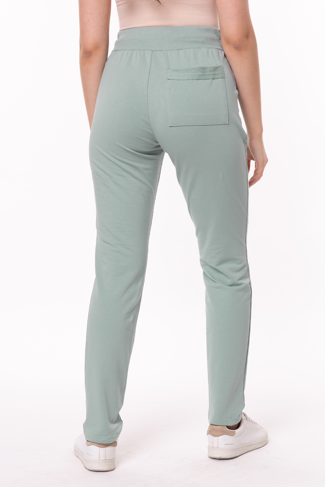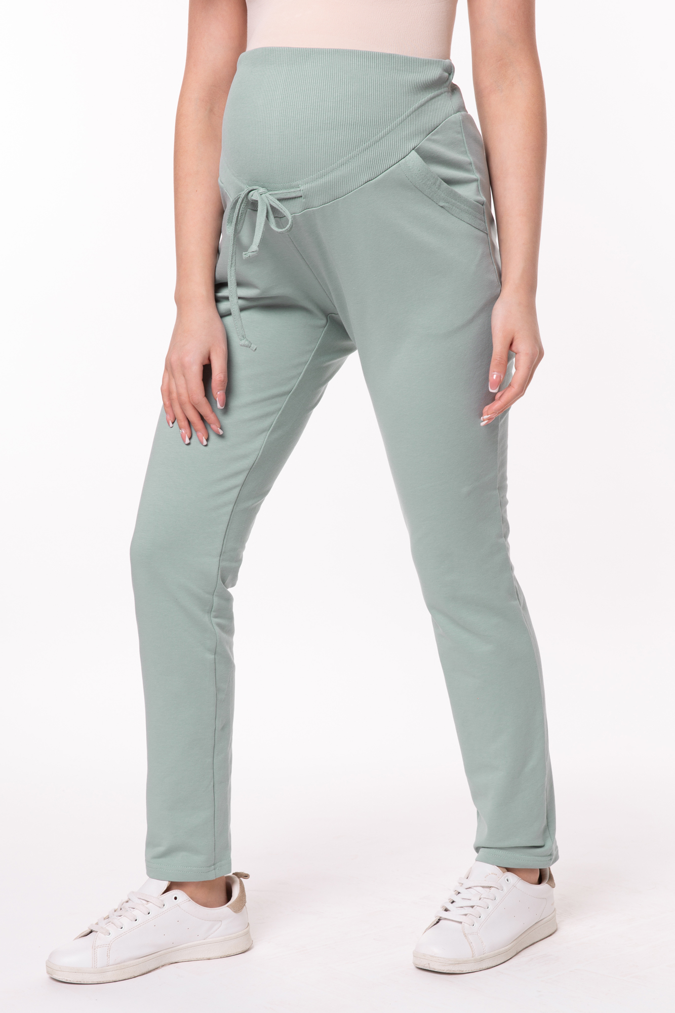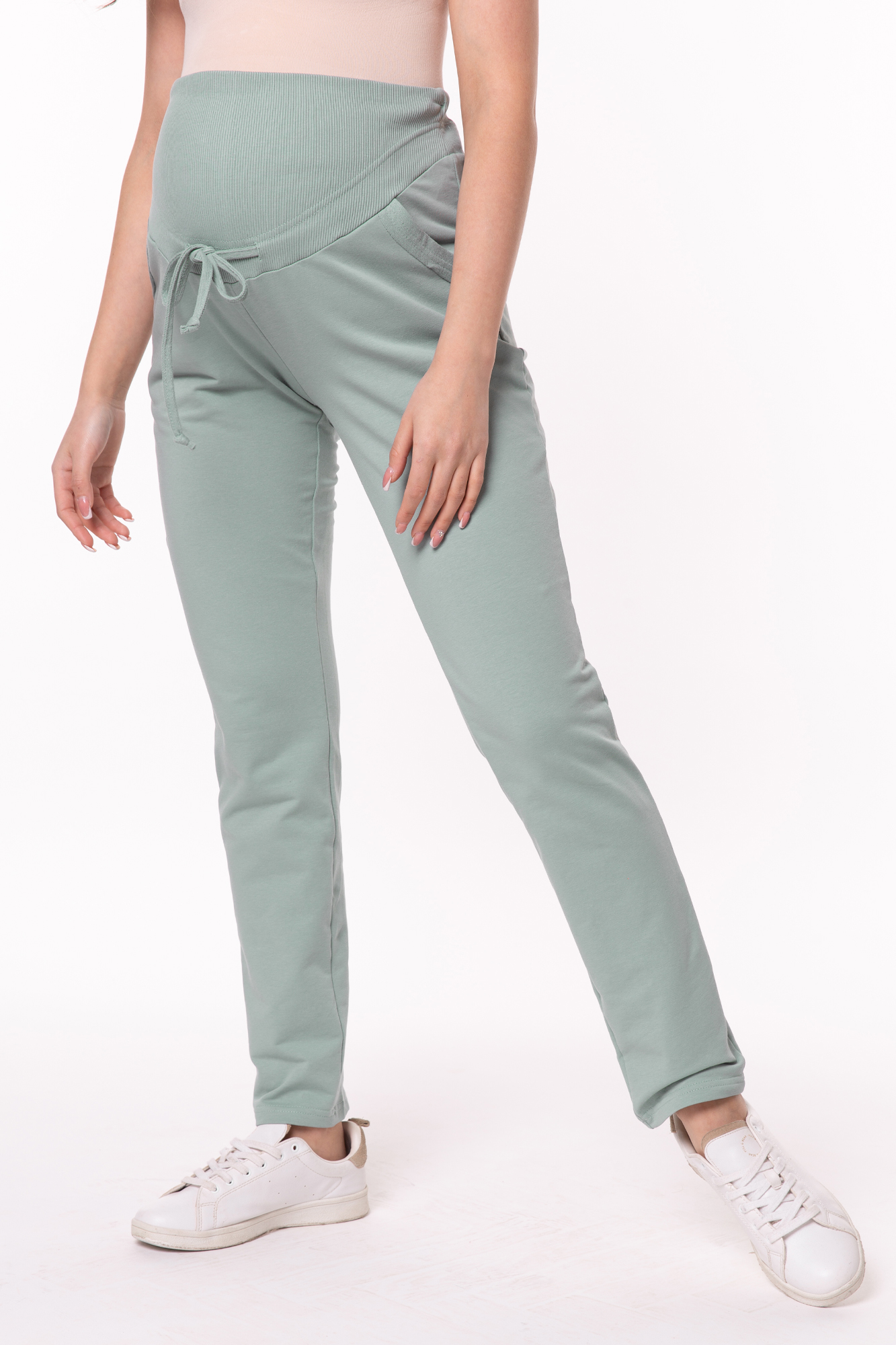Зауженные спортивные брюки из футера для беременных. Высокий эластичный бандаж мягко и деликатно поддерживает растущий животик. Объем регулируется шнурками в поясе и перфорированной резинкой, перестегивающейся на пуговицу, что позволяет носить брюки от начала до конца беременности и после родов. Невероятно комфортная модель для прогулок, занятий спортом и просто на каждый день.