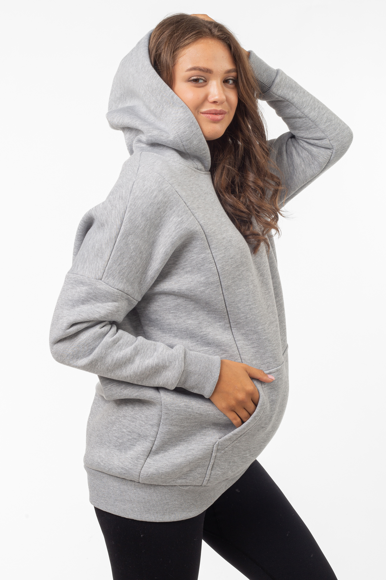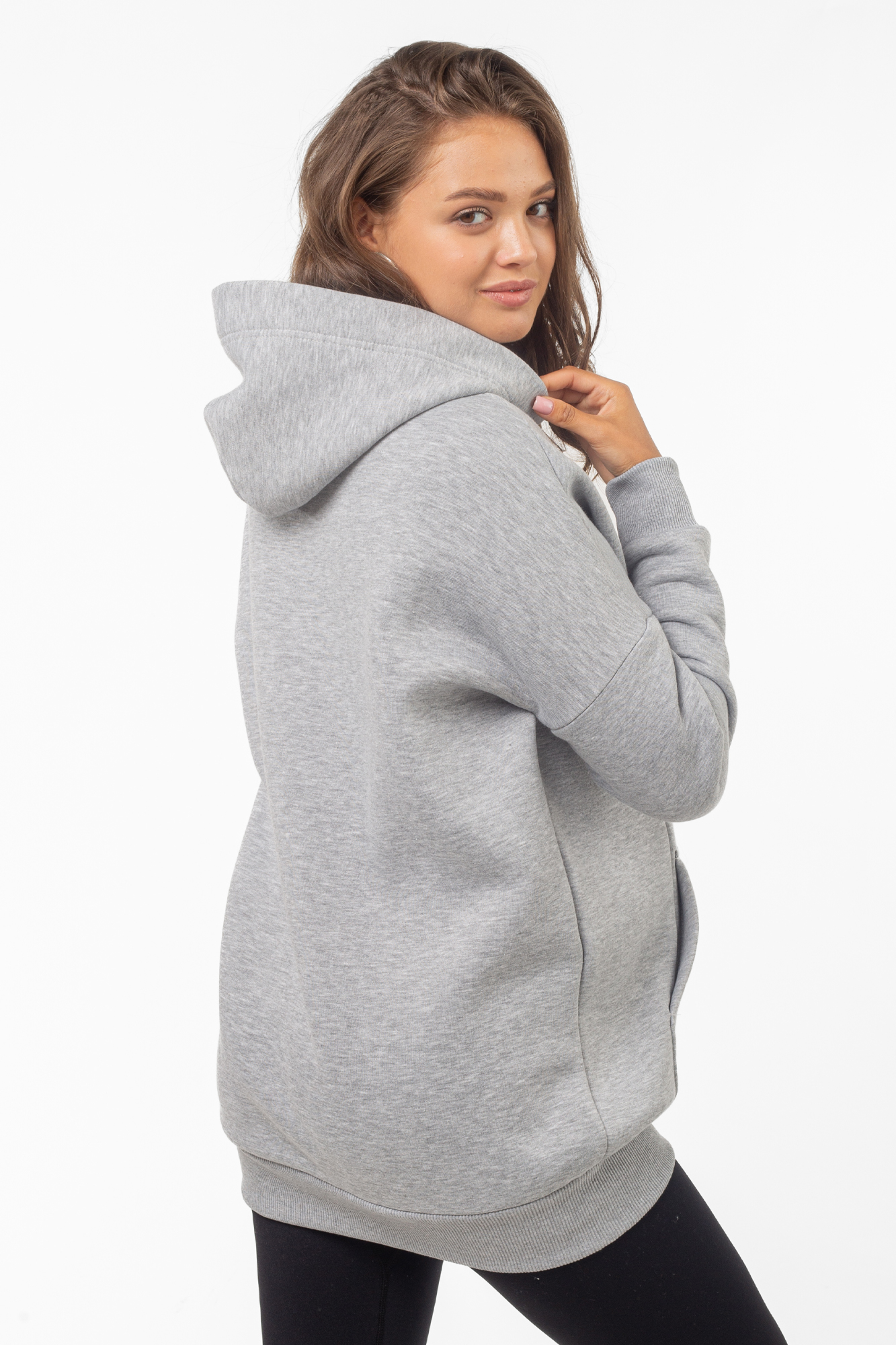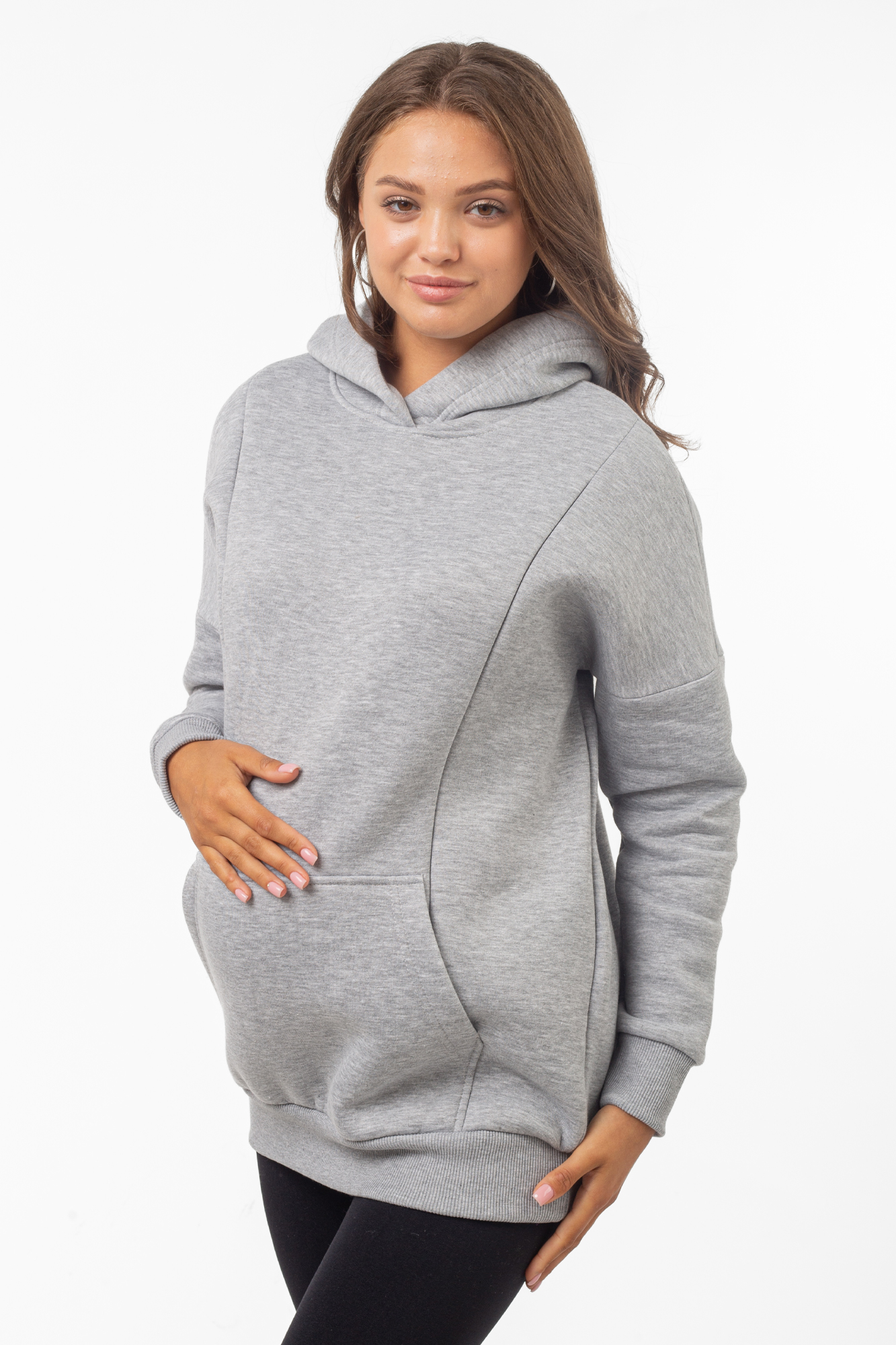 Базовая толстовка для беременных и кормящих женщин выполнена из качественного трехниточного футера с начесом. Фасон изделия по последним трендам: свободный крой оверсайз, средняя длина, длинный рукав на манжете и капюшон. На животе предусмотрен вместительный карман-кенгуру. Худи дополнит женский гардероб на любом сроке беременности, а также подойдет кормящим мамам: по бокам вшиты скрытые молнии для комфортного кормления малыша. Сочетать толстовку можно с большинством повседневных женских вещей - джинсами и леггинсами, футболками и майками, курткой и плащом. Вещь подойдет для ежедневного ношения, занятий спортом, путешествий и отдыха. В размерной линейке представлены стандартные размеры.