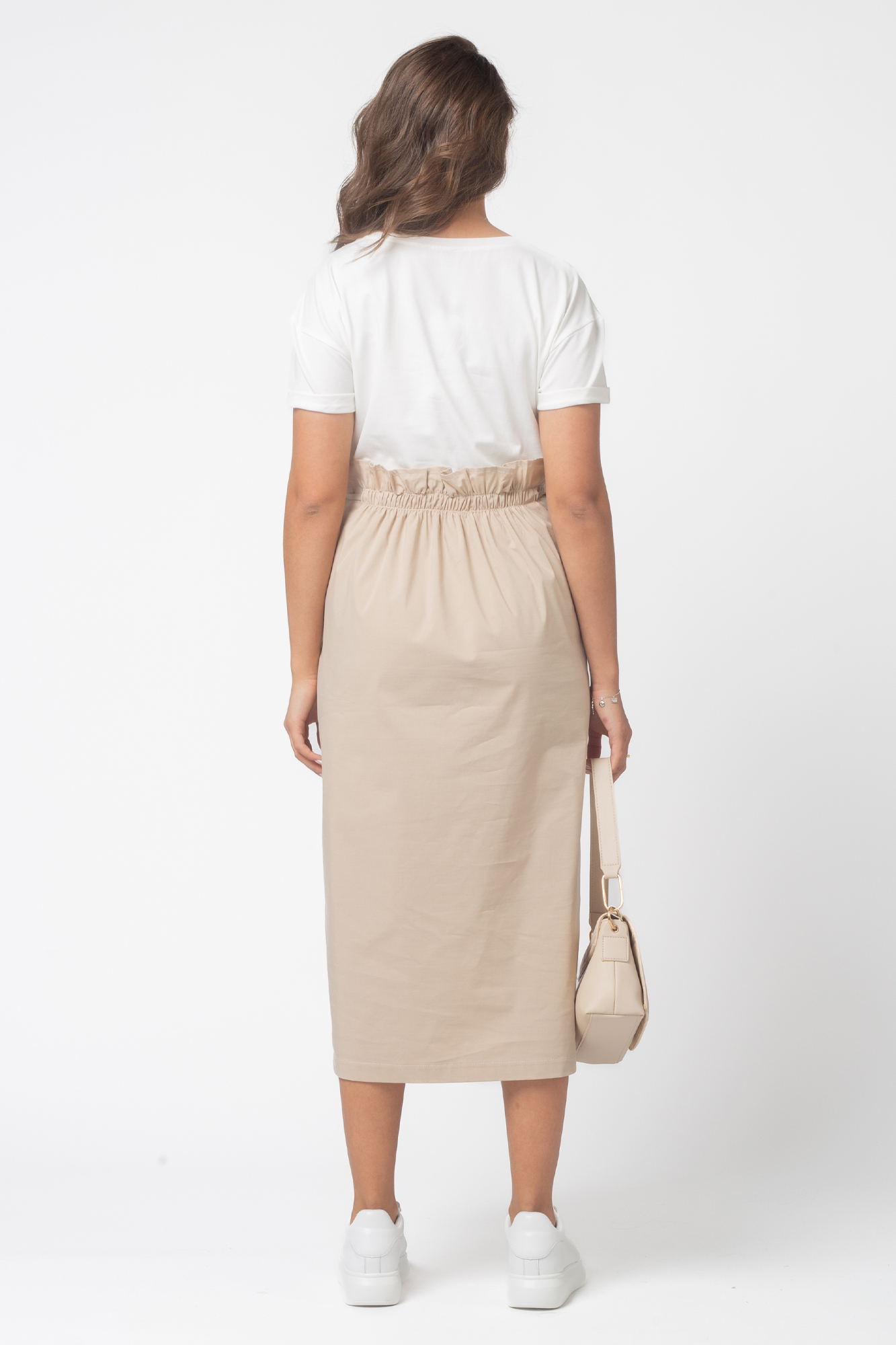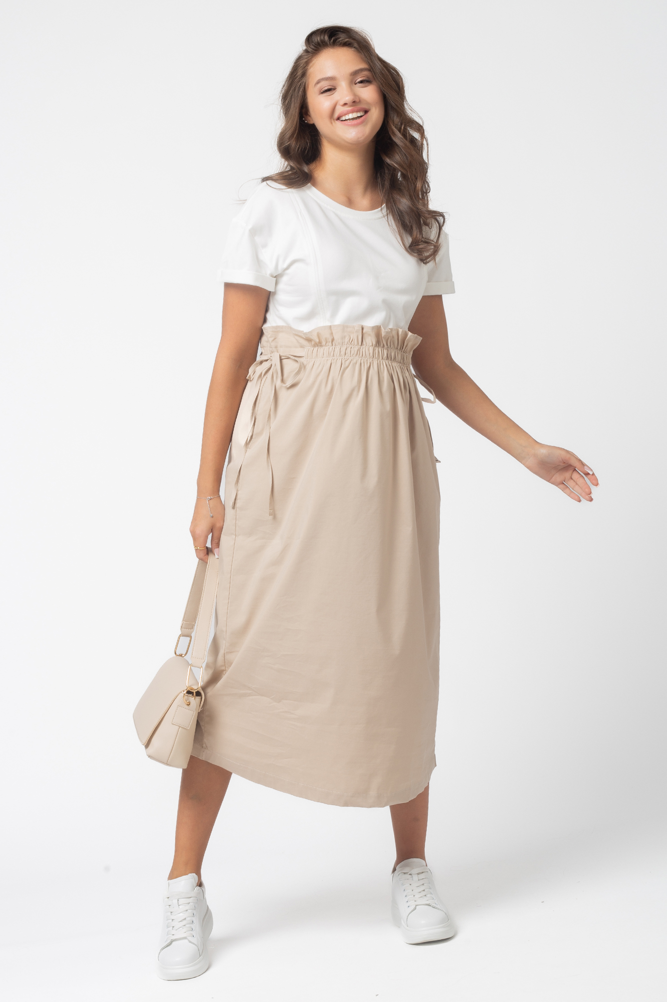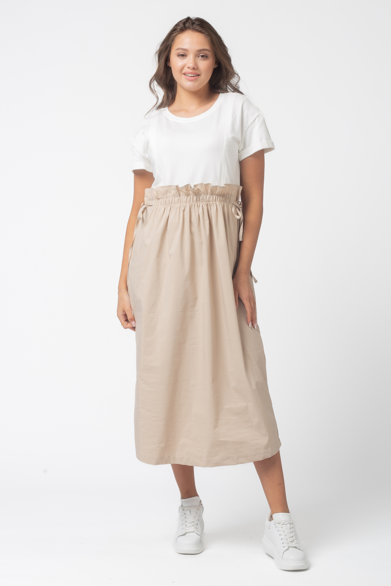 Летнее платье в стиле casual из комбинированных тканей для беременных и кормящих. В такой одежде вы будете чувствовать себя комфортно и легко. Детали: округлый вырез горловины, короткий рукав, практичная длина. Благодаря встречным потайным молниям под грудью Вам удастся покормить малыша с комфортом в любой ситуации. Платье прекрасно сидит на любом сроке беременности, а после родов скроет временные несовершенства фигуры.