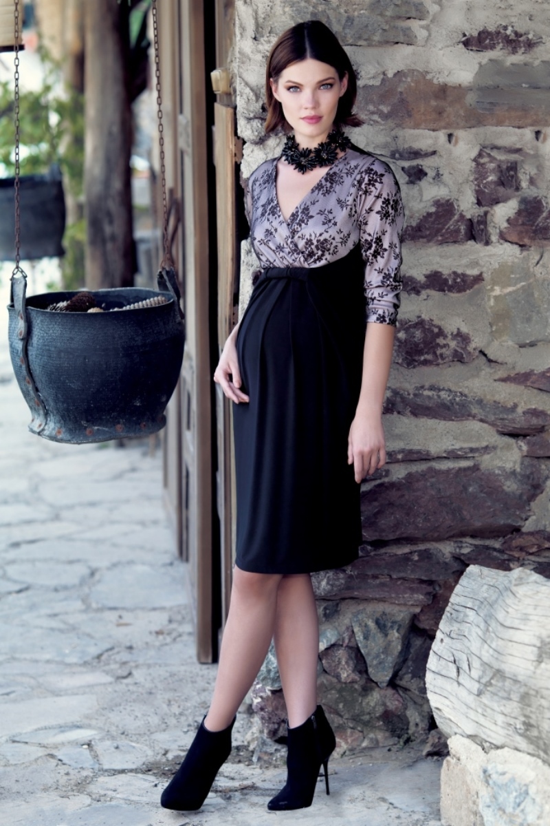 Элегантное платье для будущих мам. Выполнено из комбинированных тканей. Лаконичный покрой и сочетание материалов создают шикарный вечерний образ. Специально разработанный крой позволит носить изделие на всем протяжении беременности.