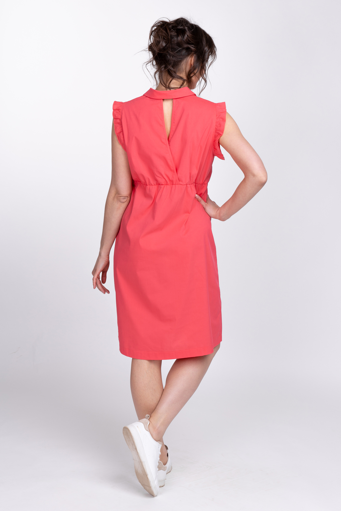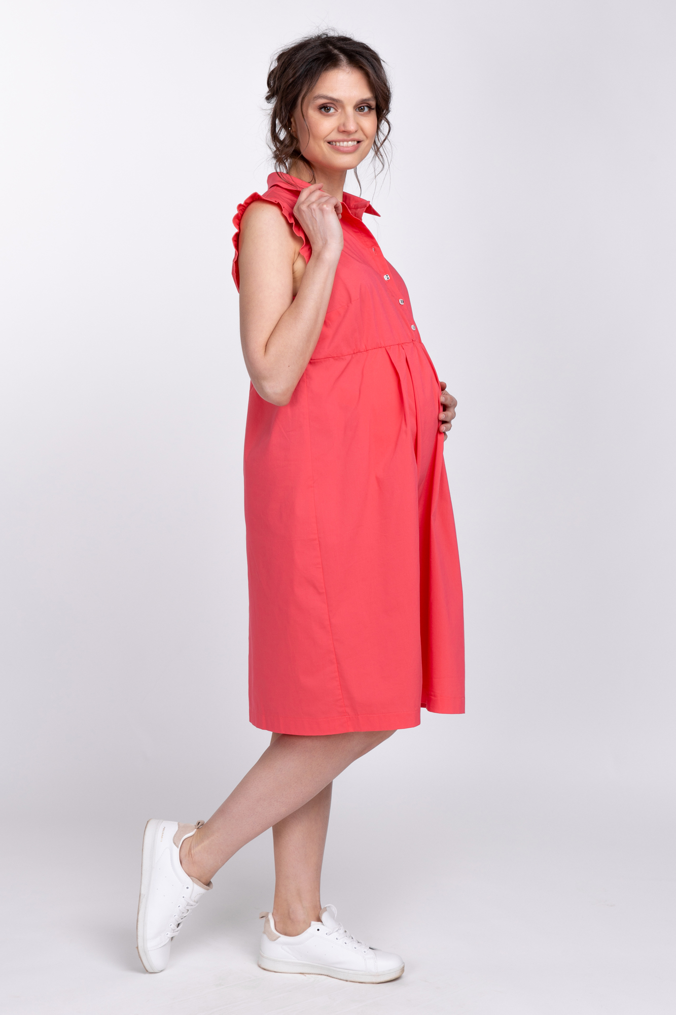 Стильное повседневное платье для беременных выполнено из высококачественного дышащего хлопка с обавлением эластана. Модель свободного кроя из-под груди, средней длины, с планкой по переду и застежкой на пуговицы. Оригинальный дизайн спинки. Модель можно носить на разных сроках беременности, а так же и после неё.