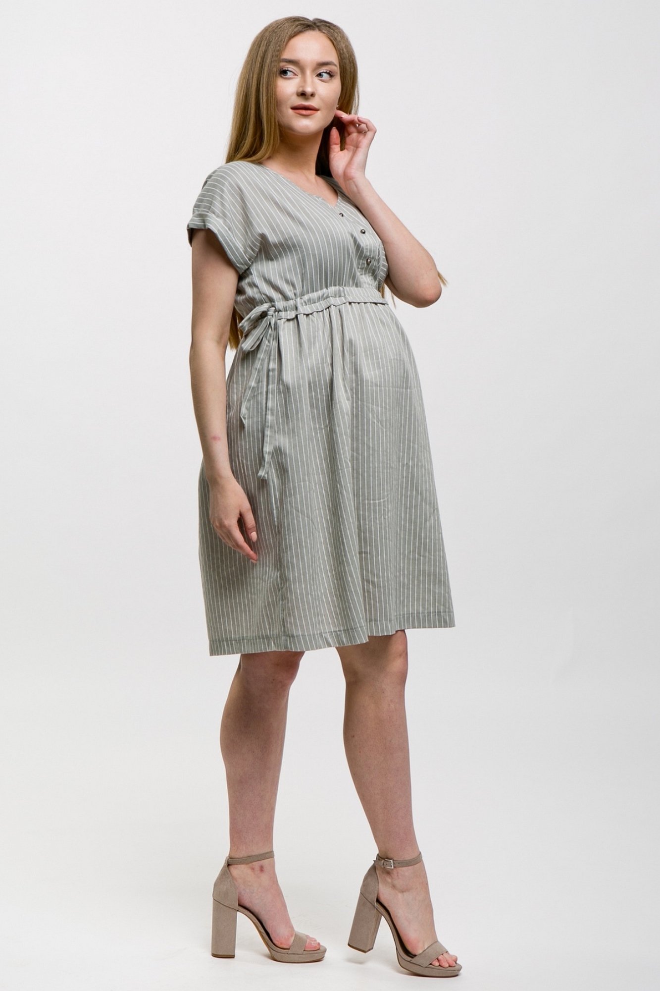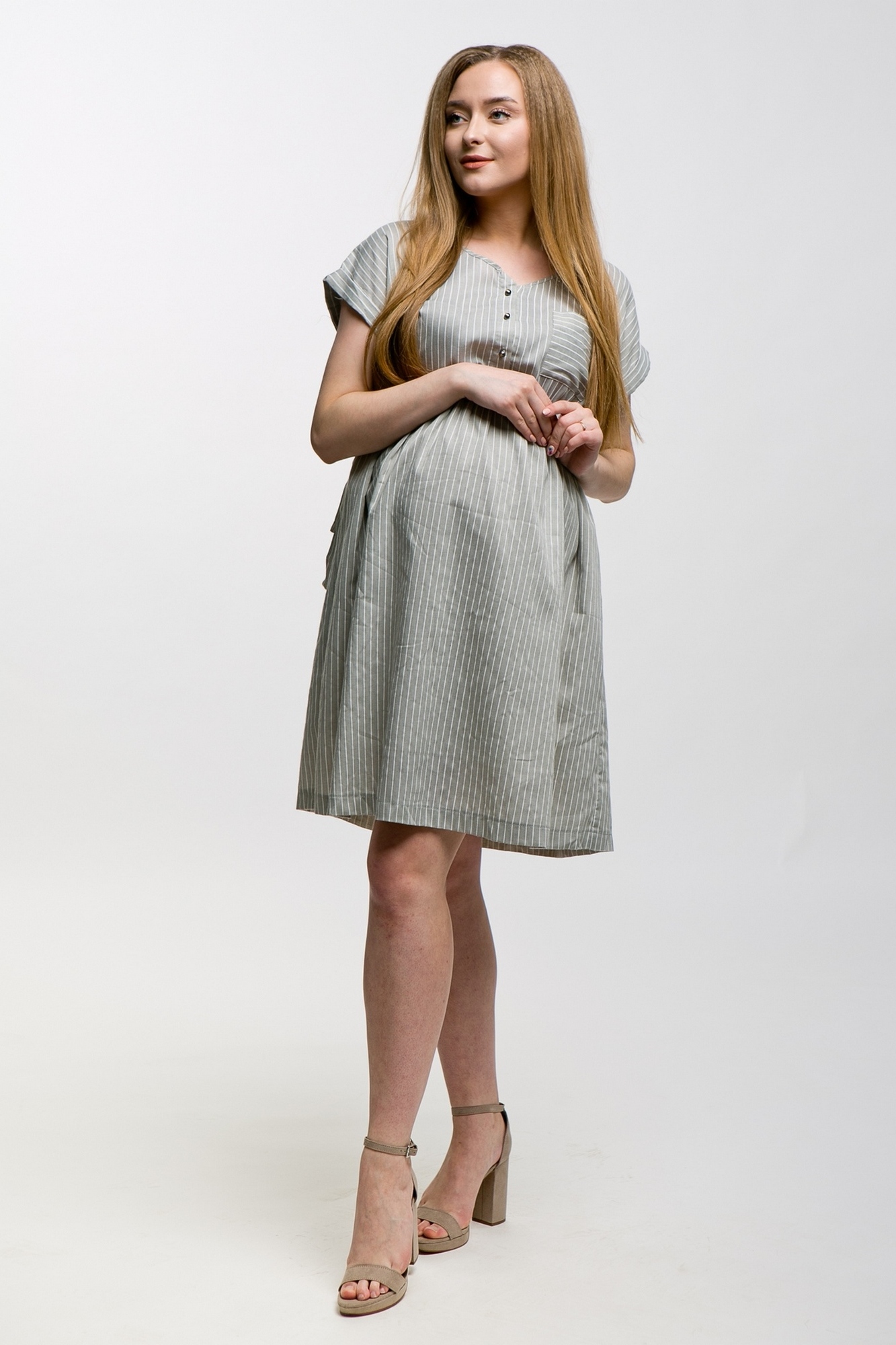 Платье для беременных 10370 хаки в полоску