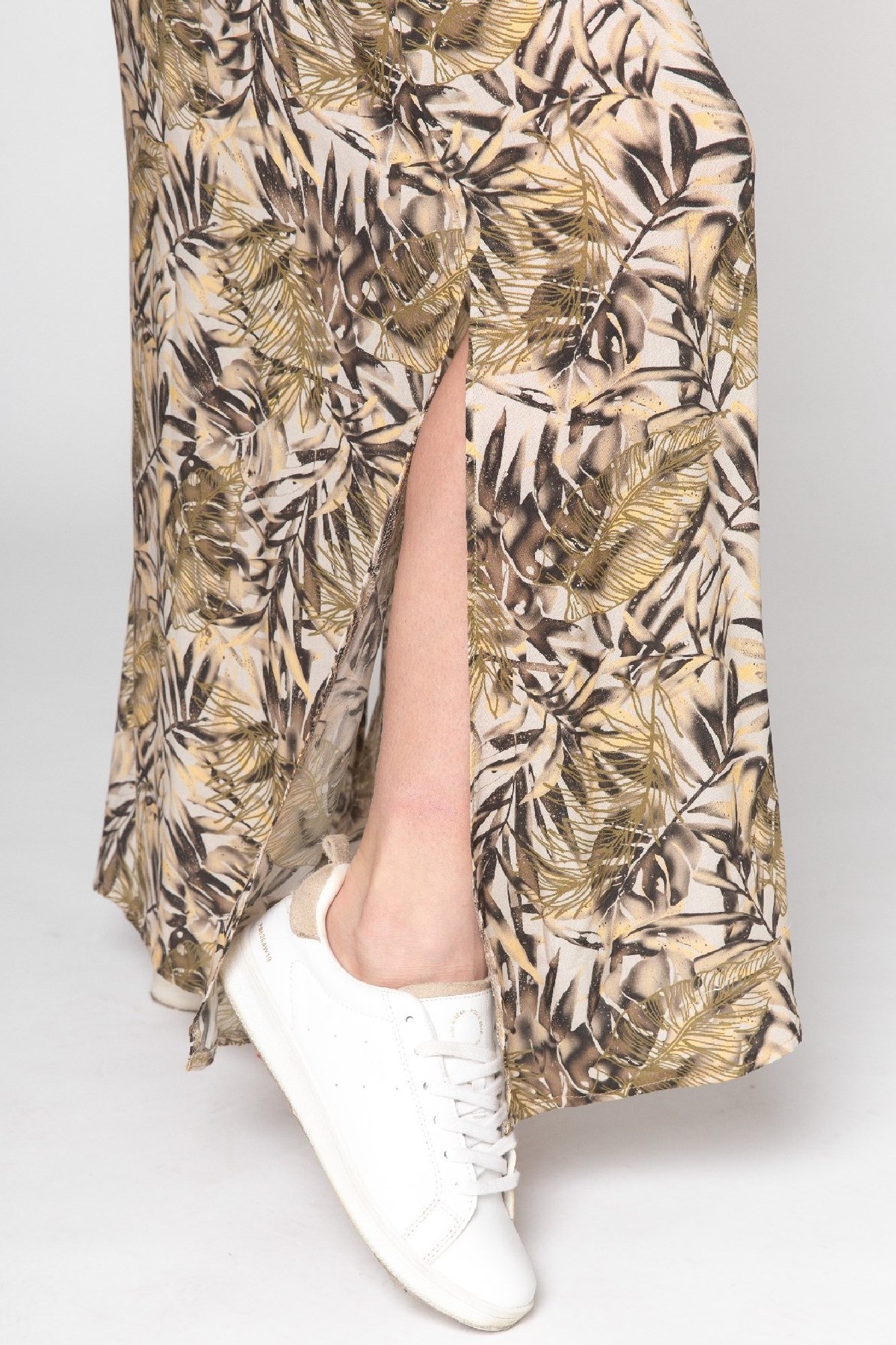 Длинное платье с яркой расцветкой для будущих мам. Округлый вырез горловины, без рукавов. Приталенный силуэт создает резинка под грудью и по спинке. Тонкий ремешок подчеркнет элегантность образа. Разрез сбоку обеспечит свободу движений. Платье можно носить на всем протяжении беременности и после нее. Подойдет так же для особых случаев.
