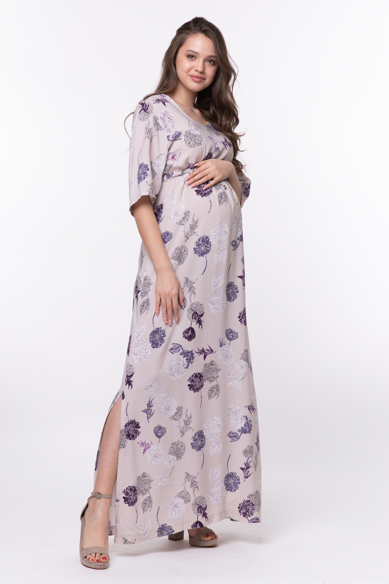 Платье из высококачественной шелковистой вискозы для будущих мам. Натуральный материал подарит приятные тактильные ощущения и обеспечит комфорт будущей маме и малышу. У платья V-образный вырез горловины, короткий рукав, разрезы по бокам изделия, длина макси. Свободный крой из-под груди позволяет носить платье на всем протяжении беременности, а после родов скроет временные несовершенства фигуры. объем регулируется кулиской под грудью.