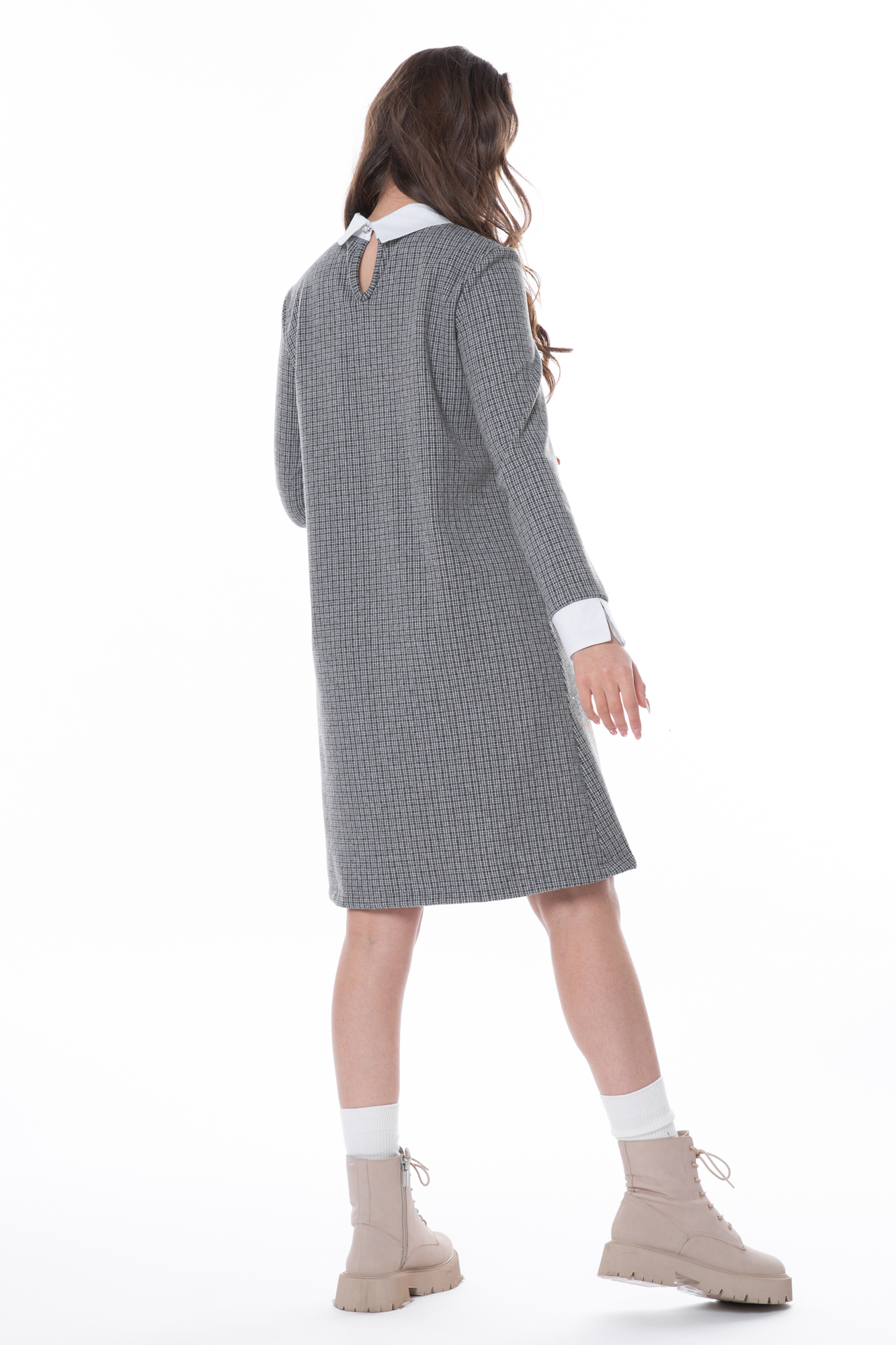 Платье для беременных в клетку из плотного трикотажа. Силуэт трапеция, длинный рукав, практичная длина. Модель декорирована манжетами и отложным рубашечным воротником белого цвета. Идеальная посадка на протяжении беременности и после родов. Подходит для работы в офисе, романтических свиданий, деловых встреч, на выписку и просто на каждый день.