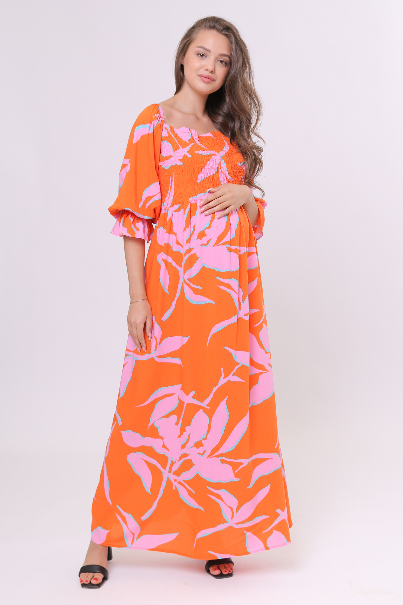 Длинное платье для беременных выполнено из легкой и струящейся вискозы. Детали: длина макси, покрой А-силуэта, квадратный вырез декольте. Рукав до локтя с небольшим воланом можно приспустить и оголить плечи, создав невероятно романтичный образ. На груди эластичная строчка позволяет надевать изделие без застежи. Красивое летнее платье гармонично сочетается с босоножками, сандалиями, туфлями и кедами. Его можно дополнить любыми вещами из женского гардероба: кардиганом, жакетом, рубашкой. Платье идеально подойдет для повседневного ношения летом, на праздник или встречу с подругами, прогулок и путешествий. Модель можно носить на всем протяжении беременности, на первых сроках скроет положение, а после родов - временные несовершенства фигуры.