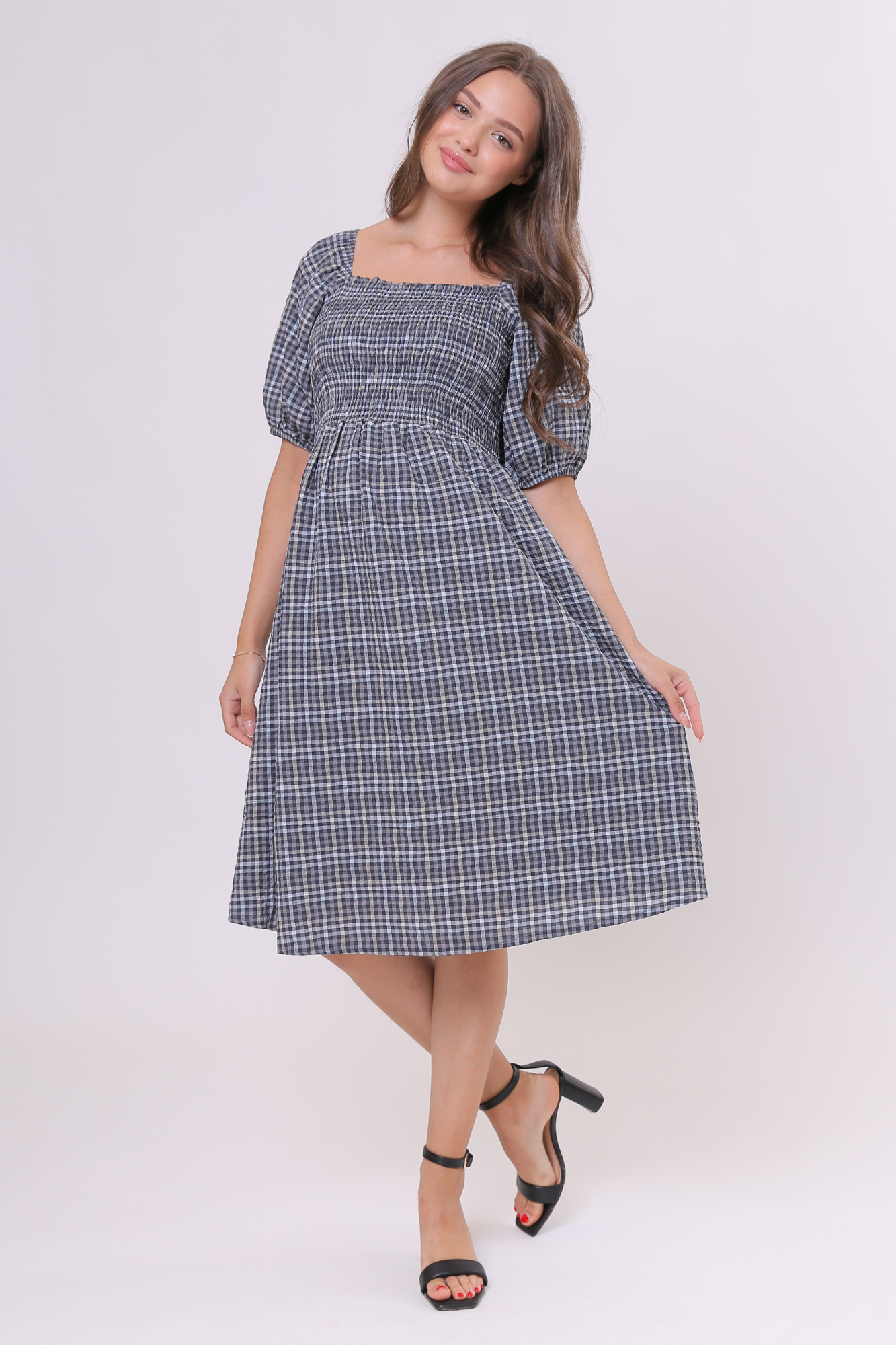Летнее оригинальное платье для беременных из высококачественной хлопковой ткани. Модель свободного кроя и универсальной длины миди. Рукав короткий со сборко, квадратный вырез декольте, на груди эластичная строчка, позволяющая надевать платье без застежки, завышенная талия. Нвободная юбка аккуратно подчеркивает фигуру, не стесняет движений и не мешает растущему животику, поэтому платье подходит для любого срока беременности. Модель хорошо сочетается с разными вещами, обувью и аксессуарами из женского гардероба: кардиганами и туфлями, джинсовками и кедами. Платье можно выбрать в качестве повседневного варианта, для офиса и деловых встреч, а также как наряд на выписку в летний сезон. Размерная линейка включает все стандартные размерные позиции.