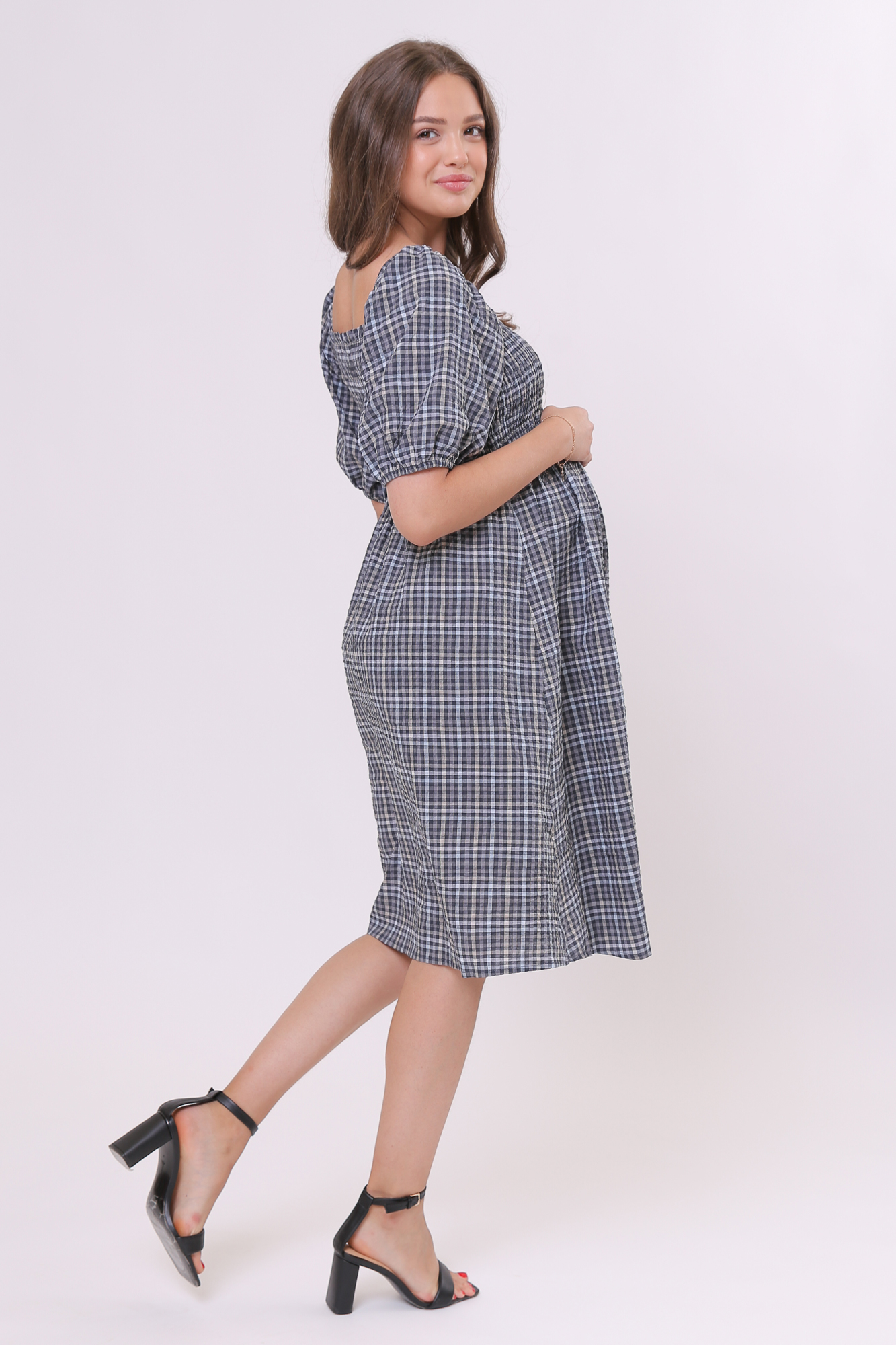 Платье для беременных 13478 голубая клетка