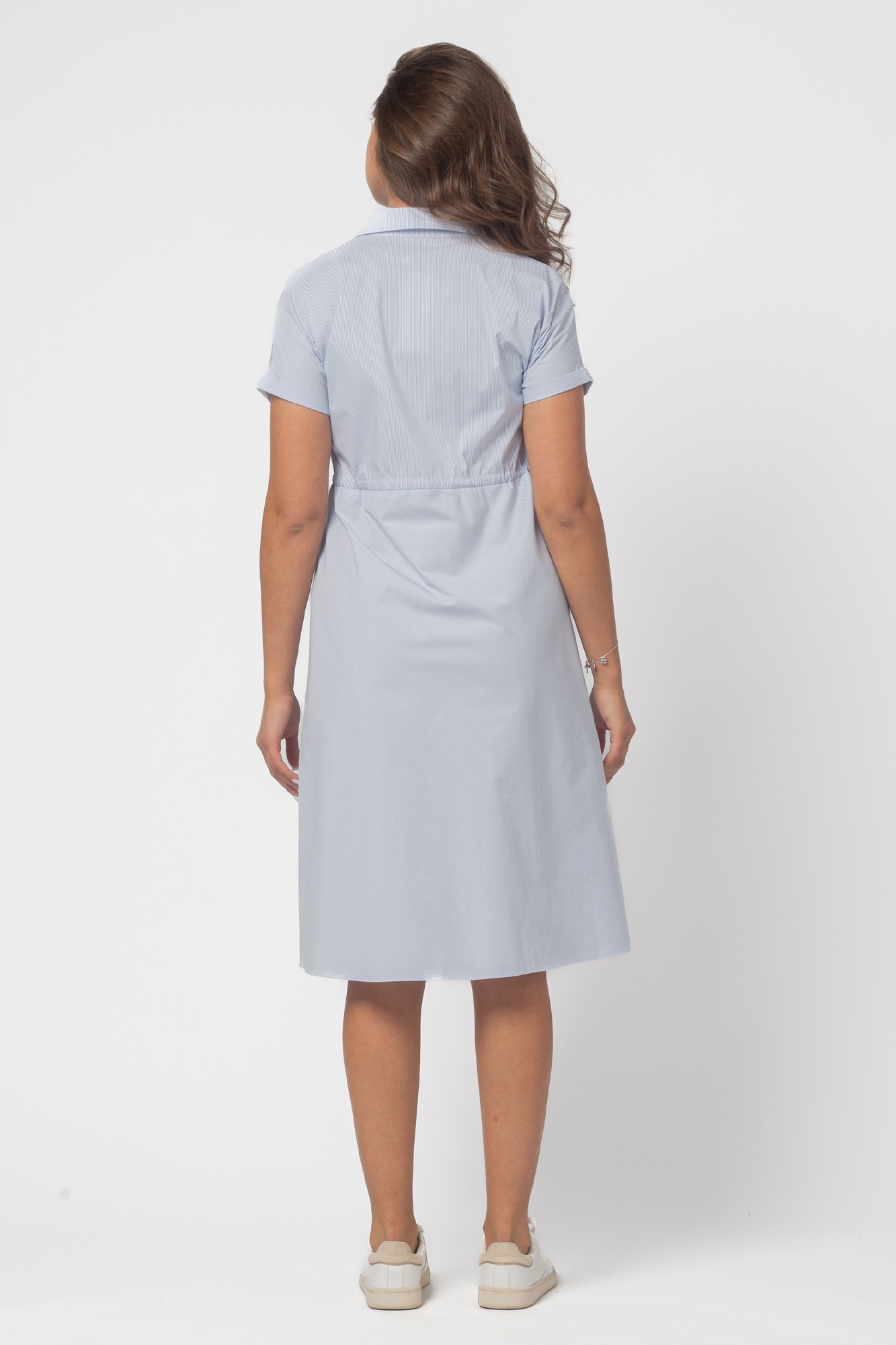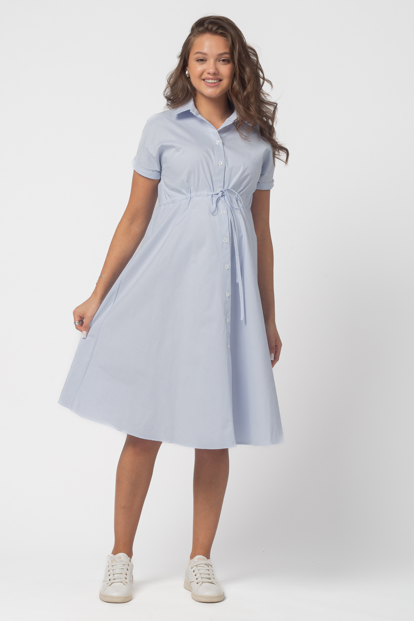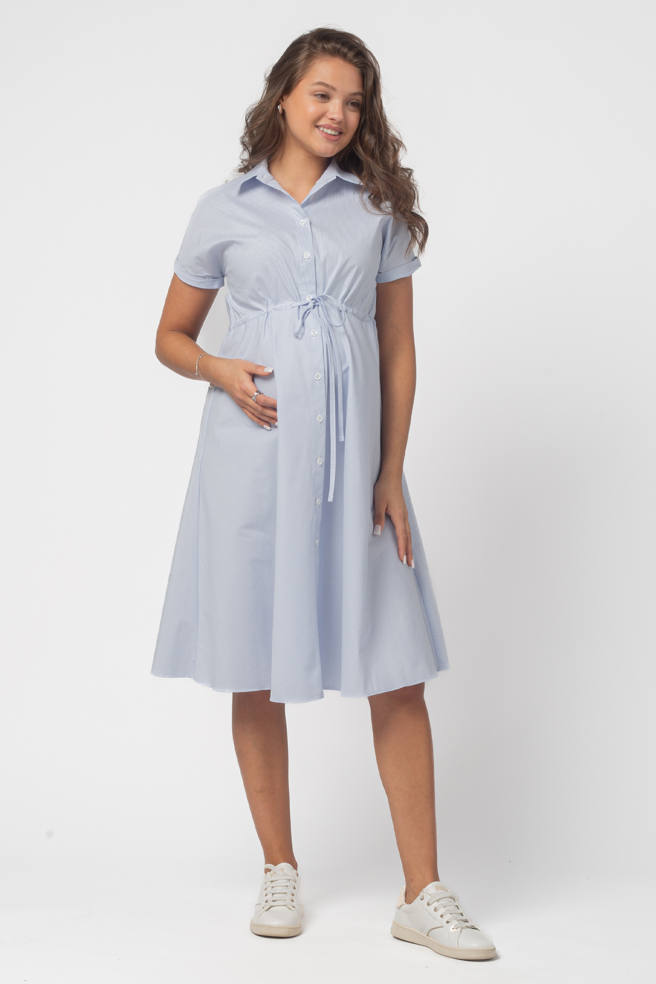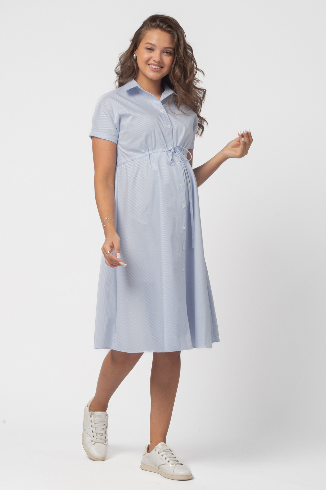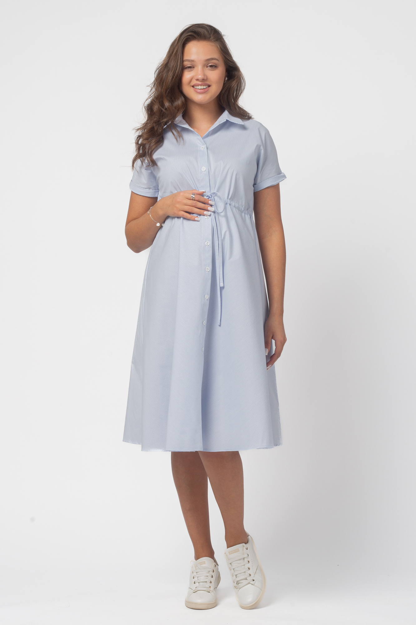 Легкое летнее платье-рубашка для беременных прекрасно подойдет для мероприятий и просто на каждый день. Модель имеет свободный, чуть приталенный крой и универсальную длину миди. Короткие рукава, воротник классический отложной, застежка на пуговице. Для удобства в платье добавлены завязки, которые можно затянуть и сделать фасон более приталенным или наоборот более свободным. В теплую погоду такую модель можно выбрать в качестве наряда на выписку.