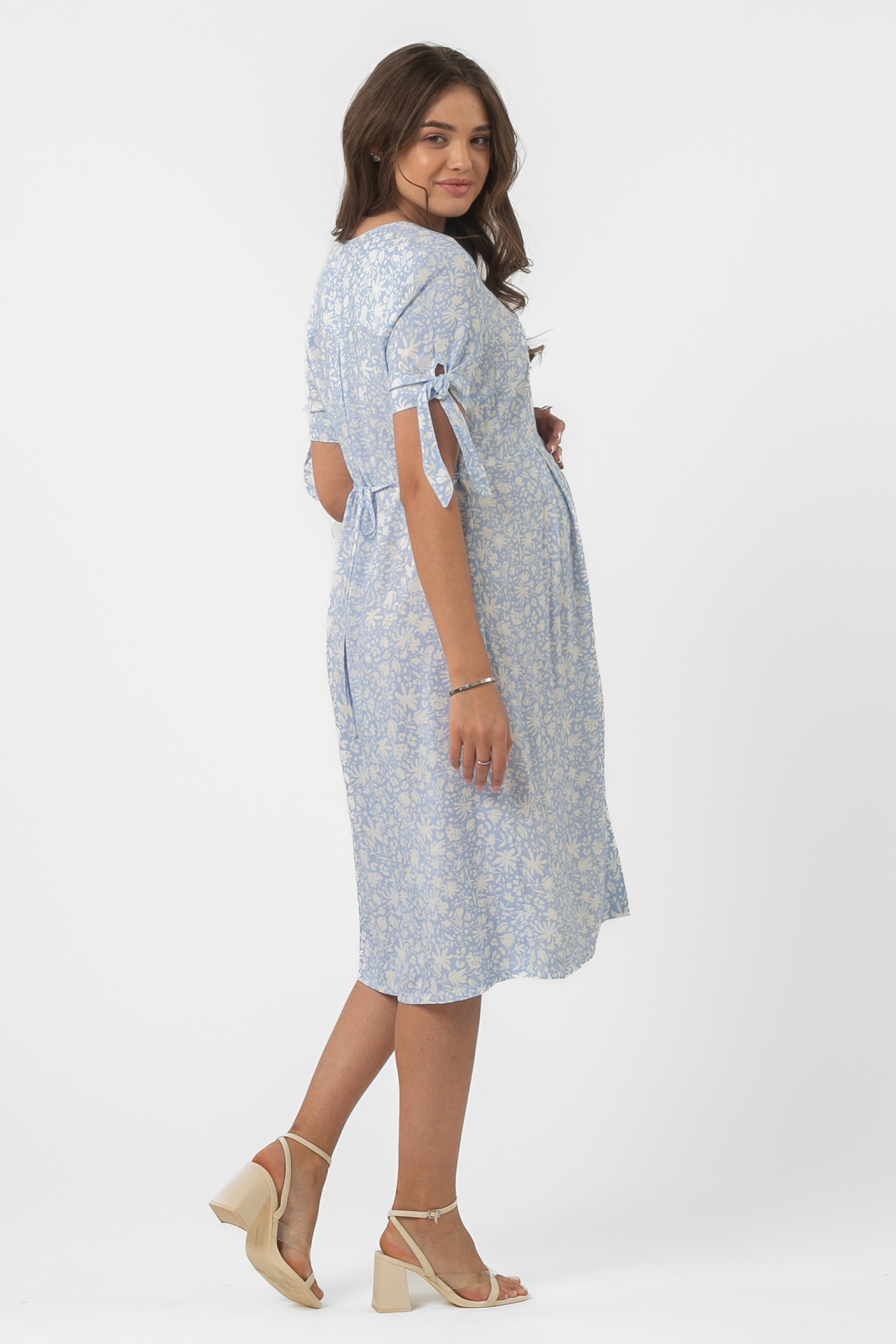 Платье для беременных 15921 голубой/принт мелкий цветочек