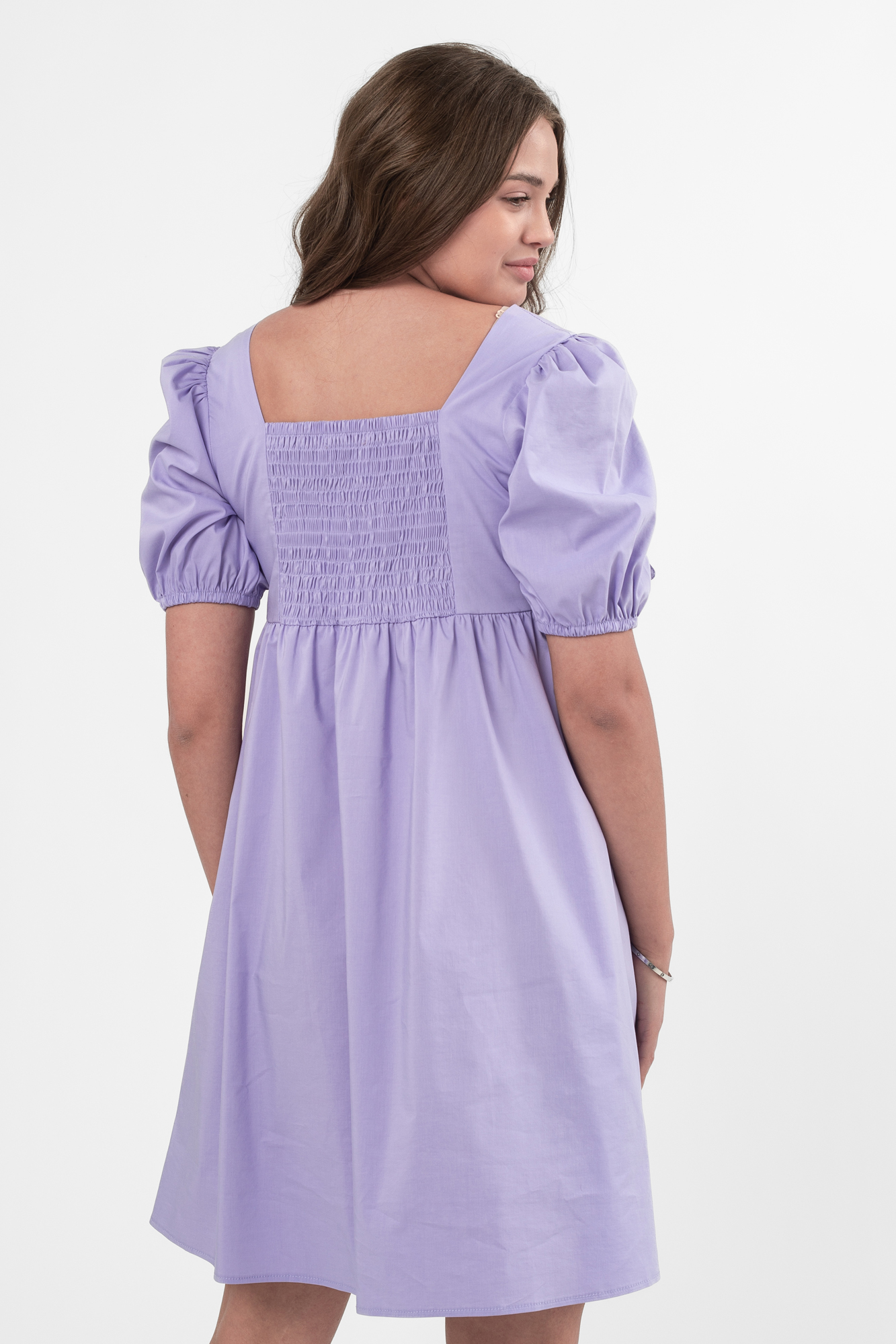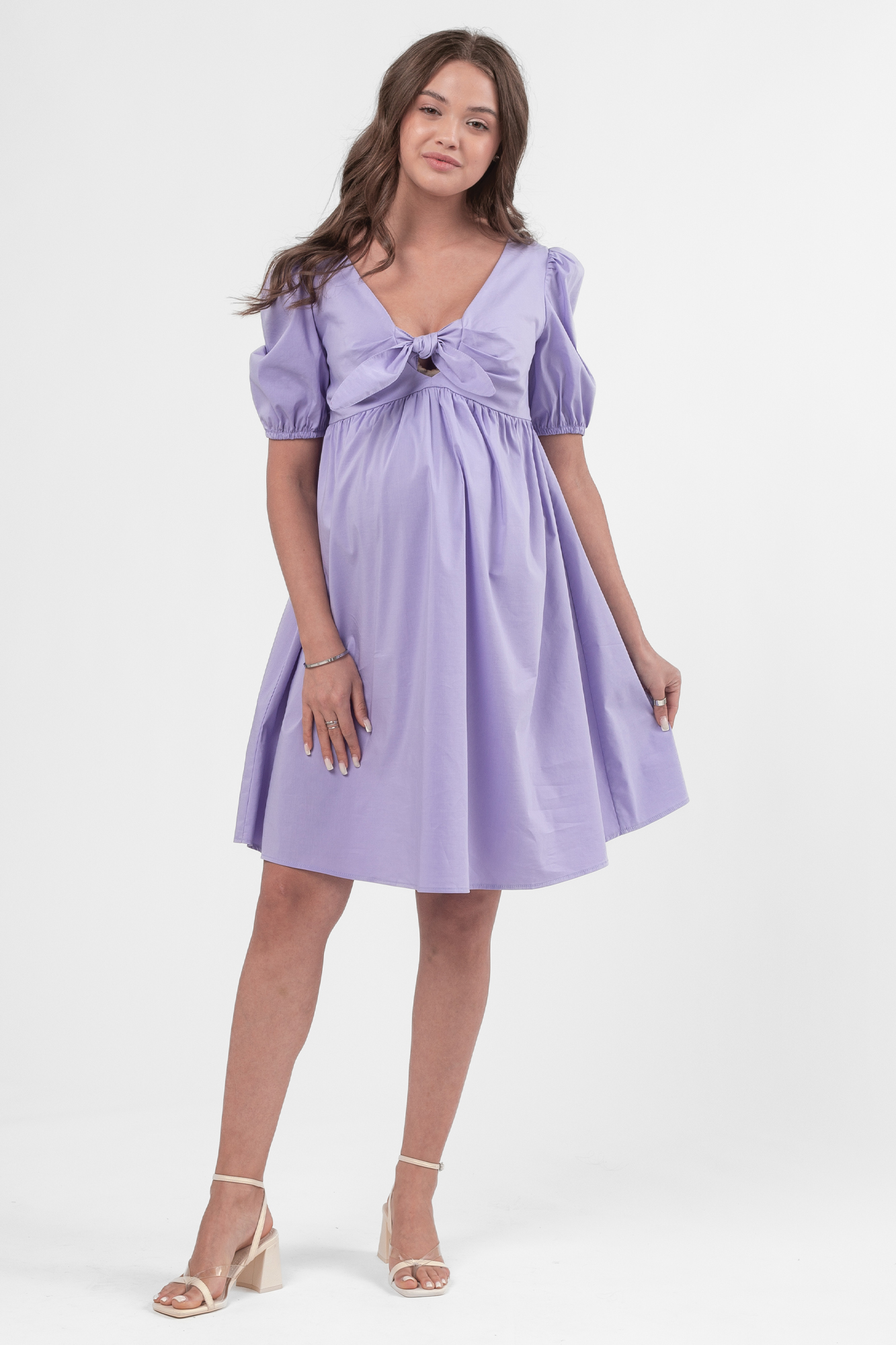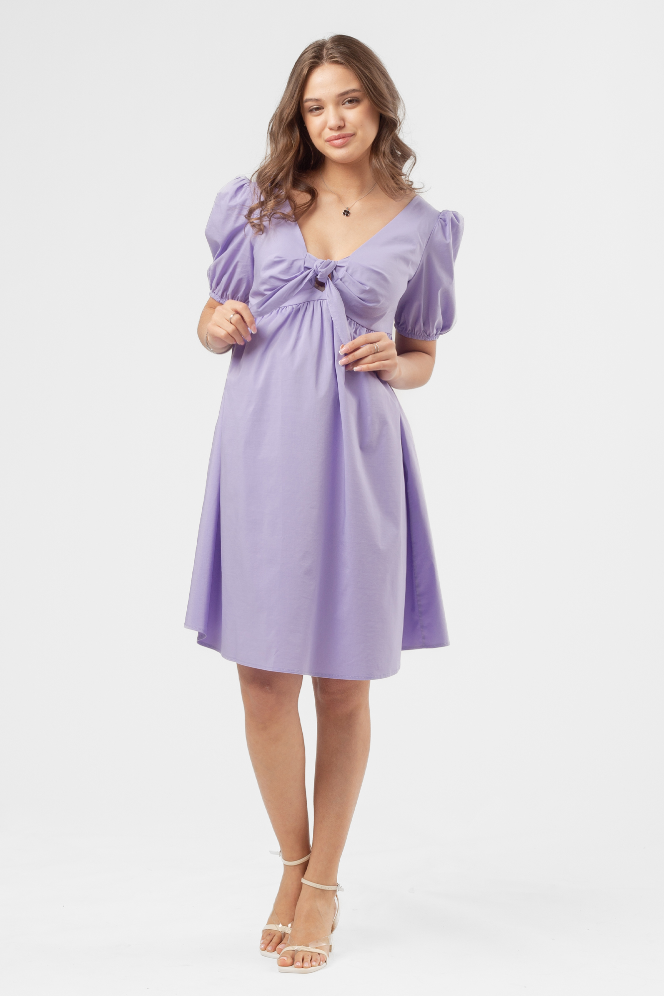 Легкое летнее платье для беременных прекрасно подойдет для мероприятий и просто на каждый день. Модель имеет свободный, чуть приталенный крой и длину мини. Платье имеет короткие рукава-фонарики, а также на груди расположены завязки, которые позволяют регулировать объем в верхней части платья. На спине добавлена перфорированная резинка, что позволяет носить платье с особым комфортом. В теплую погоду такую модель можно выбрать в качестве наряда на выписку.