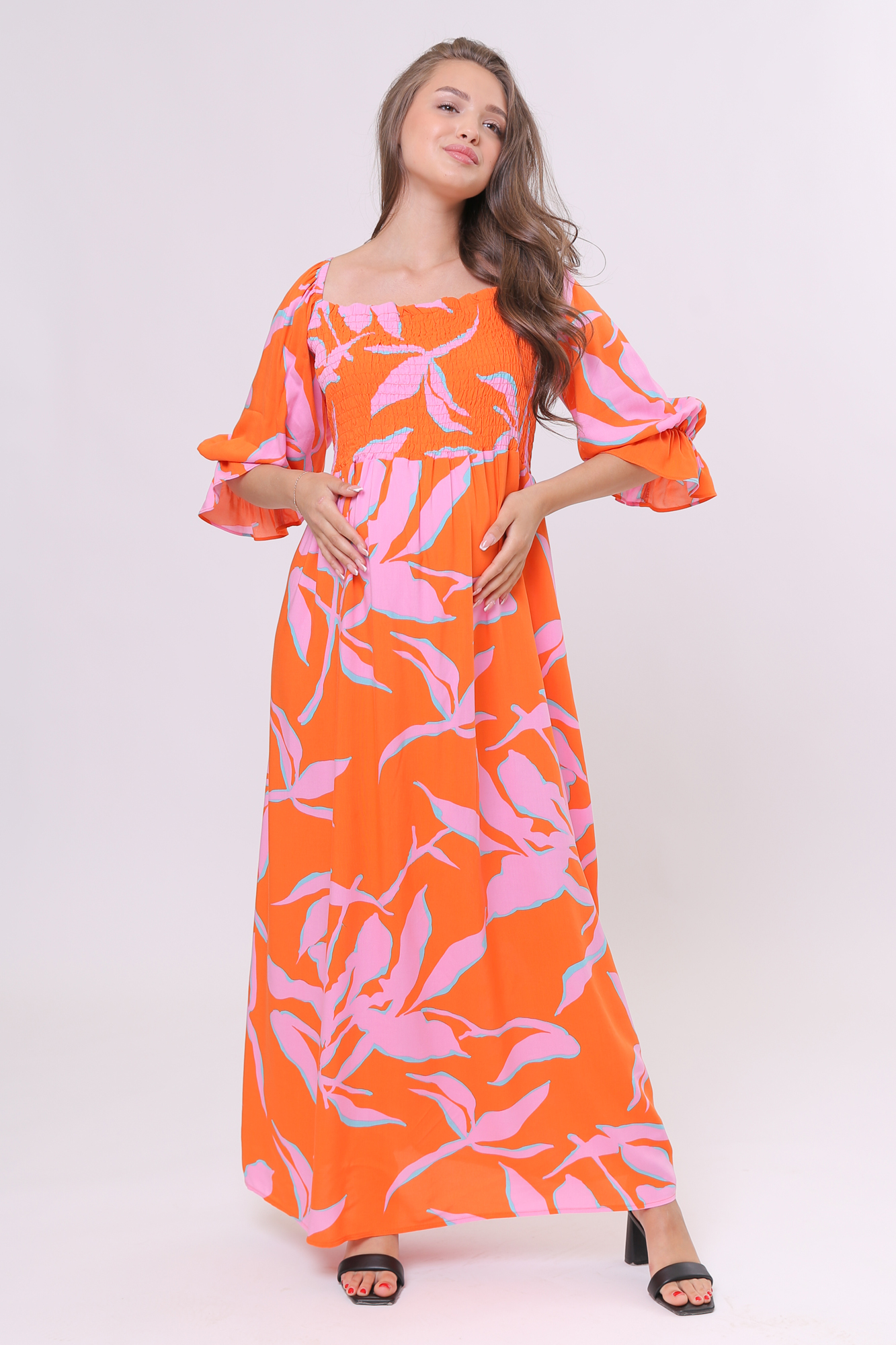 Длинное платье для беременных выполнено из легкой и струящейся вискозы. Детали: длина макси, покрой А-силуэта, квадратный вырез декольте. Рукав до локтя с небольшим воланом можно приспустить и оголить плечи, создав невероятно романтичный образ. На груди эластичная строчка позволяет надевать изделие без застежи. Красивое летнее платье гармонично сочетается с босоножками, сандалиями, туфлями и кедами. Его можно дополнить любыми вещами из женского гардероба: кардиганом, жакетом, рубашкой. Платье идеально подойдет для повседневного ношения летом, на праздник или встречу с подругами, прогулок и путешествий. Модель можно носить на всем протяжении беременности, на первых сроках скроет положение, а после родов - временные несовершенства фигуры.