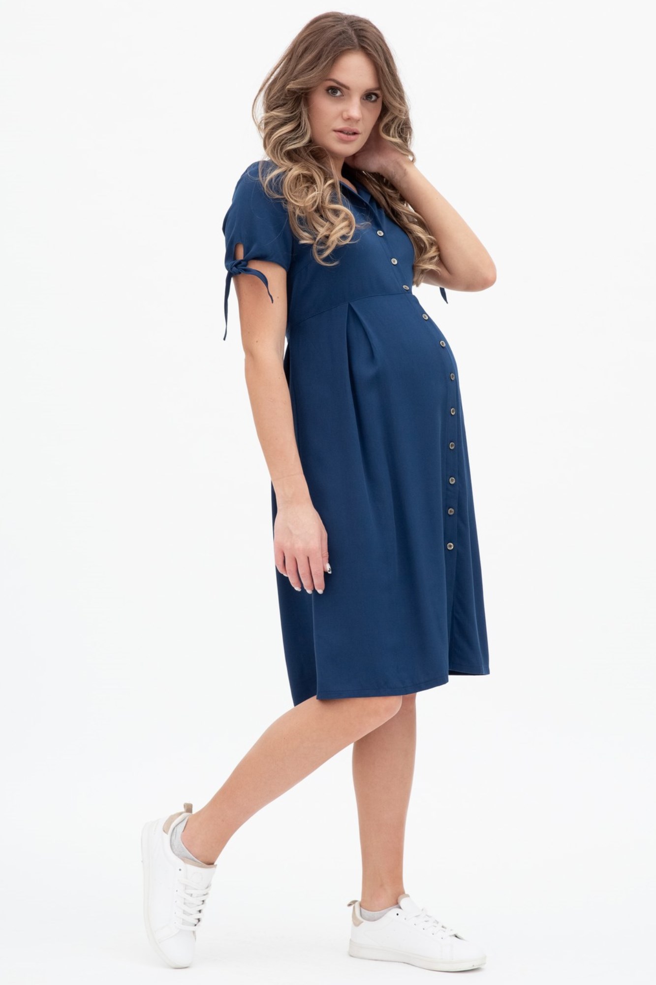 Стильное платье-рубашка для будущих мам выполнено из высококачественной плательной вискозы. Натуральный материал подарит приятные тактильные ощущения и обеспечит комфорт будущей маме и малышу. Короткий оригинальный рукав с завязками, отложной воротник, по переду застежка на пуговицы. Специальный крой позволяет носить изделие на всем протяжении беременности и после родов.