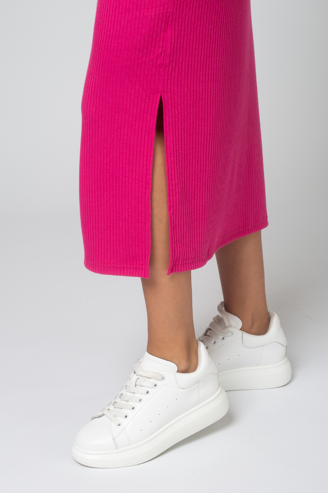 Базовое платье для беременных сшито из мягкого эластичного трикотажа в рубчик. Материал на основе натурального хлопка и вискозы идеально подходит для жаркого летнего сезона. Он имеет дышащую структуру, приятен на ощупь, гипоаллергенен. Эластичность ткани обеспечивает сохранность формы изделия даже при активной повседневной носке. Фасон платья универсален: приталенный крой по фигуре, круглый вырез, широкие бретели. Длина ниже колена подчеркивается длинными боковыми вырезами. Сарафан из трикотажа лапша облегает фигуру, но в то же время не подчеркивает никаких недостатков благодаря своей фактурности. Платье майка отлично тянется и комфортно носится на протяжении всей беременности. Впрочем, после рождения малыша будущая мама может уверенно оставить сарафан в своем привычном гардеробе.