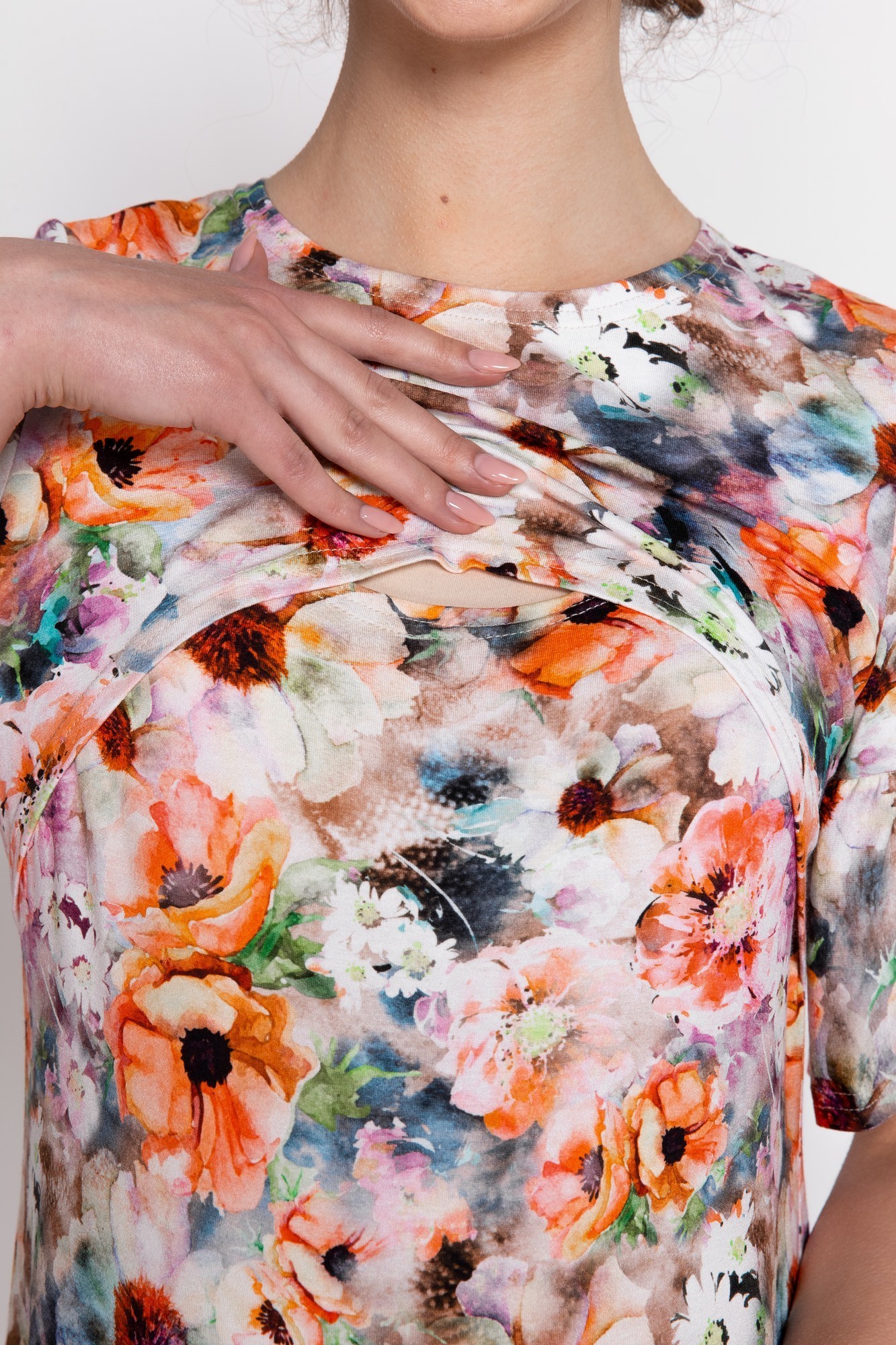 Оригинальное платье для будущих и кормящих мам. Свободный крой из-под груди выгодно подчеркнет Ваше положение и легко скроет его на первых сроках. Горизонтальный секрет позволит покормить Вашего малыша с комфортом в любой ситуации. Платье подойдет как на каждый день, так и для особых случаев, если дополнить его соответствующими аксессуарами.