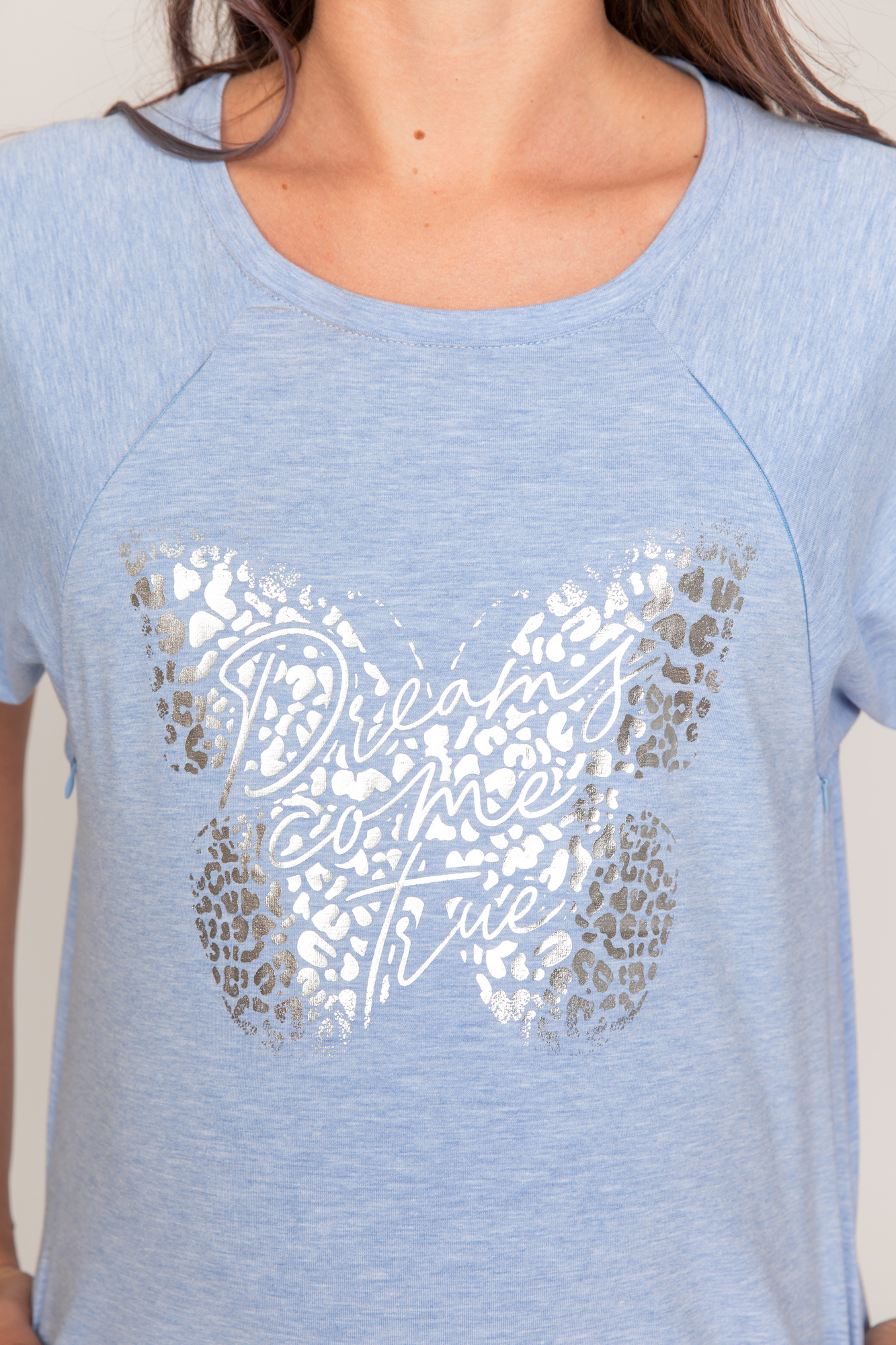 Платье-футболка для беременных и кормящих выполнена из высококачественного хлопкового полотна с добавлением эластана. Гипоаллергенный хлопок подходит абсолютно всем, с ним не нарушается кожное дыхание, легко происходит впитывание и испарение влаги. В такой одежде вы будете чувствовать себя комфортно и легко.. Особый крой платья обеспечит комфорт на всем протяжении беременности, а после родов скроет временные несовершенства фигуры. Диагональные потайные молнии позволят покормить малыша в любой ситуации.