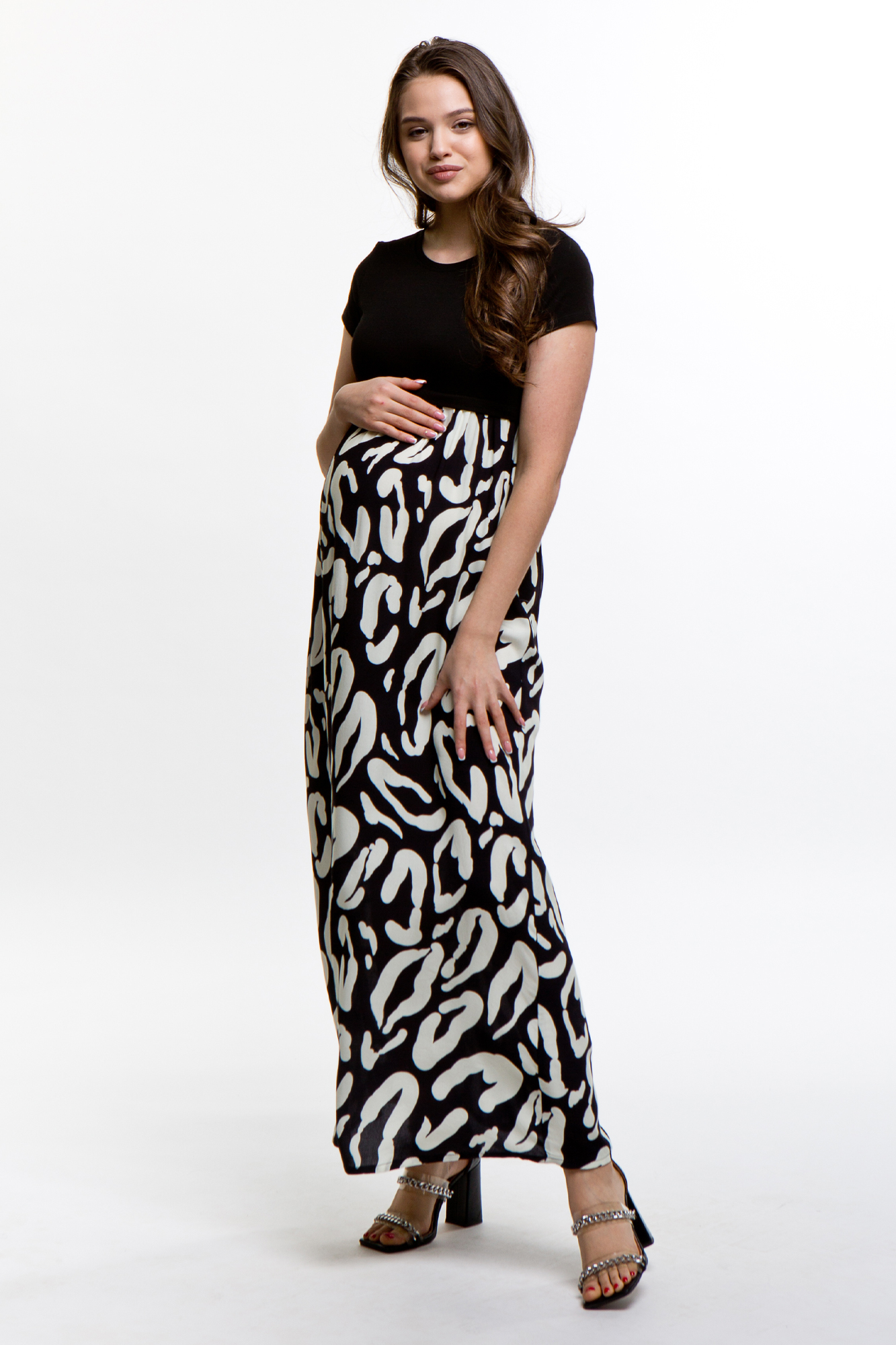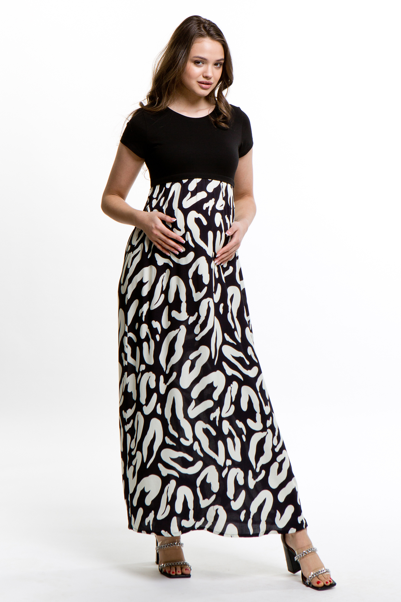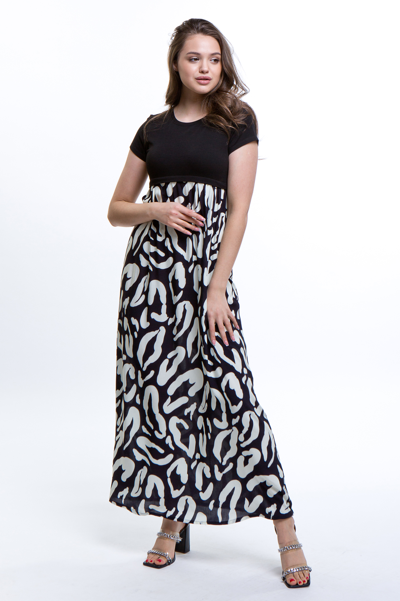 Стильное платье из комбинированных тканей для беременных и кормящих мам. Платье подходит для использования на всем протяжении беременности, а также в период грудного вскармливания. Секрет кормления – встречные потайные молнии - позволяет с комфортом покормить малыша в любой ситуации.