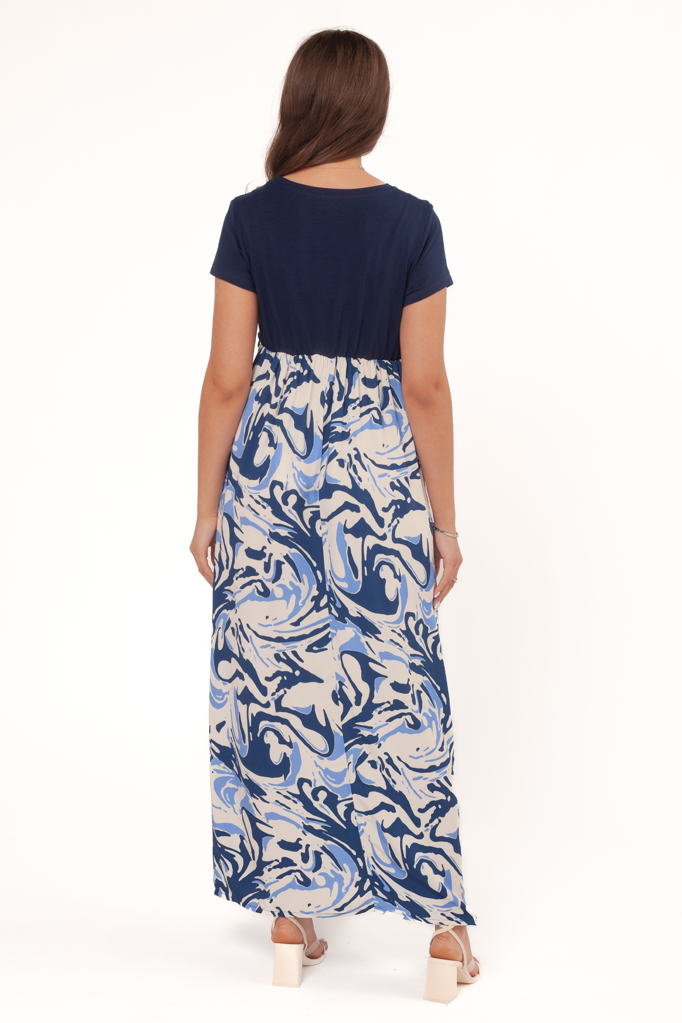 Стильное платье из комбинированных тканей для беременных и кормящих мам. Платье подходит для использования на всем протяжении беременности, а также в период грудного вскармливания. Секрет кормления – встречные потайные молнии - позволяет с комфортом покормить малыша в любой ситуации.
