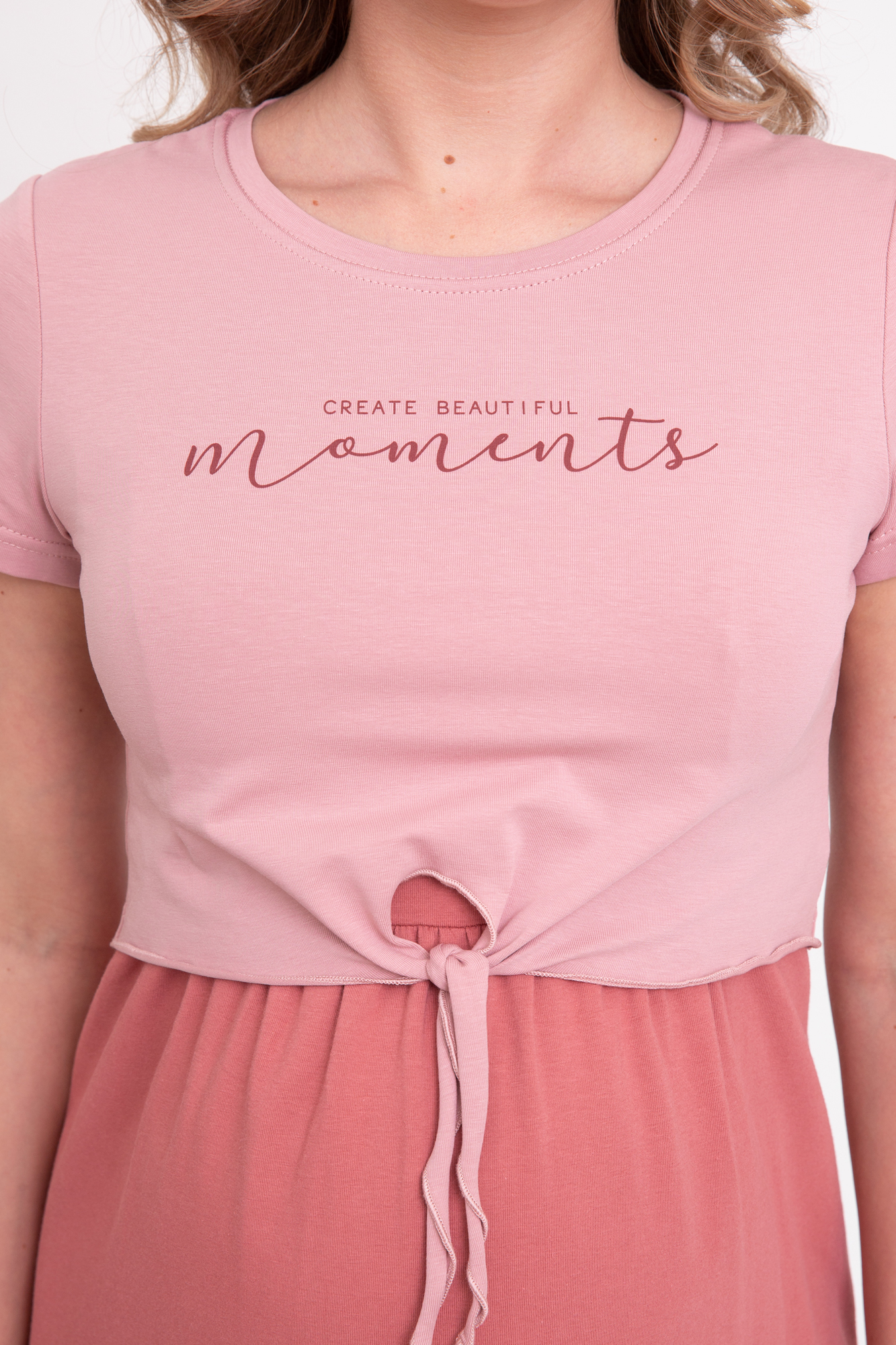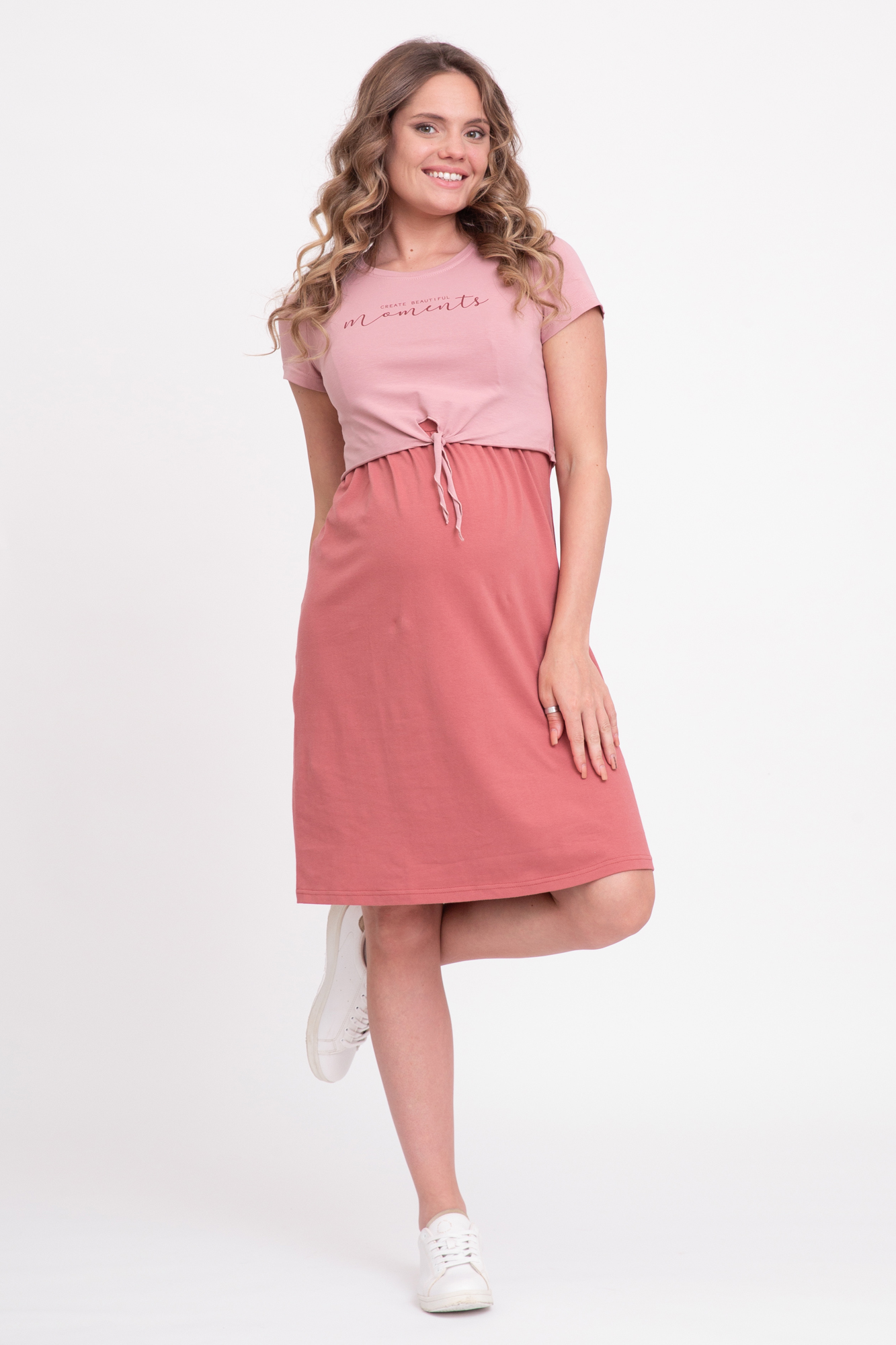 Трикотажное платье в стиле casual для беременных и кормящих. Короткий рукав, округлый вырез горловины. Эластичная ткань подарит свободу движений и комфорт в носке. Конструкция для кормления спрятана под верхней частью изделия. Благодаря этой конструкйии Вы сможете покормить малыша с комфортом в любой ситуации.