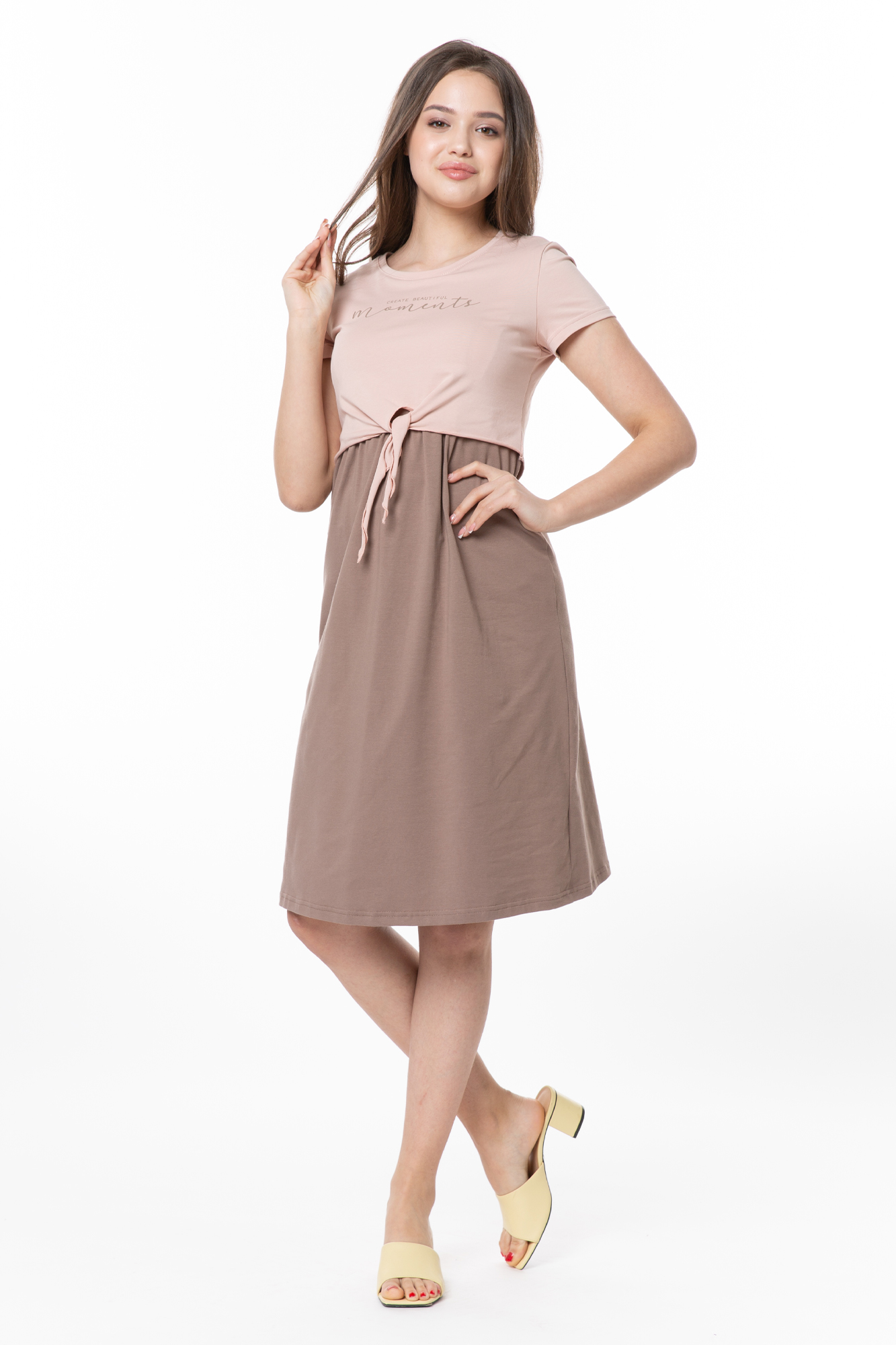 Трикотажное платье в стиле casual для беременных и кормящих. Короткий рукав, округлый вырез горловины. Эластичная ткань подарит свободу движений и комфорт в носке. Конструкция для кормления спрятана под верхней частью изделия. Благодаря этой конструкйии Вы сможете покормить малыша с комфортом в любой ситуации.