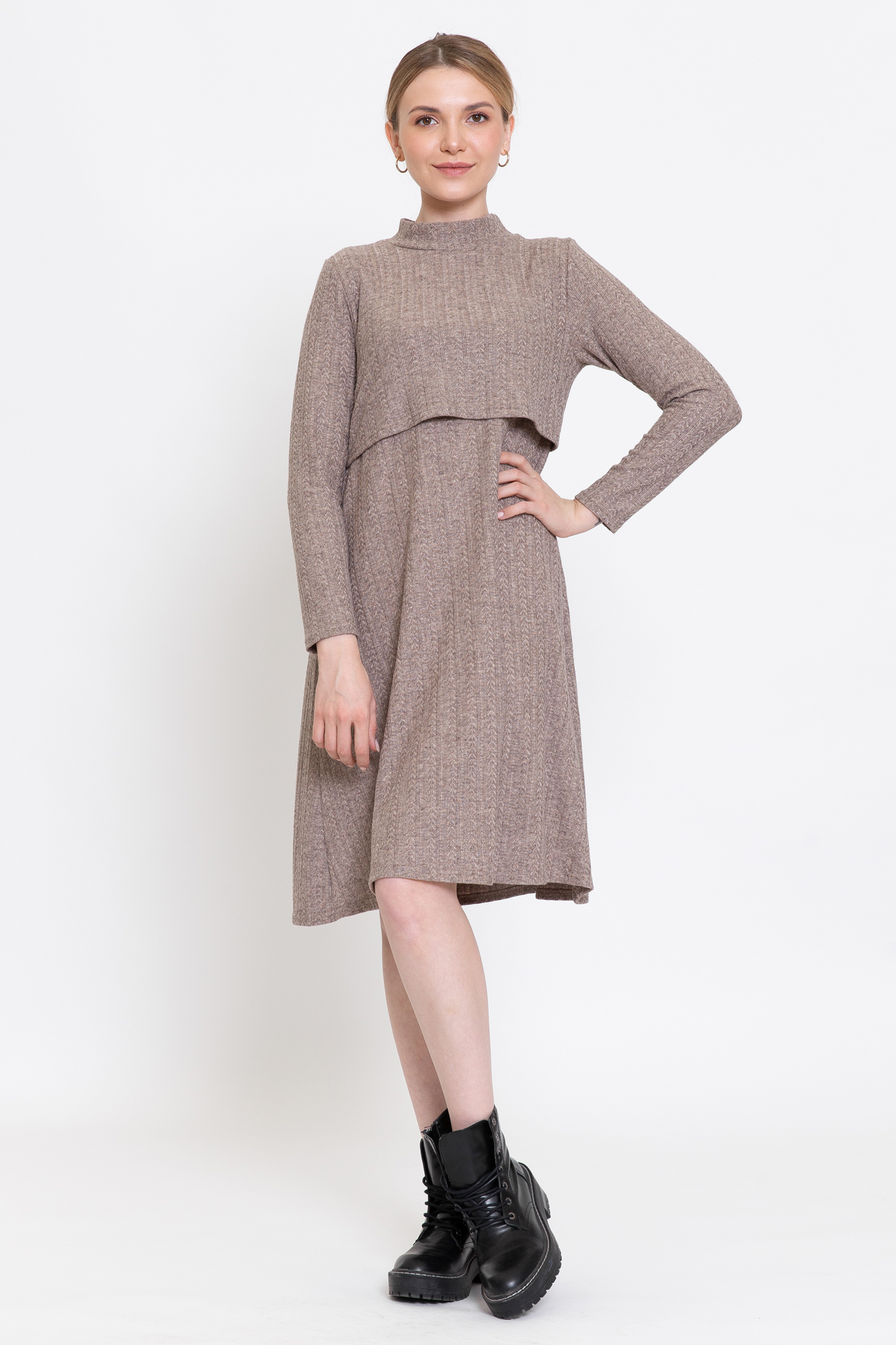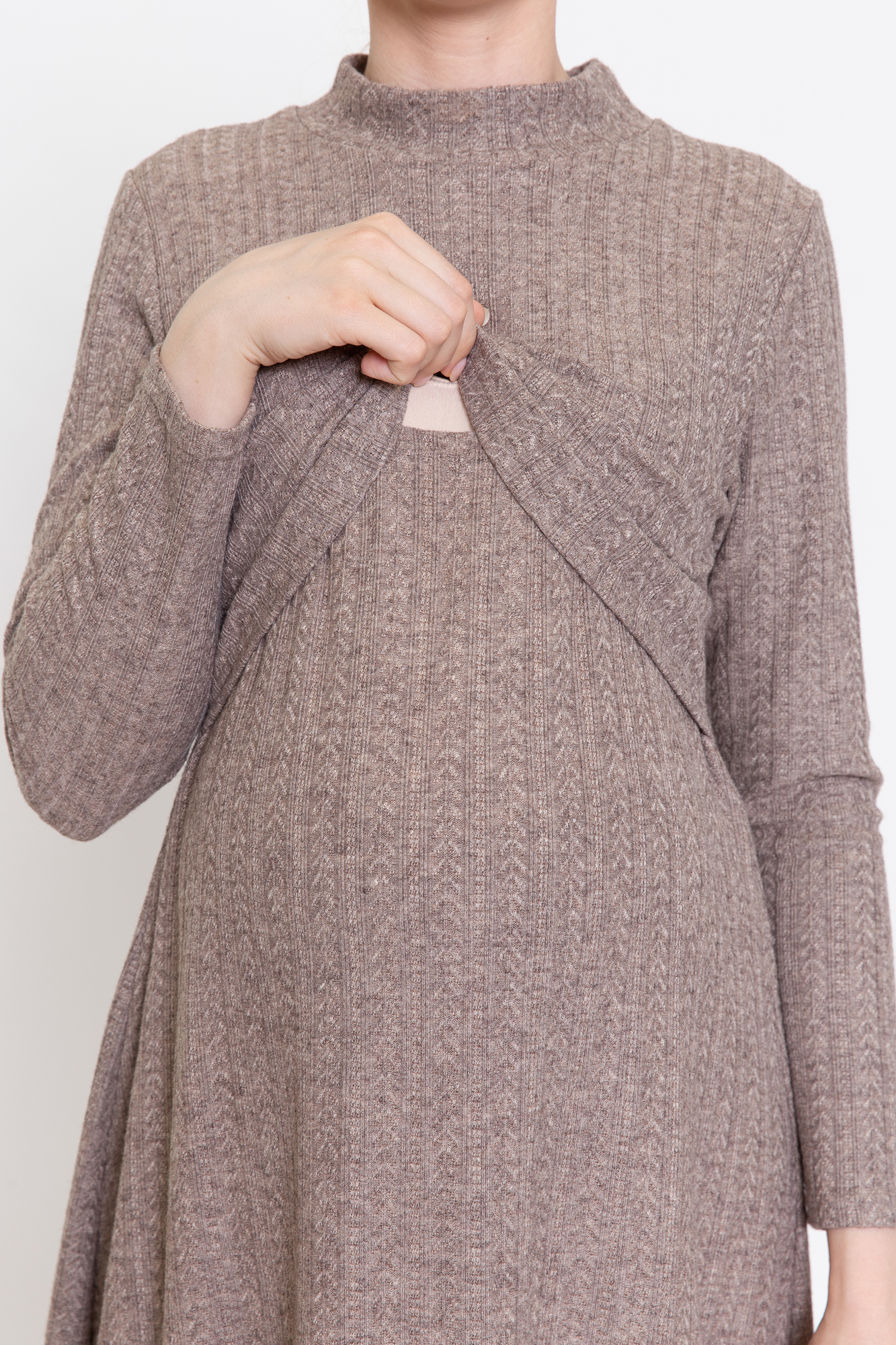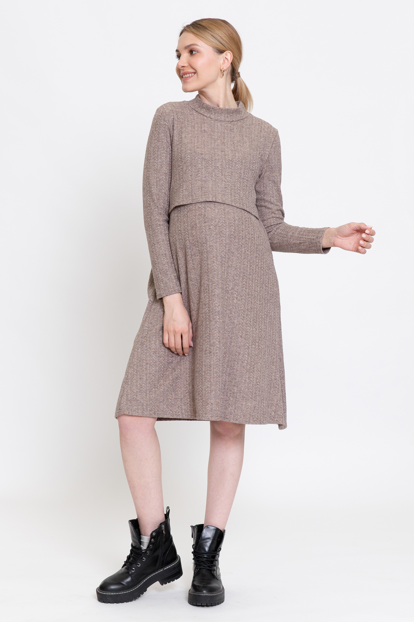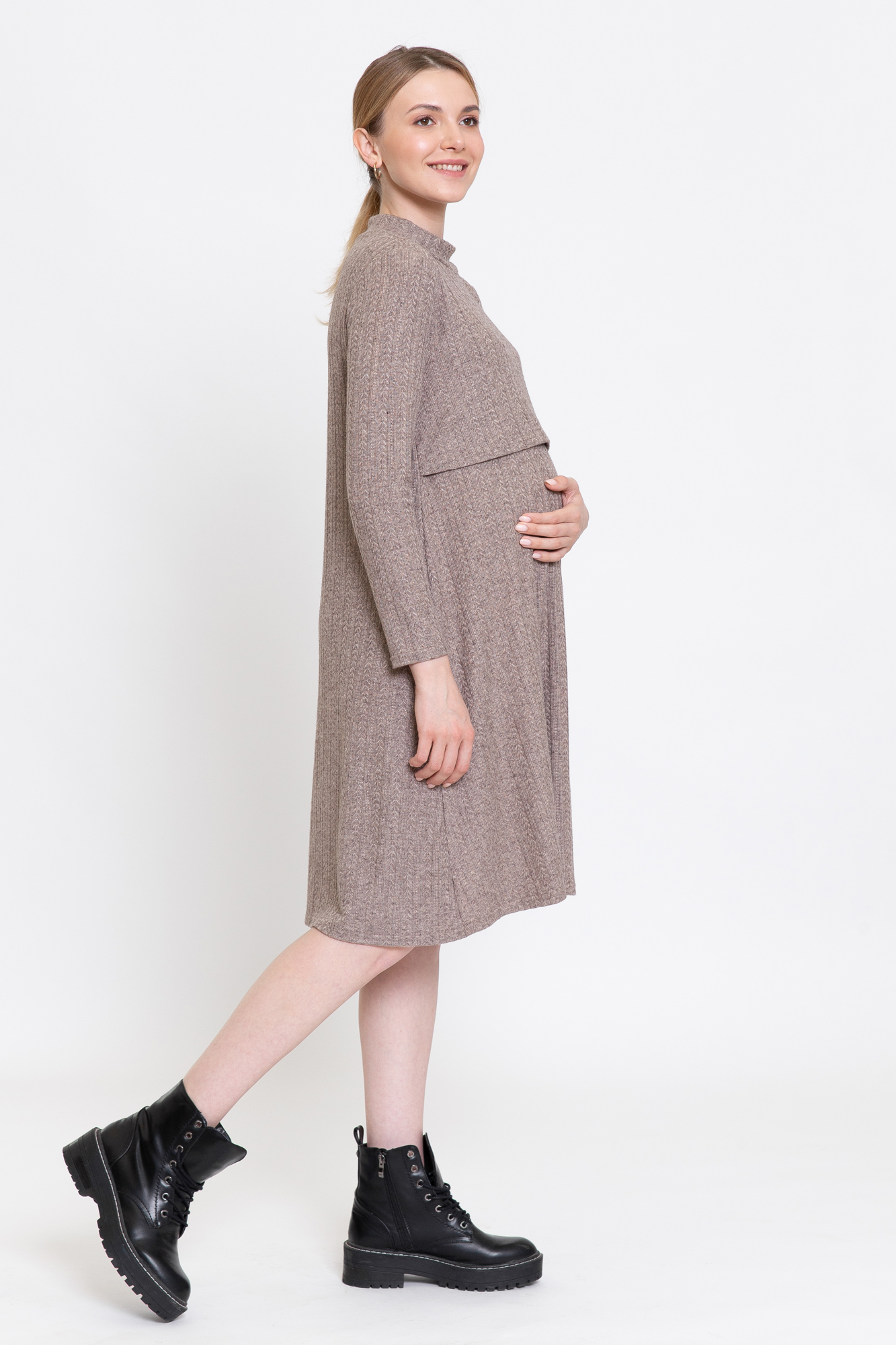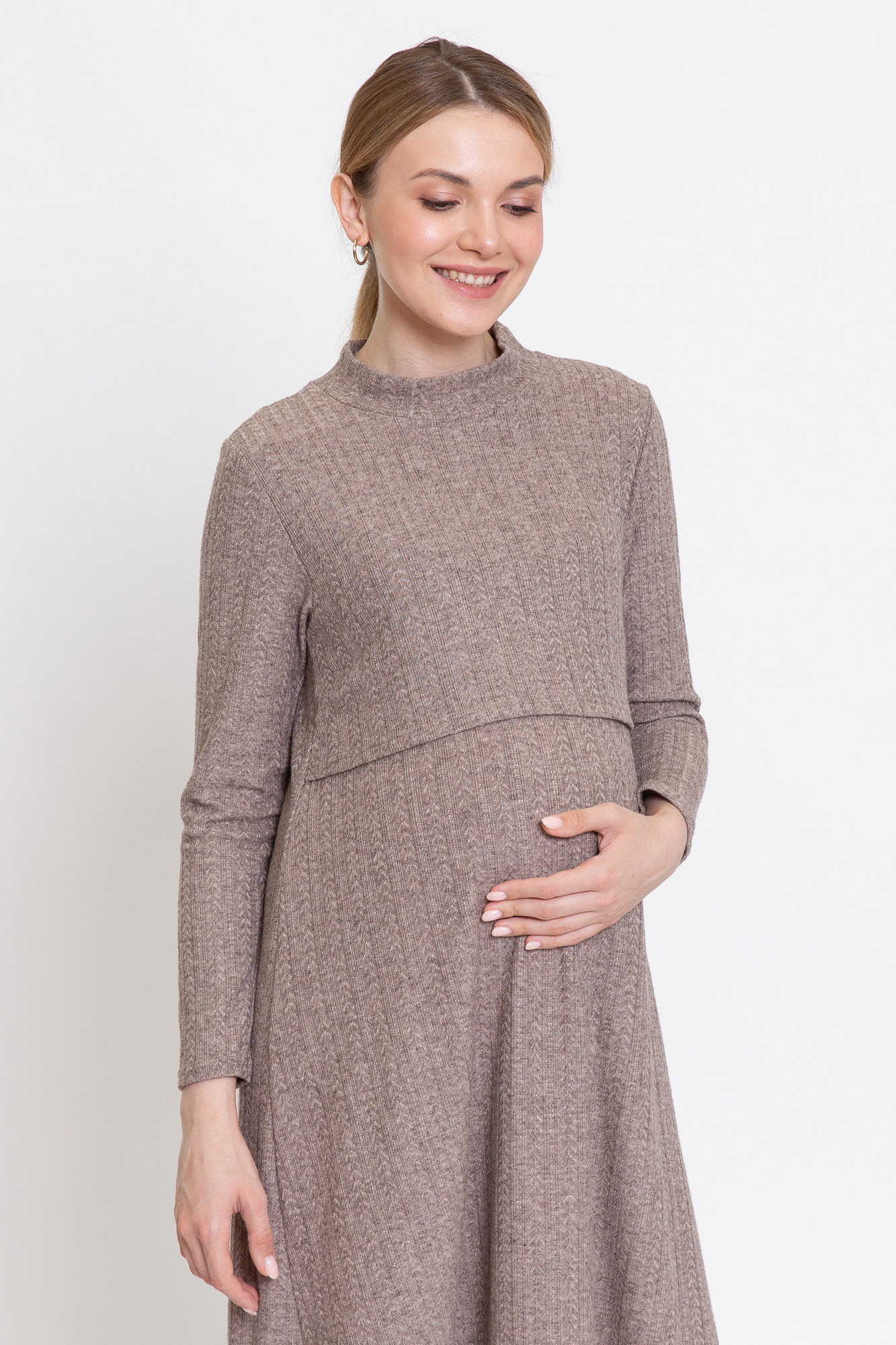 Теплое вязаное платье для будущих мам. Детали: воротник-стойка, приталенный крой и практичная длина. Модель подчеркивает женственный силуэт. Идеальная посадка на любом сроке беременности и после нее. Специальная конструкция позволит покормить малыша с комфортом в любой ситуации.