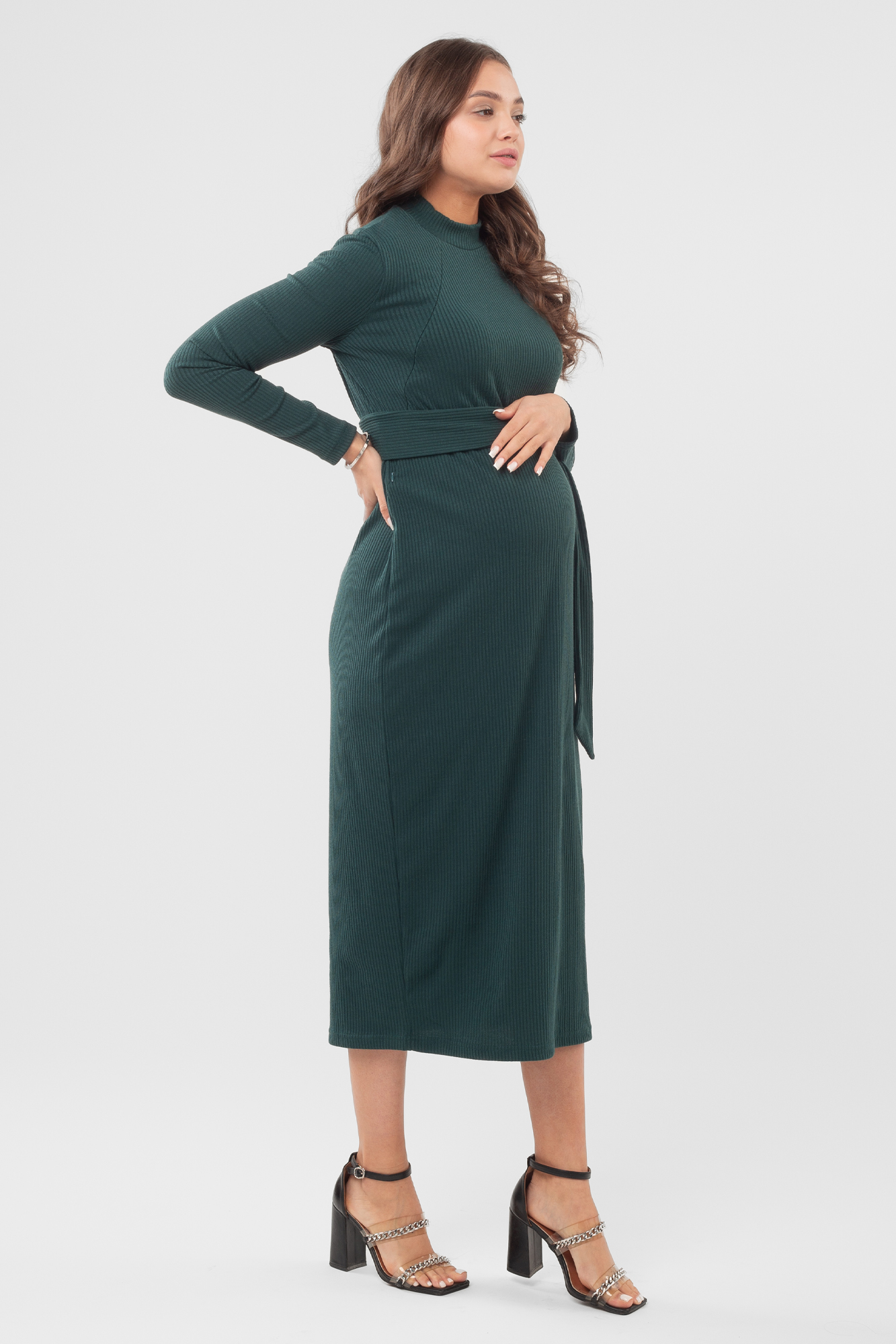 Платье для беременных и кормящих 15943 темно-зеленый