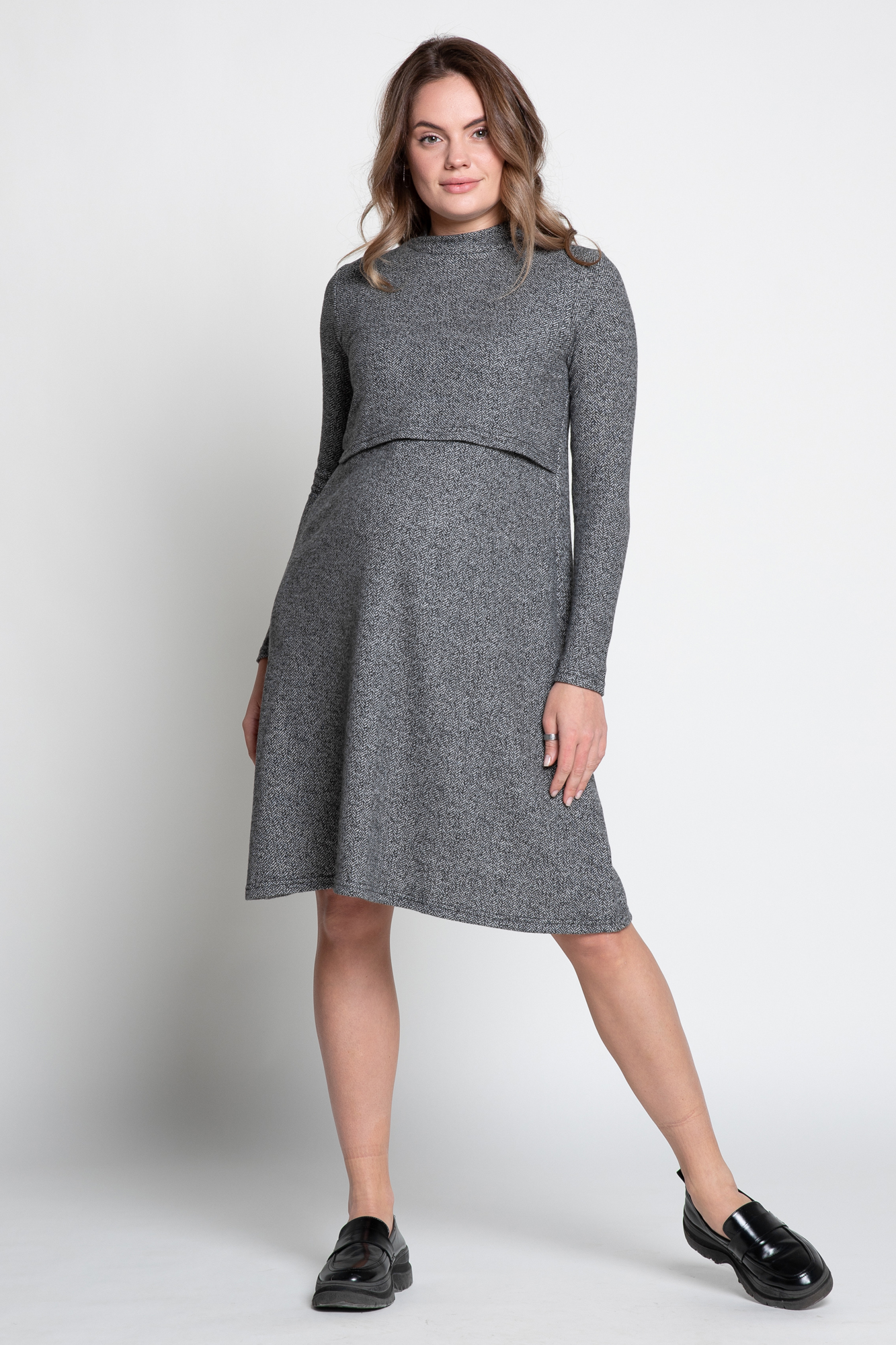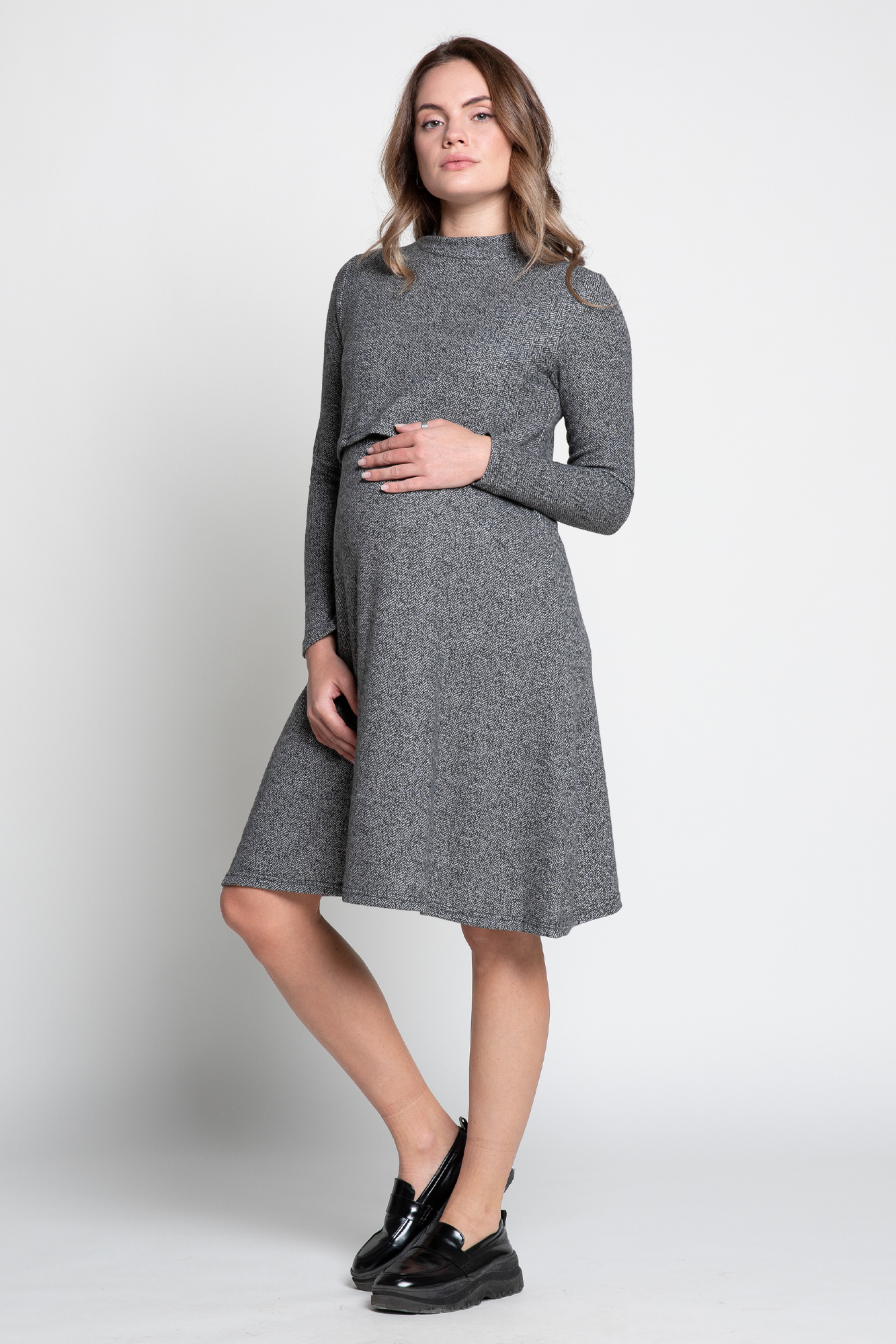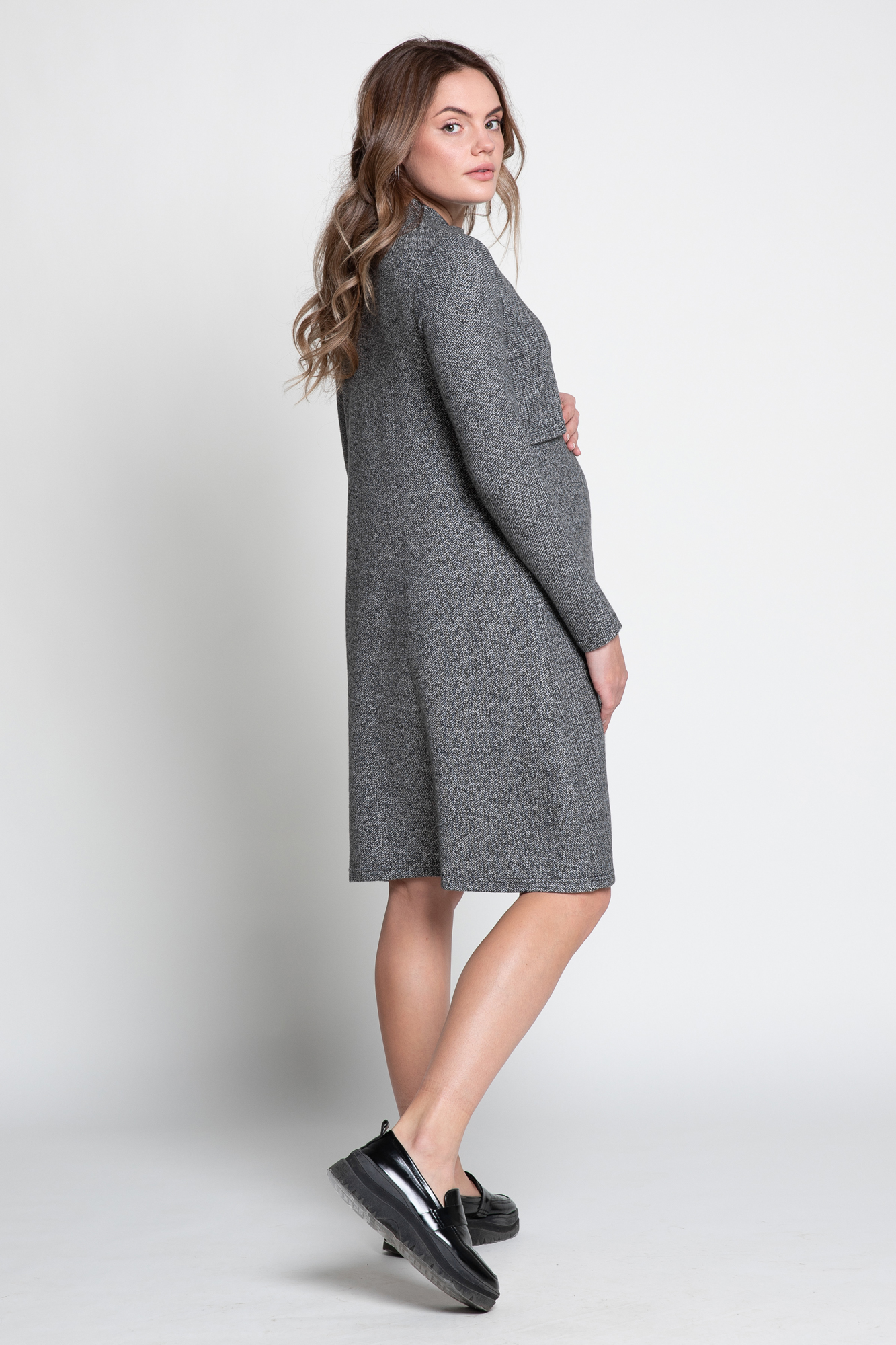 Теплое платье для будущих мам. Детали: воротник-стойка, приталенный крой и практичная длина. Модель подчеркивает женственный силуэт. Идеальная посадка на любом сроке беременности и после нее. Специальная конструкция позволит покормить малыша с комфортом в любой ситуации.
