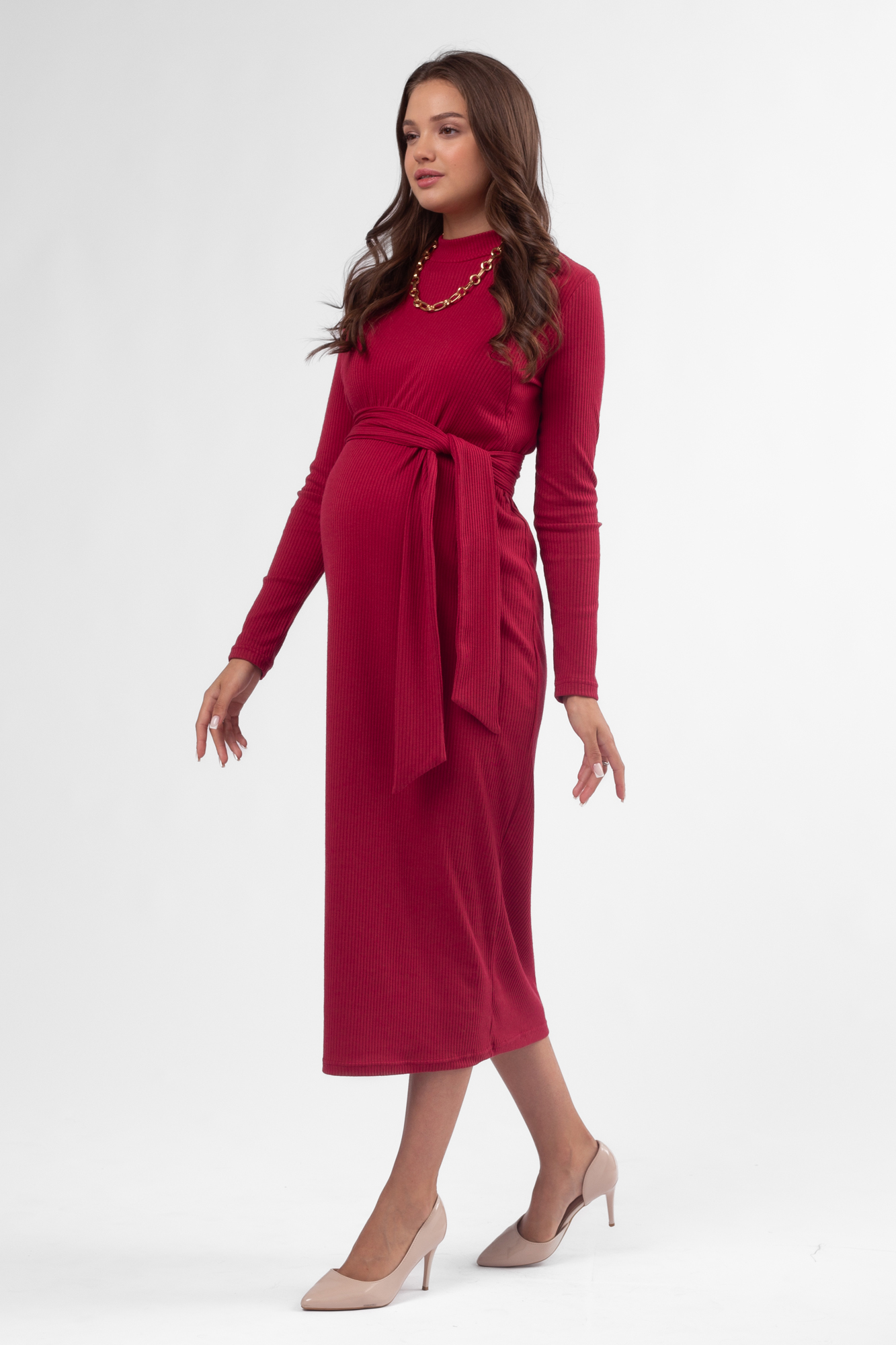 Стильное платье с поясом для будущих и кормящих мам. Выполнено из трикотажа-лапши, приятного к телу. Эластичная ткань подарит свободу движения и комфорт в носке. Конструкция для кормления – диагональные потайные молнии. В зависимости от случая, можно дополнить образ яркими аксессуарами. Великолепно сочетается с классической и спортивной обувью. Удобно и привлекательно на любом сроке беременности, а также после родов.