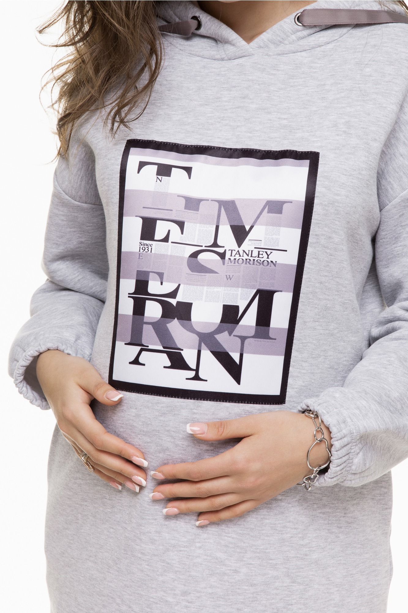 Платье в спортивном стиле для будущих мам выполнено в виде удлиненного худи. На модели вместительный капюшон с кулисками, стойкий не тускнеющий принт. По низу изделия предусмотрена тесьма с фиксатором – стянув ее, вы получите платье-баллон, защищающее Вас от ветра. Свободный крой платья позволяет носить его до последних сроков беременности. Мягкое уютное платье станет любимой вещью в Вашем гардеробе!