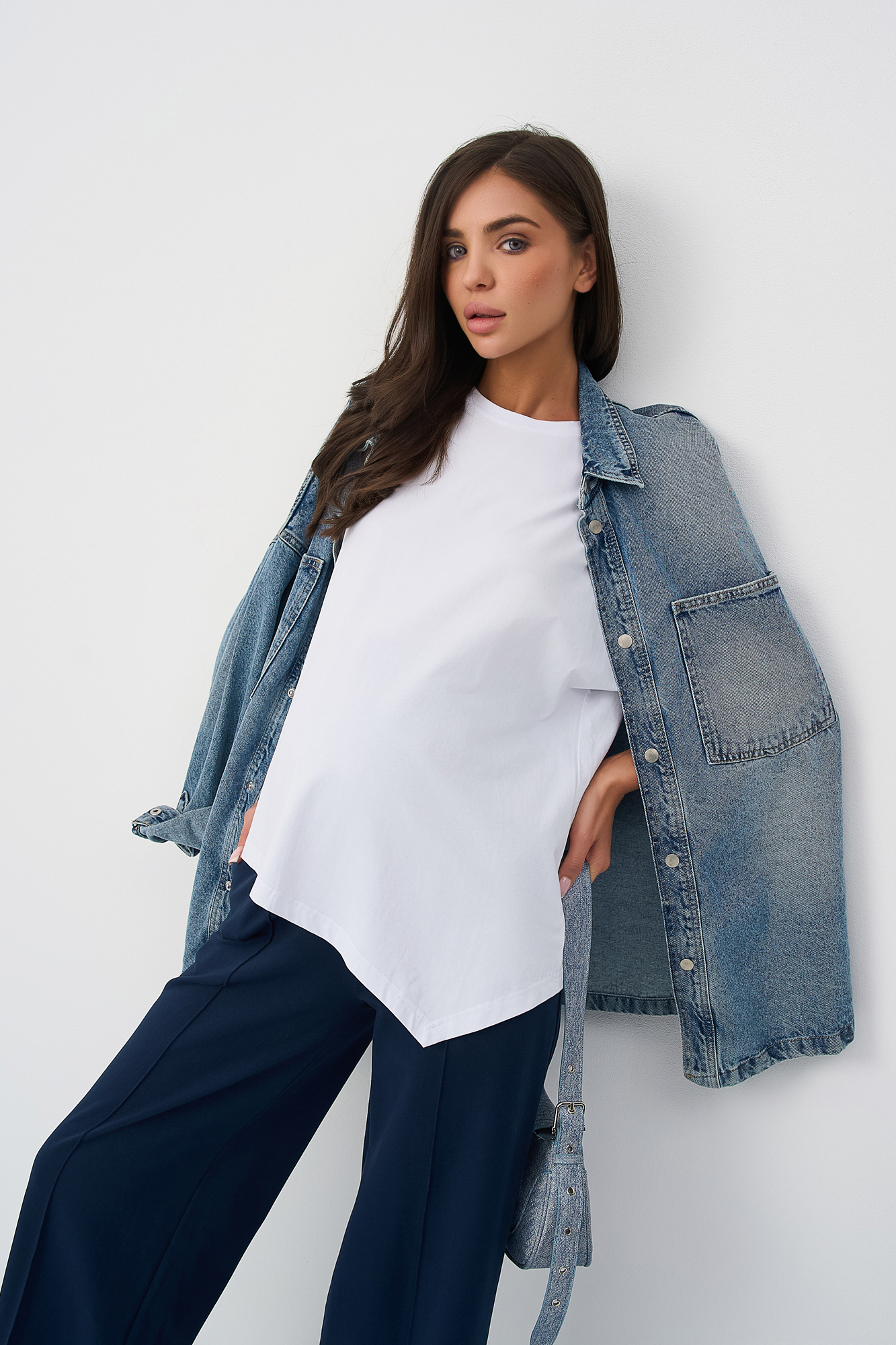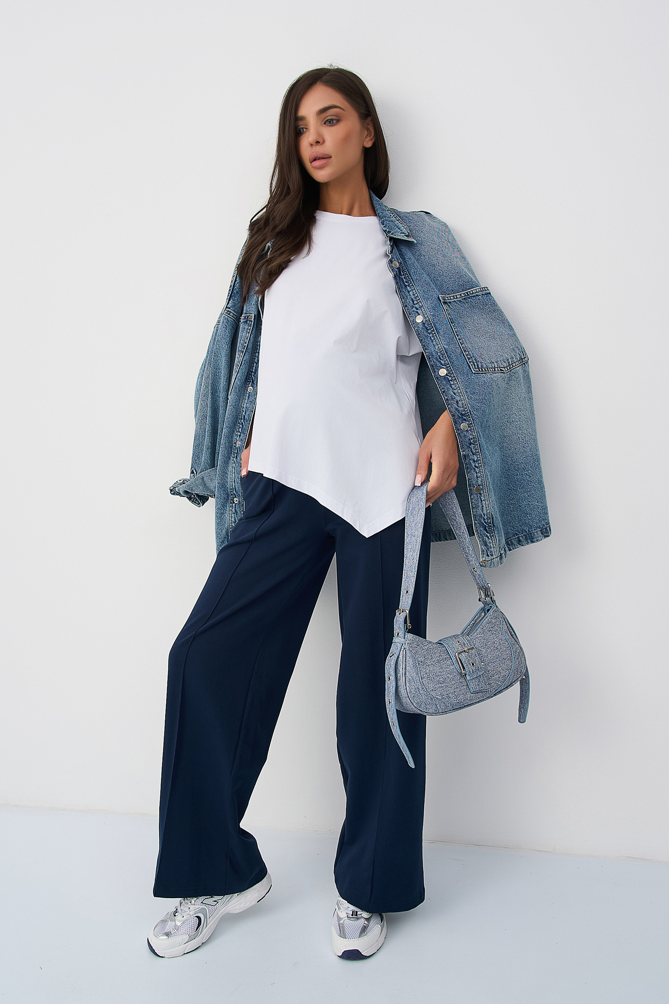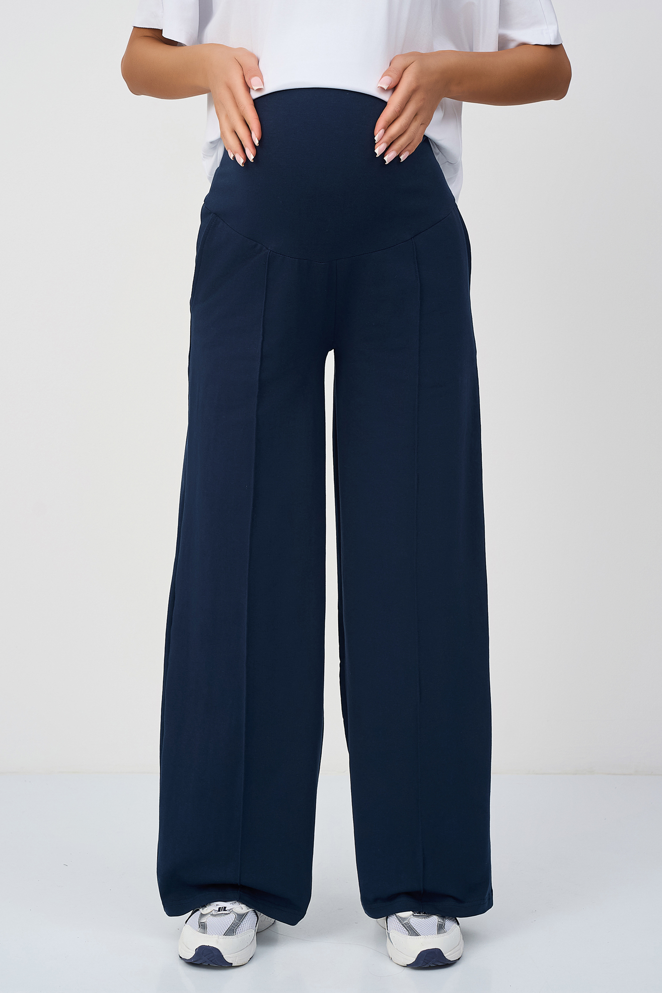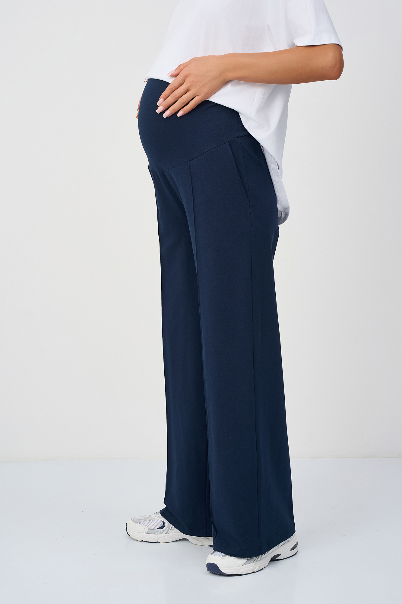 Костюм для беременных сшит из футера на основе натурального хлопка премиум качества. Такой трикотажный костюм станет отличным обновлением летнего гардероба будущей мамы. Небольшое включение эластана в состав ткани делает ее более износостойкой. Футболка из кулирки оверсайз свободного, чуть приталенного кроя и коротким рукавом. Своодные брюки палаццо с высокой посадкой оснащены широким эластичным поясом на резинке, который выполняет роль мягкого бандажа. Высокий пояс дополнен скрытой регулировкой объема на пуговице, который позволяет носить штаны на протяжении всего срока беременности. Фасон брюк классический прямой, крой широкий. Обе вещи в комплекте брючного костюма идеально сочетаются друг с другом, но в то же время достаточно самобытны, чтобы комбинировать их с другими вещами весной и летом. Стильный костюм подходит девушкам и женщинам больших размеров для дома.