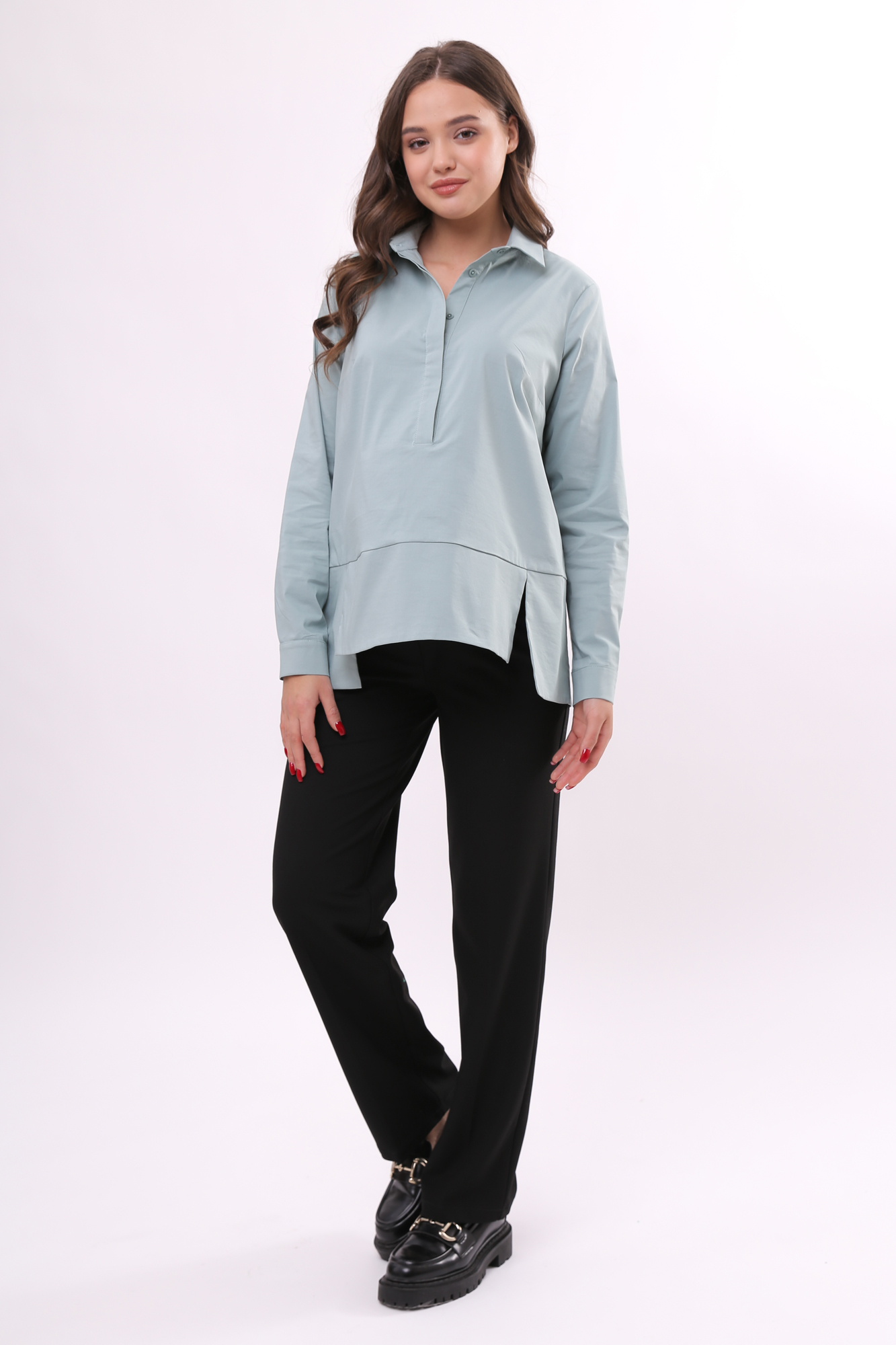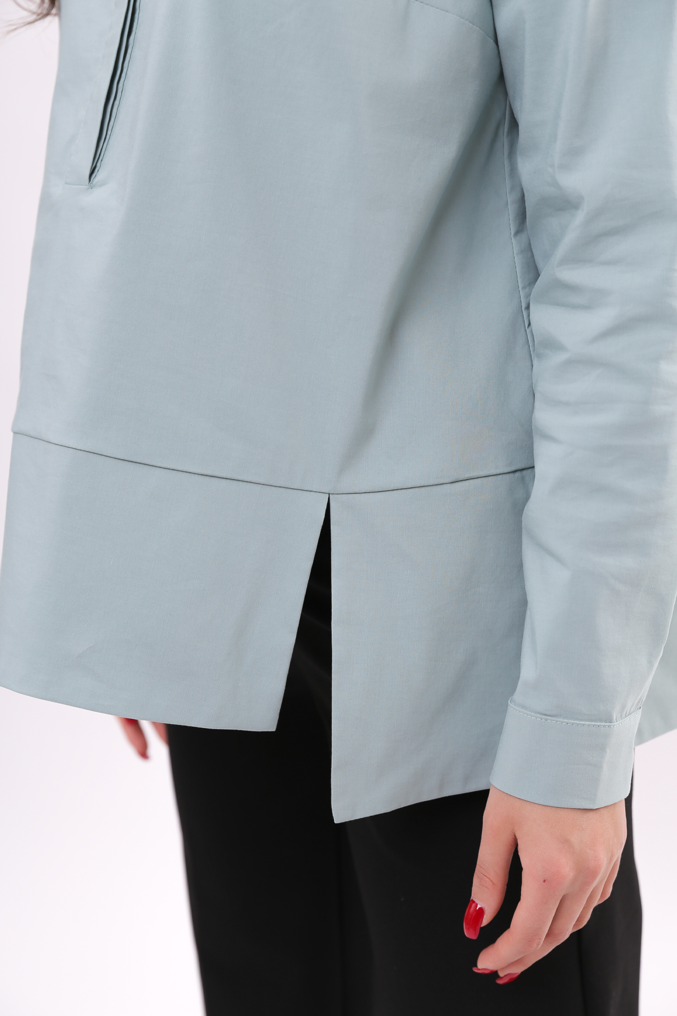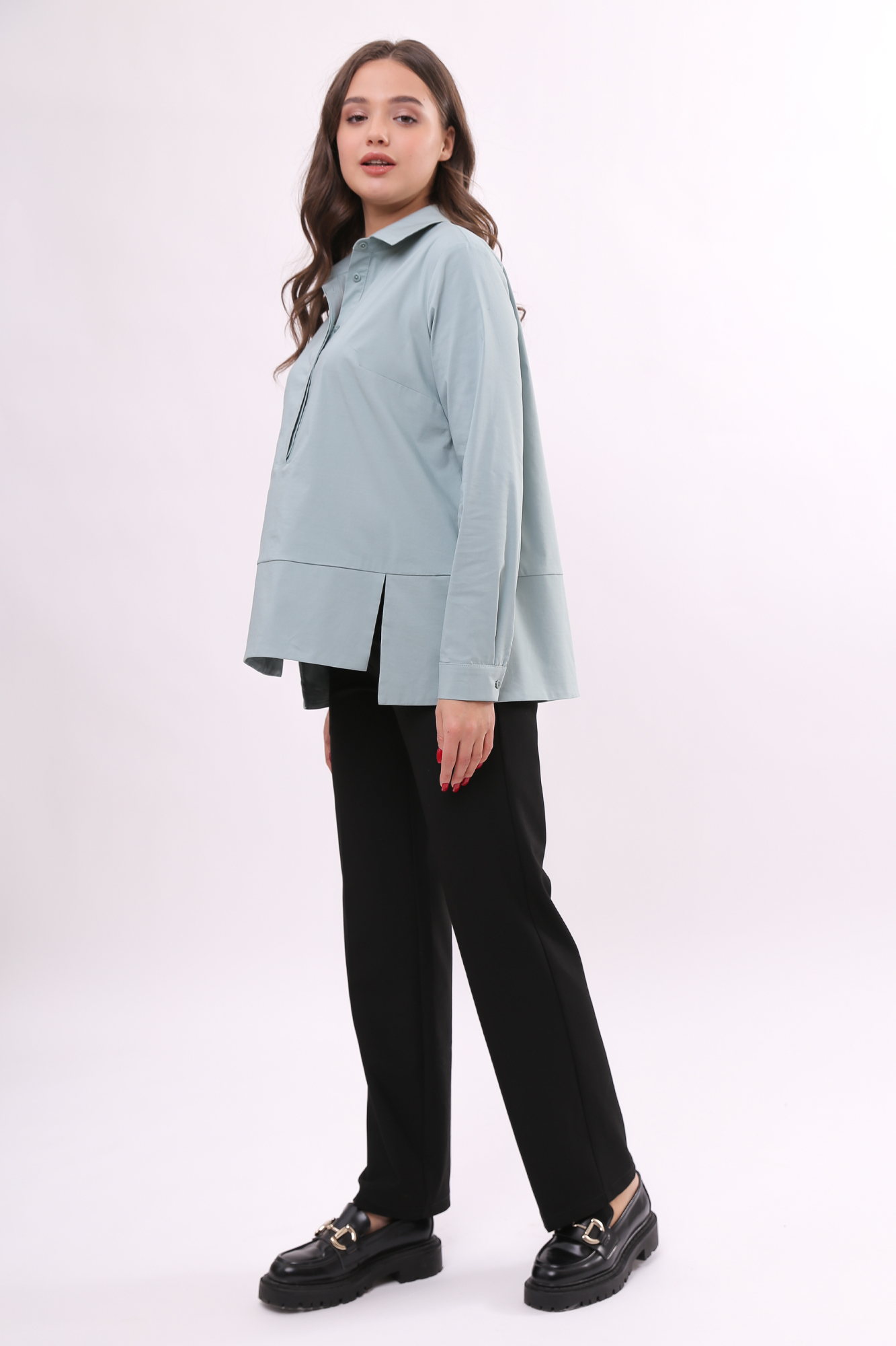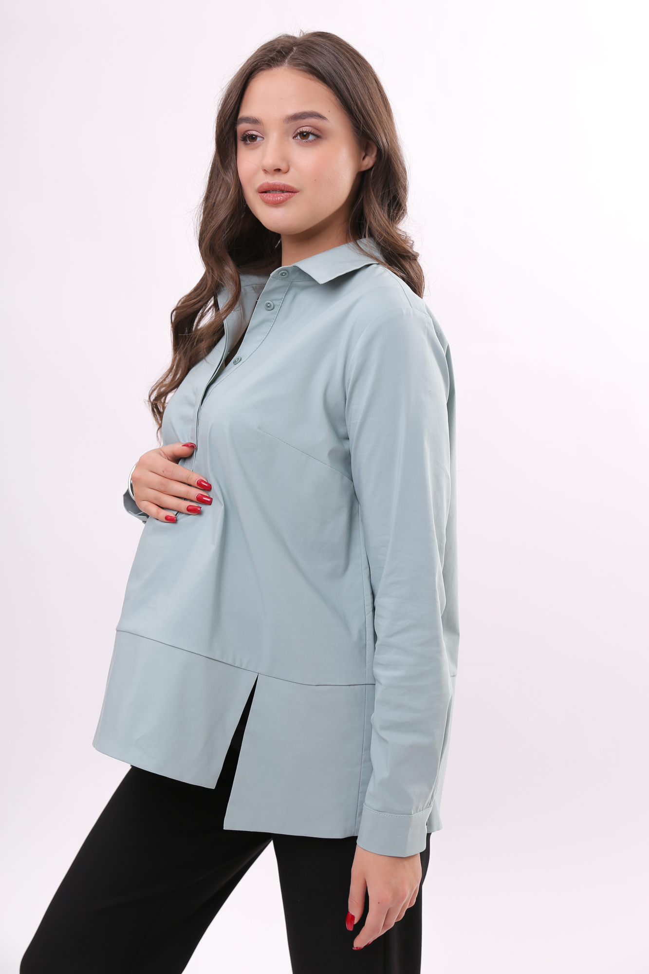 Стильная рубашка для беременных выполнена из высококачественного хлопкового полотна. С ним не нарушается кожное дыхание, легко происходит впитывание и испарение влаги. В такой одежде вы будете чувствовать себя комфортно и легко. Особый крой позволяет носить изделие на всем протяжении беременности, а после родов скроет временные несовершенства фигуры. Модель свободного силуэта, с отложным воротником, скрытой застежкой на пуговицы, длинным рукавом на манжете, асимметричным низом, разрезами по бокам изделия. Легко комбинируется с джинсами, брюками, юбками. Отличный вариант для будущих мам, работающих в офисе.