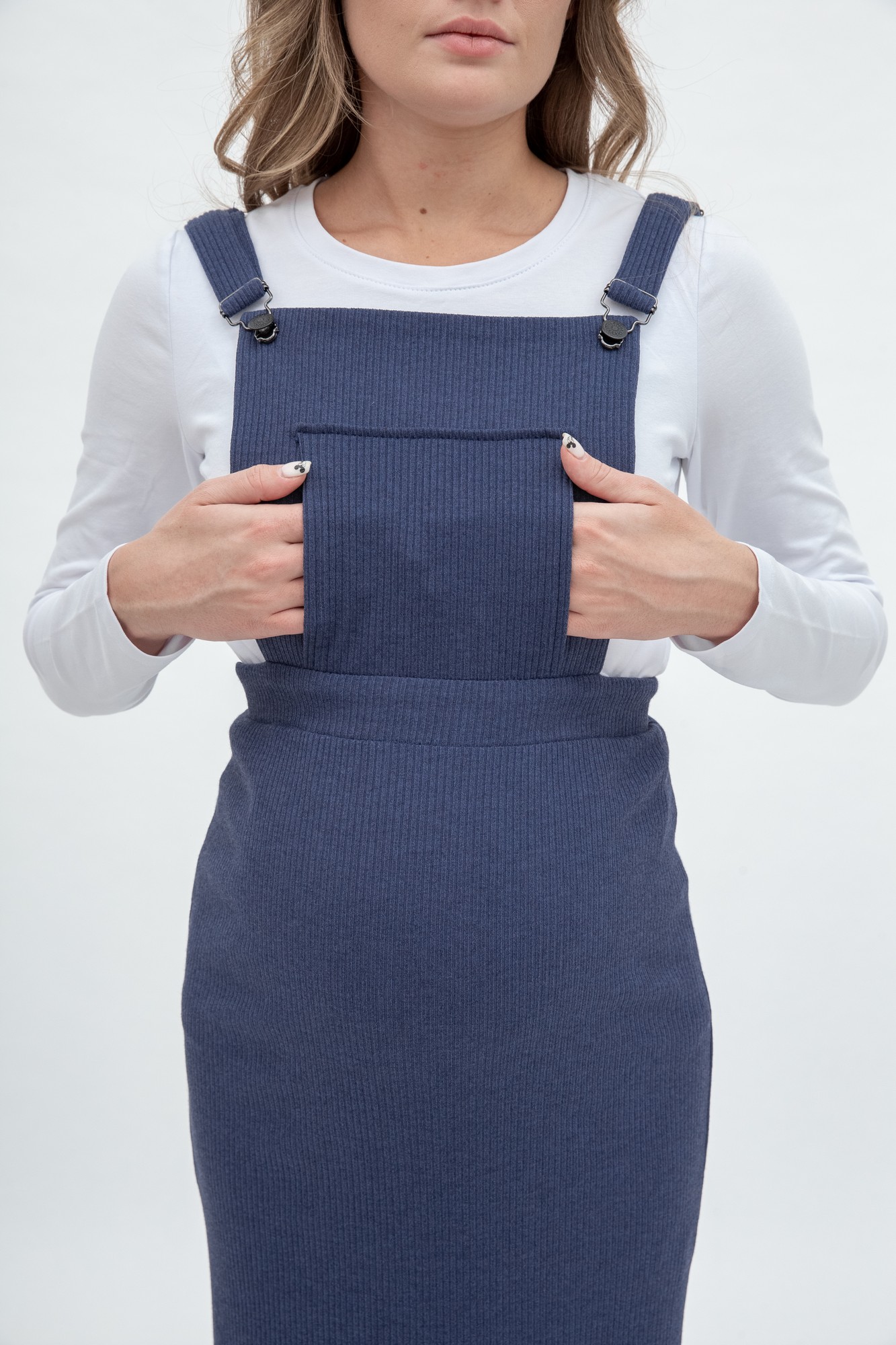 Удобный и комфортный, стильный сарафан для будущих мам. Модель выполнена из мягкой трикотажной ткани. Деталь: нагрудный карман, лямки отстегиваются. Это отличный вариант для межсезонья, удачно сочетается с блузками и водолазками.