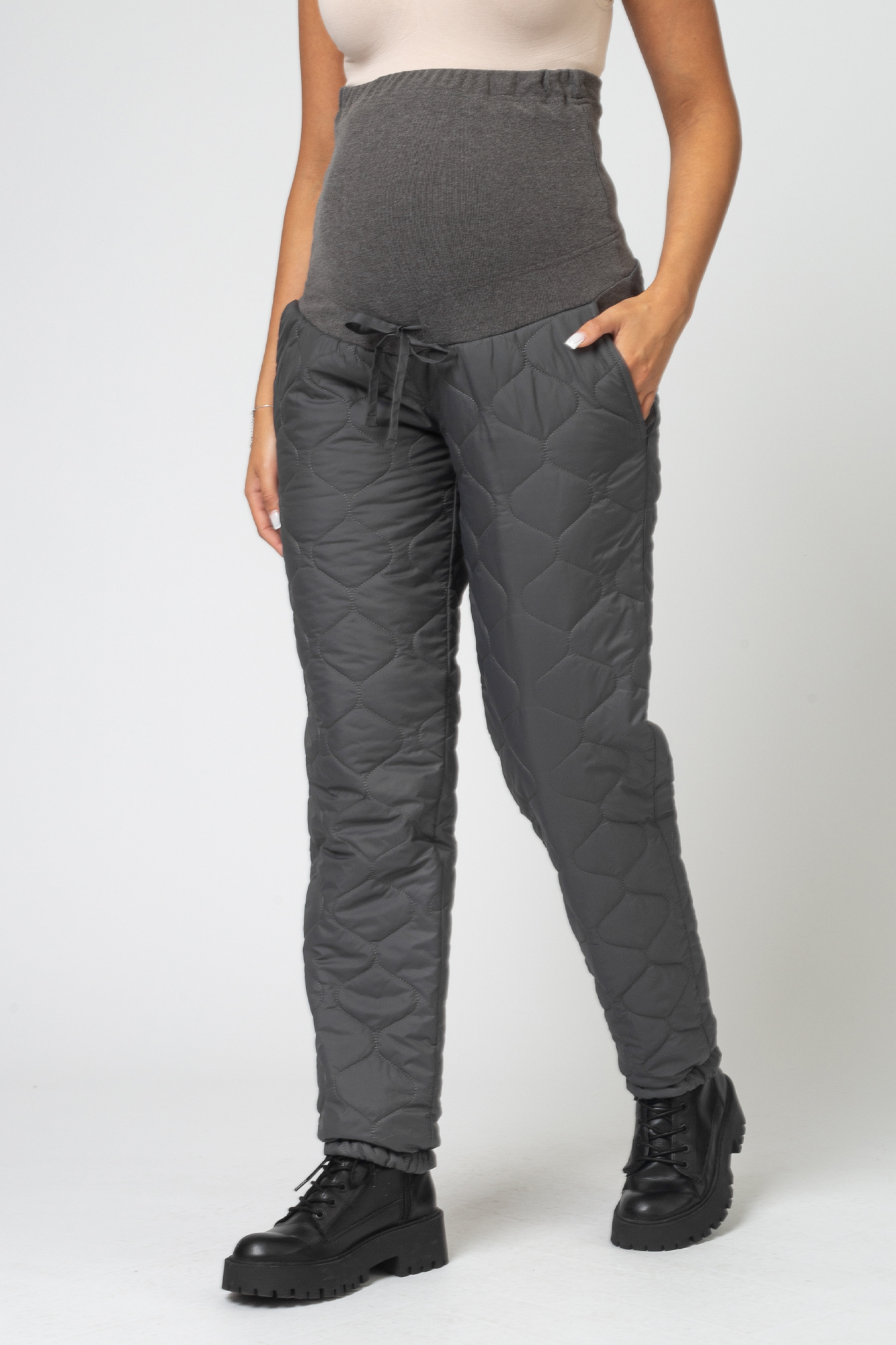 Теплые болоневые брюки для беременных пригодятся будущей маме на протяжении всего зимнего сезона. Для их пошива используется специальная курточная ткань на основе полиэстера. Материал обладает ветрозащитными свойствами, влагонепроницаемостью, легко очищается от грязи. В качестве утеплителя выбран легкий синтепон. Утепленные штаны с высокой посадкой дополнены эластичным цельновязанным поясом из плотного трикотажа. Эта деталь обеспечивает мягкую поддержку растущему животику, а скрытая регулировка объема позволяет носить брюки на любом месяце беременности и после родов. Фасон штанов джоггеры предусматривает наличие широких манжет на штанинах, которые создают дополнительную защиту от ветра и холода. Брюки подойдут для ежедневных прогулок, путешествий, занятий спортом.