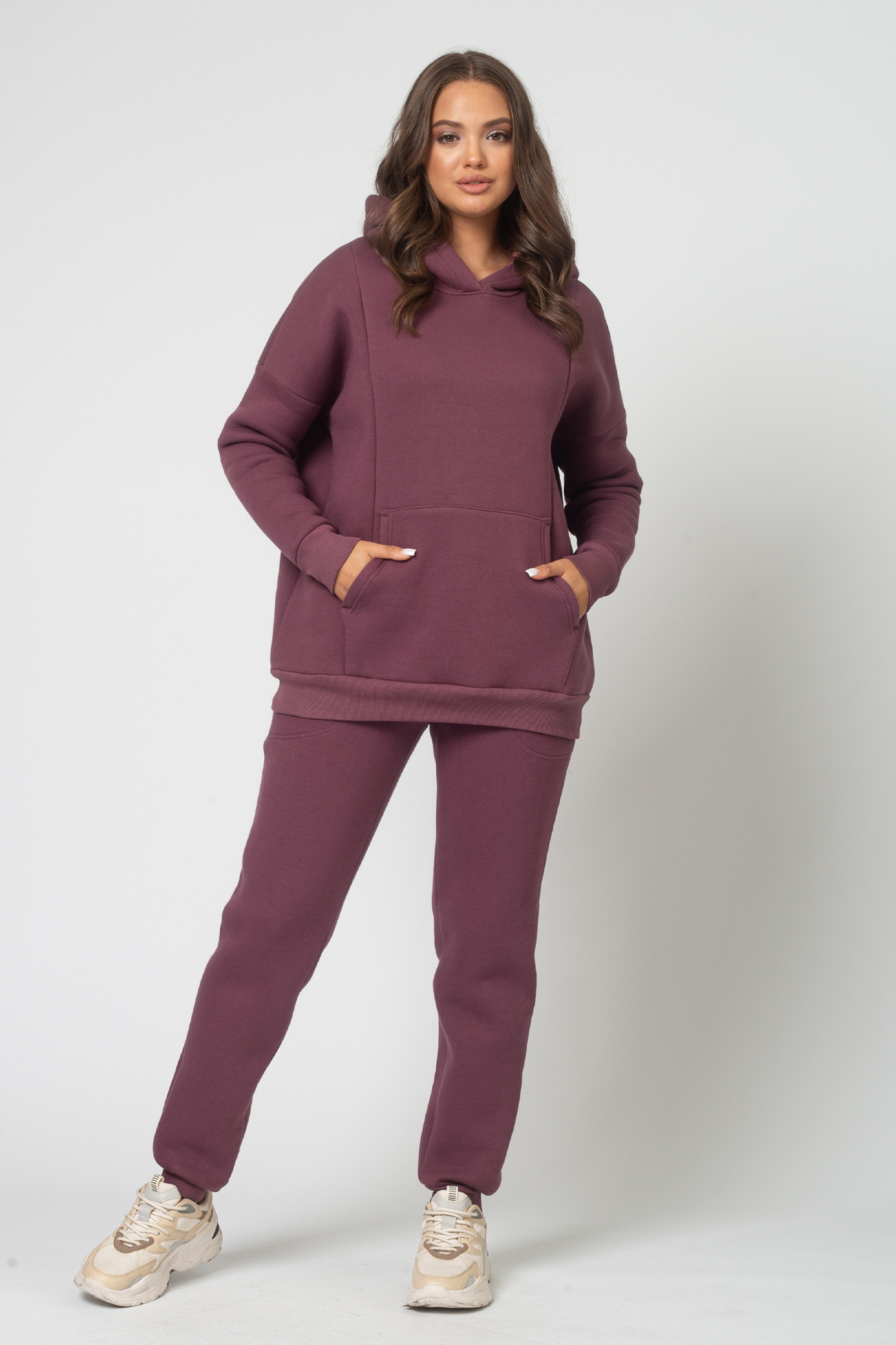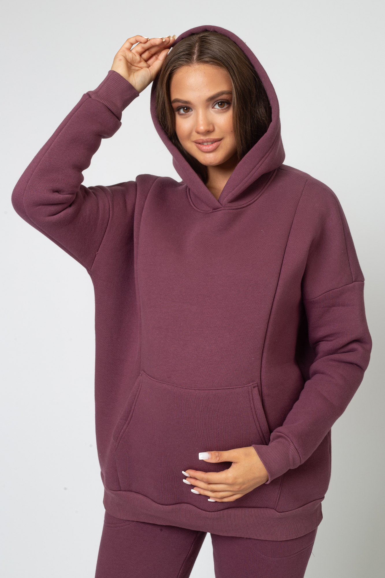 Утепленный спортивный костюм для беременных и кормящих выполнен из высококачественного трехниточного футера с начесом. Стильное теплое худи для будущих мам согреет в прохладную погоду. Особый крой позволяет носить изделие на всем протяжении беременности и после нее. Благодаря диагональным потайным молниям Вы сможете покормить малыша с комфортом в любой ситуации. Брюки с эластичным поясом рассчитаны на любой срок беременности, не сдавливают и поддерживают растущий животик. Объем регулируется с помощью перфорированной резинки, перестегивающейся на пуговицу, продетой в пояс брюк. Костюм подходит для спорта, для прогулок и просто в качестве домашней одежды.