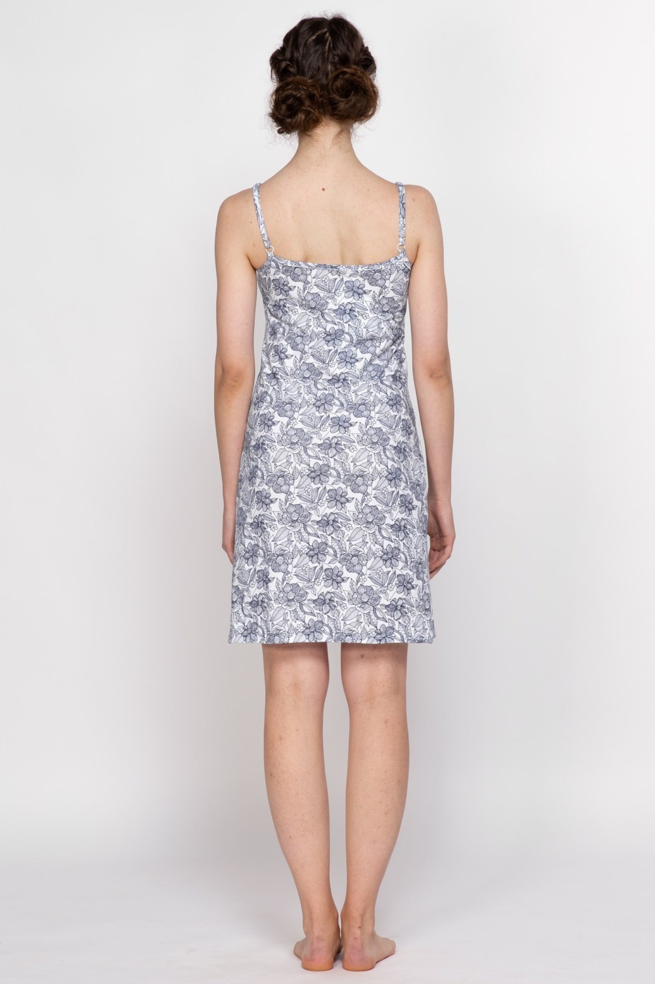 Нежная хлопковая сорочка для будущих и кормящих мам. Сорочка на тонких бретелях, «секрет» для кормления – клипса на бретели. Благодаря особому крою изделие можно носить на всем протяжении беременности и после нее.