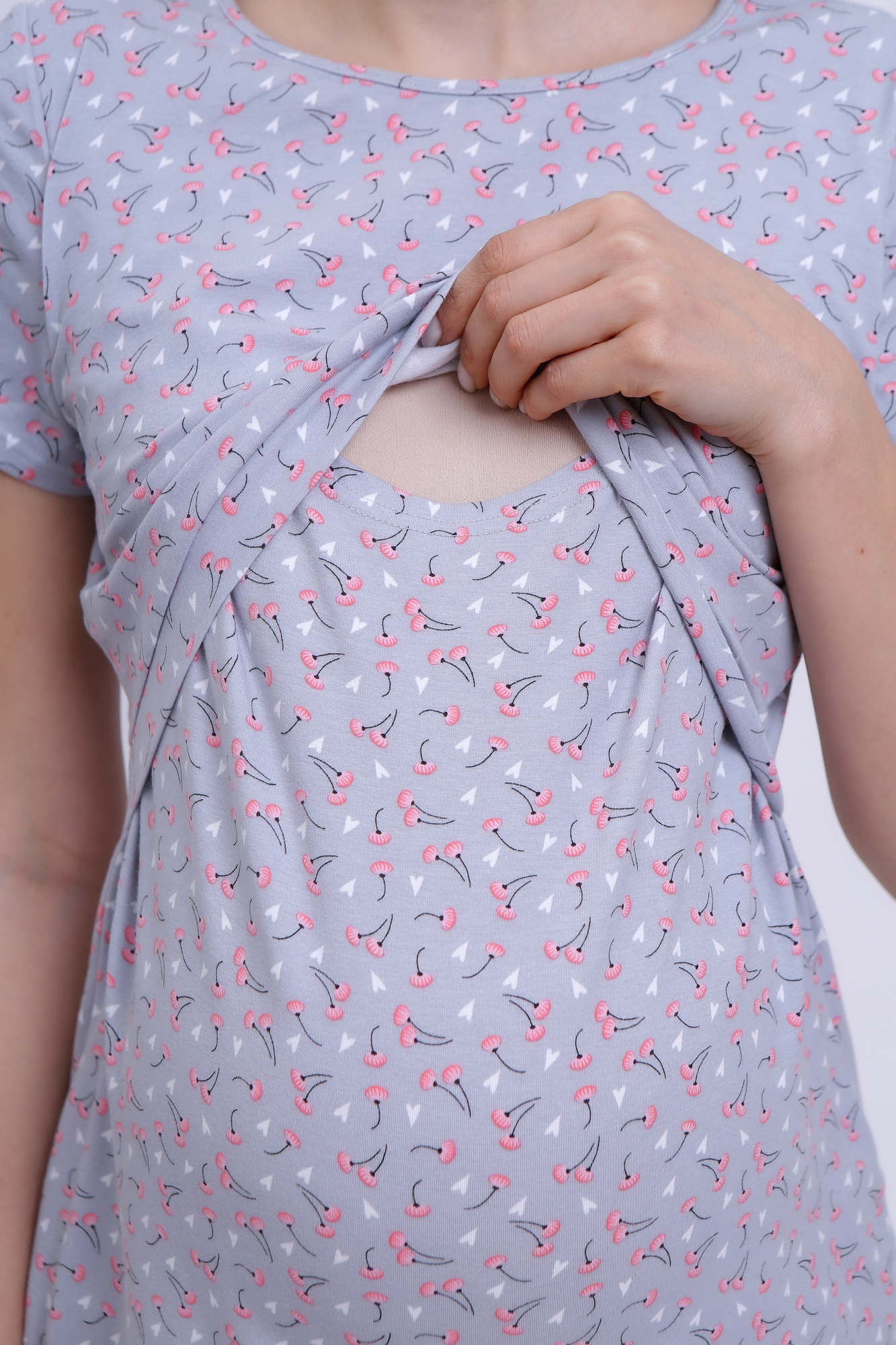 Ночная сорочка с коротким рукавом для беременных и кормящих мам выполнена из мягкого хлопкового трикотажа. Специальная конструкция обеспечивает максимальный доступ к груди во время кормления. Универсальный крой: идеальная посадка на любом сроке беременности и после родов.