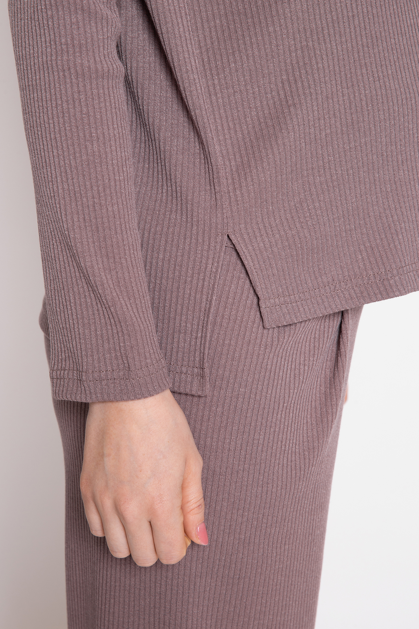 Оригинальный костюм в рубчик для беременных. Костюм состоит из джемпера и брюк. Джемпер с округлым вырезом горловины, длинным рукавом, заниженной линией плеча, разрезами по бокам изделия. Брюки-кюлоты с эластичной высокой вставкой-бандажом рассчитаны на весь период беременности. Идеальное сочетание стиля и комфорта!
