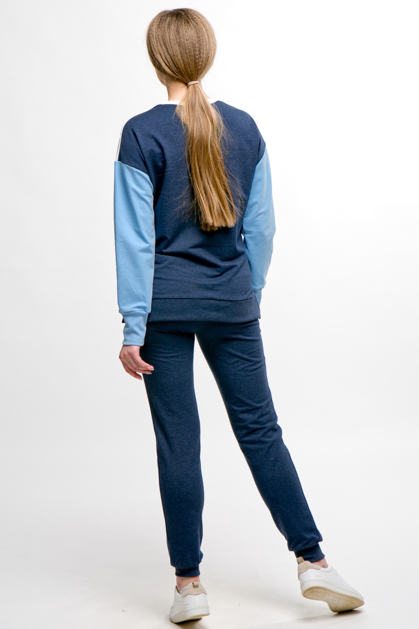 Модный спортивный костюм из футера для беременных и кормящих. Удобный свитшот в стиле колорблок с округлым вырезом горловины и манжетами по низу изделия и на рукавах. Потайные диагональные молнии позволяют покормить малыша в любой ситуации. Брюки под живот не сдавливают и поддерживают. Для регулировки объема предусмотрена перфорированная резинка, перестегивающаяся на пуговицу, продетая в пояс брюк. Особый крой костюма позволяет носить его на любом сроке беременности и после нее. Невероятно комфортный для прогулок, занятий спортом и просто в качестве домашней одежды.