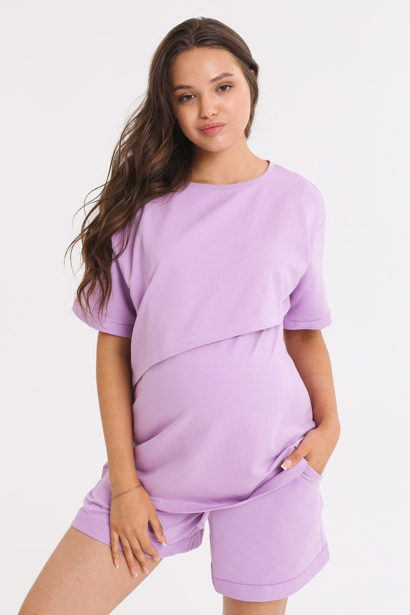 Летний костюм из высококачественного двухниточного футера для беременных и кормящих. Футболка кроя оверсайз имеет специальную конструкцию, позволяющую покормить малыша с повышенным комфортом в любой ситуации. Шорты с эластичным поясом предназначены для ношения в период беременности и после родов. Костюм подойдет для прогулок, занятий спортом и в качестве домашней одежды.