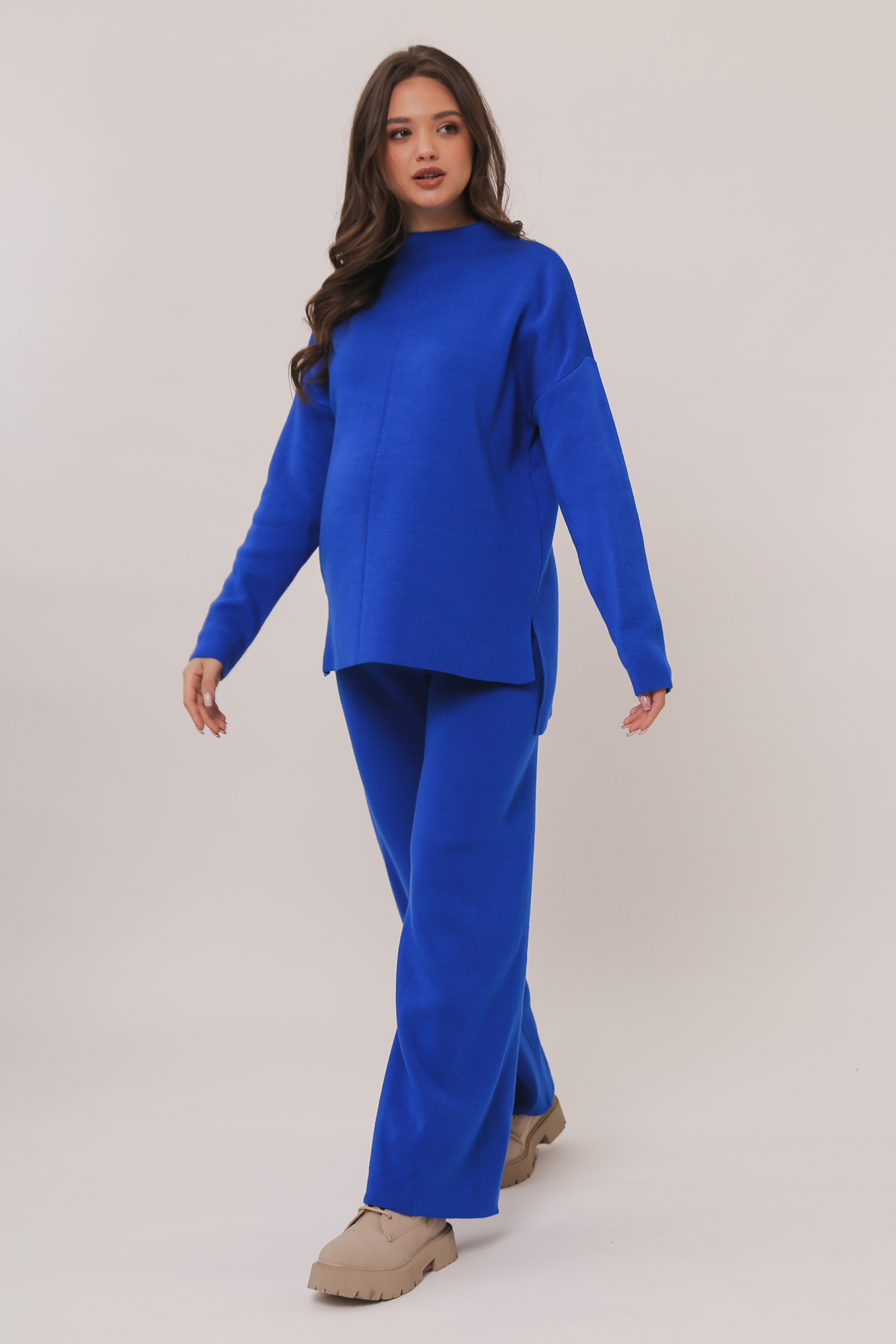Брючный костюм для беременных выполнен из качественного теплого вязаного трикотажа на основе шерсти и акрила. Эффектный женский костюм из трикотажа - удачный выбор для повседневного ношения в холодное время года. В комплект для будущих мам включены кофта и штаны. Джемпер с аккуратным воротом – стойкой, со спущенной линией плеча слегка удлинен сзади, по бокам - небольшие разрезы. Штаны широкие, прямого кроя, с высоким поясом, который выполняет роль бандажа, и эластичной резинкой. Модель оверсайз рассчитана на весь период беременности. Брючный костюм для беременных подойдет для прогулок, офиса или ношения дома. В осенний и весенний периоды он пригодится на выписку. Модель предлагается в нескольких однотонных расцветках и одном размере (one size). Данная модель рассчитана на рост 160-165. Идеальная посадка на протяжении всей беременности и после родов.