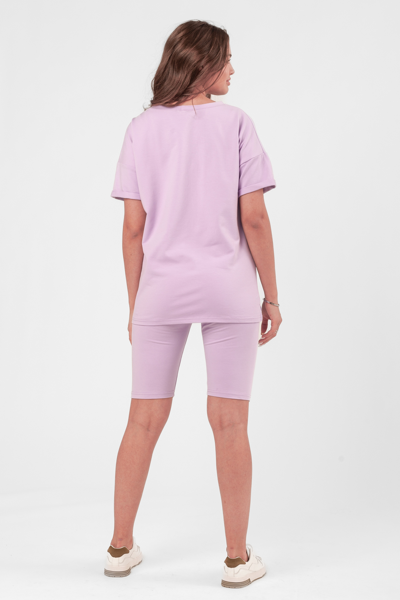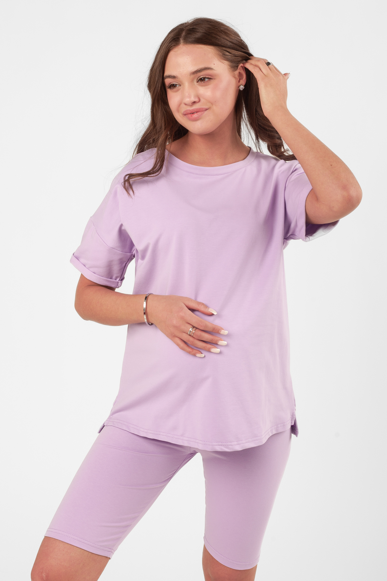 Летний женский костюм для беременных сшит из премиального турецкого футера. Комплект состоит из двух вещей: футболки и велосипедок. Кофта с коротким рукавом и круглым вырезом имеет среднюю длину и оверсайз крой. Велосипедки из плотного материала, не просвечивают и имеют высокую талию. В пояс вшита потайная регулировка объема на пуговице, поэтому костюм подходит для ношения на любом месяце беременности и после родов. Модель дополнит повседневный женский гардероб. Легкий женский костюм для будущих мам подойдет для прогулок, занятий спортом, путешествий и домашней носки.