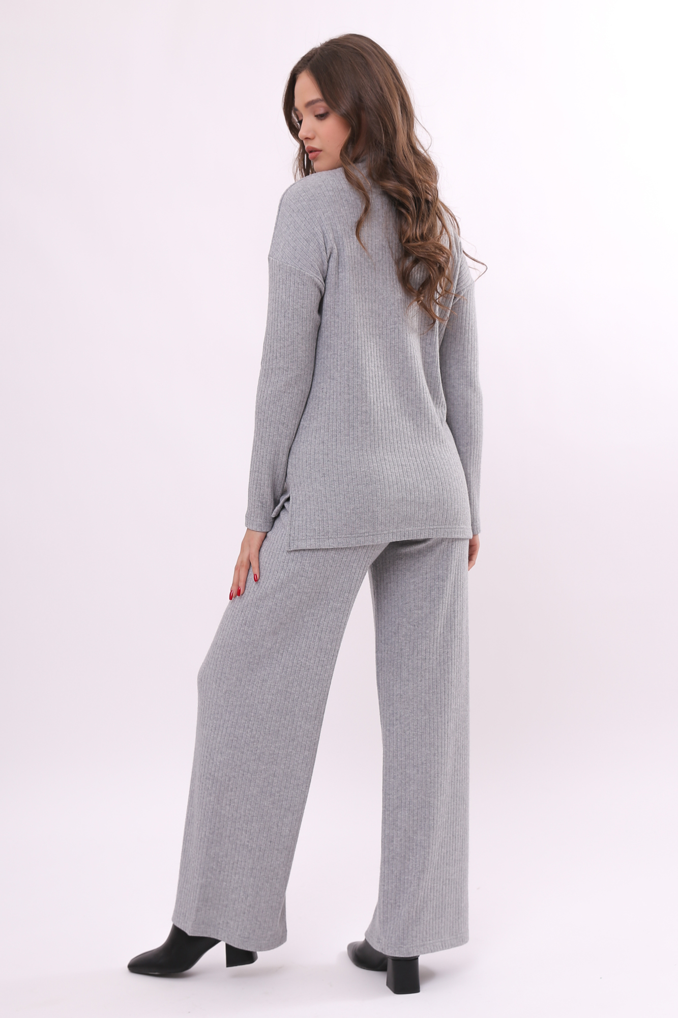 Брючный костюм для беременных сшит из качественного теплого вязанного трикотажного материала. Фактурная ткань лапша в рубчик приятна на ощупь, гипоаллергенна и отлично согревает в непогоду. Женский костюм из трикотажа - удачный выбор для повседневного ношения в холодное время года. В комплект для будущих мам включены кофта и штаны. Джемпер со спущенной линией плеча слегка удлинен сзади, по бокам - небольшие разрезы. Штаны широкие, прямого кроя, с высоким эластичным поясом, который выполняет роль бандажа. Модель рассчитана на весь период беременности: обхват регулируется за счет пуговицы на резинке. Брючный костюм для беременных подойдет для прогулок, офиса или ношения дома. В осенний и весенний периоды он пригодится на выписку. Модель предлагается в нескольких однотонных расцветках и полной размерной линейке.