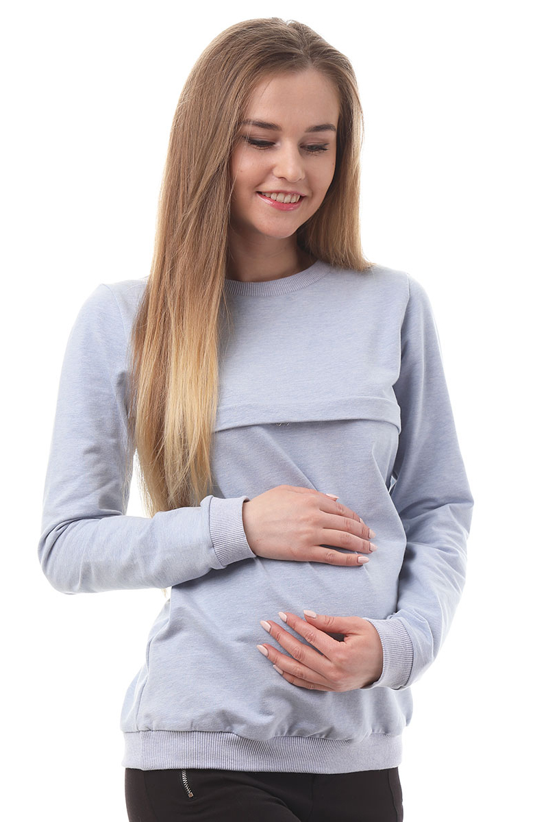 Однотонный свитшот для беременных и кормящих мам. «Секрет» кормления – встречные горизонтальные потайные молнии – позволит покормить малыша с повышенным комфортом в любой ситуации. Округлый вырез горловины, длинный рукав, манжет по низу изделия и на рукавах. Особый крой позволяет носить изделие на всем протяжении беременности и после нее.